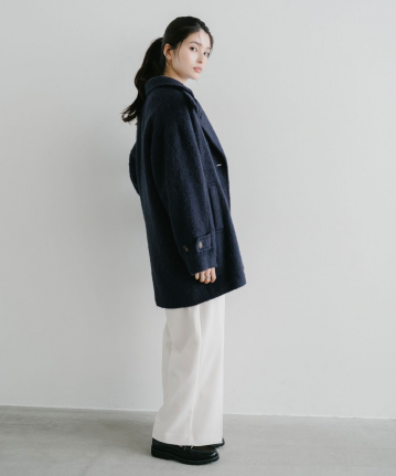 【素材感】:程よい厚みです。ややツヤがあり、キレイめに着用できる素材感です。