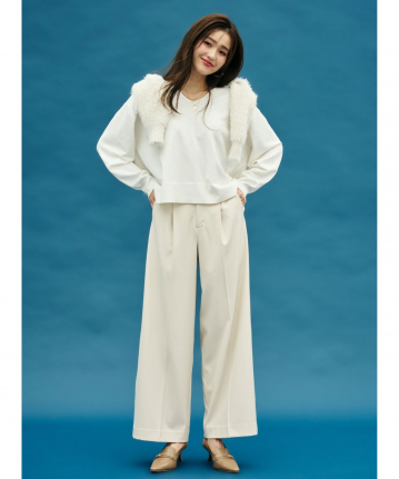 【おすすめスタイリング】: コンパクトな丈感のニットと合わせると脚長効果ですっきり見えします! -
