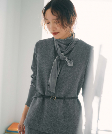 ・深めのシャープなVネックですっきりとした衿元を演出します。