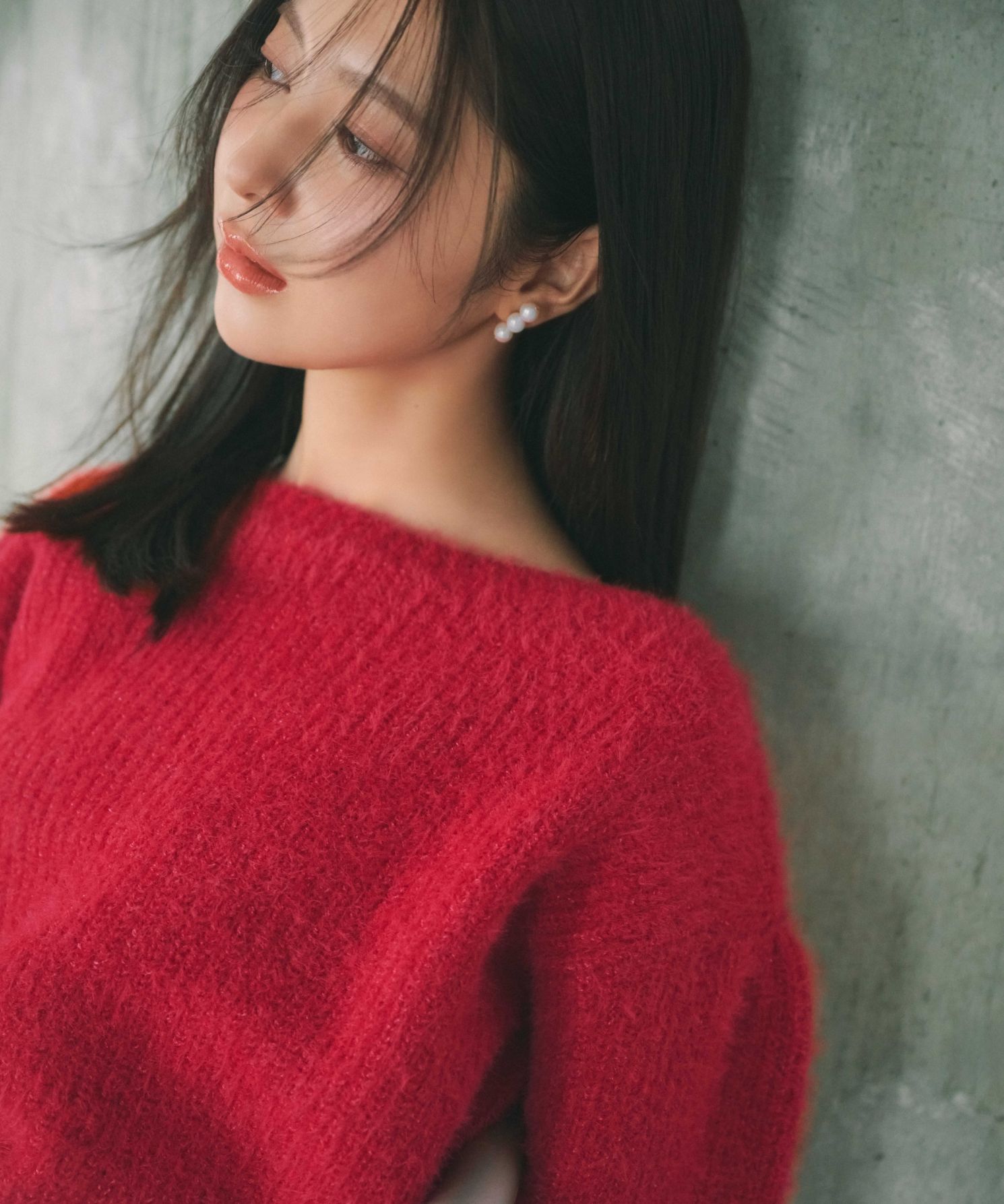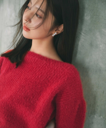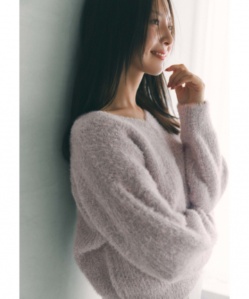 【おすすめスタイリング】:首元がややあくのでシャツやタートルネックをレイヤードさせるのもオススメです