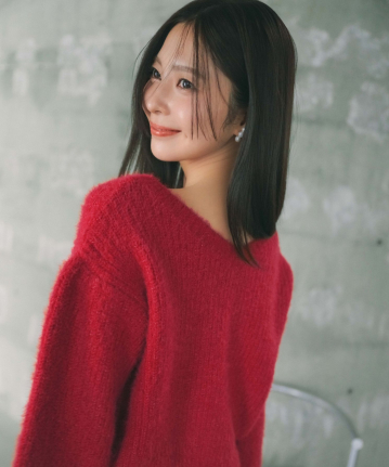 【着用感】:チクチクせず、着心地が良いです。Vネック側を前で着たときは鎖骨より5センチほど下の開きでインナーが見えるほどではないので深い開きのトップスが苦手な方でもお召しいただきやすいと思います。