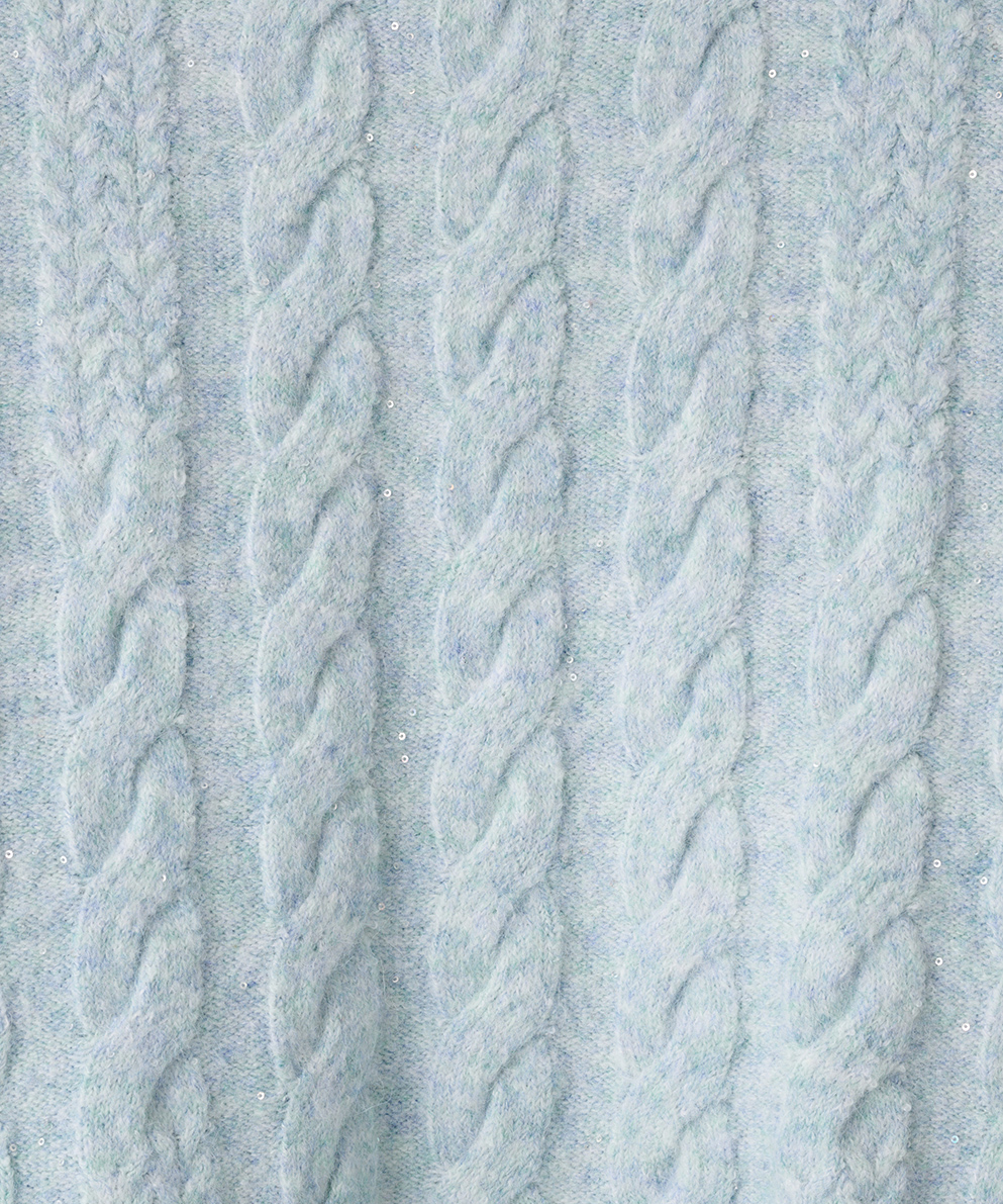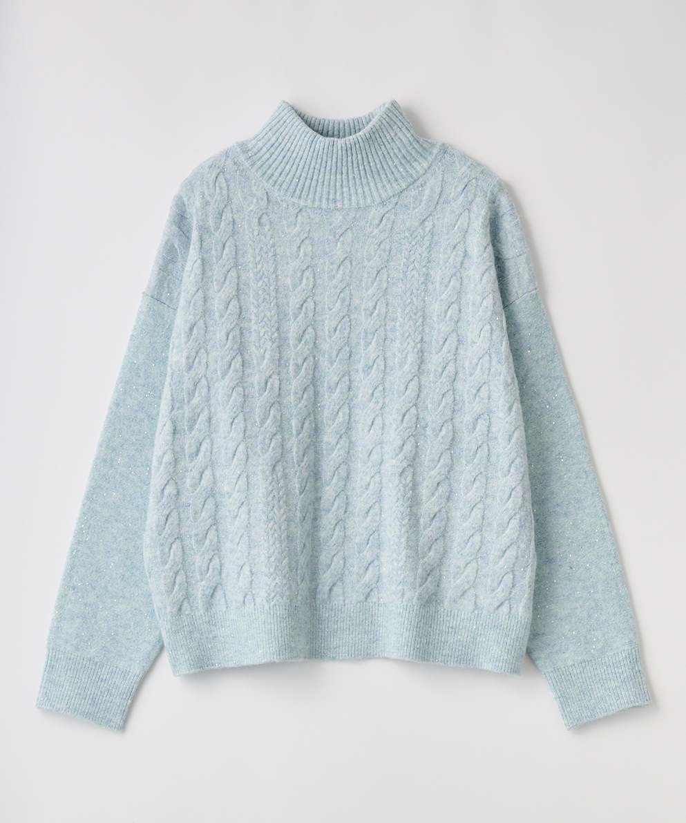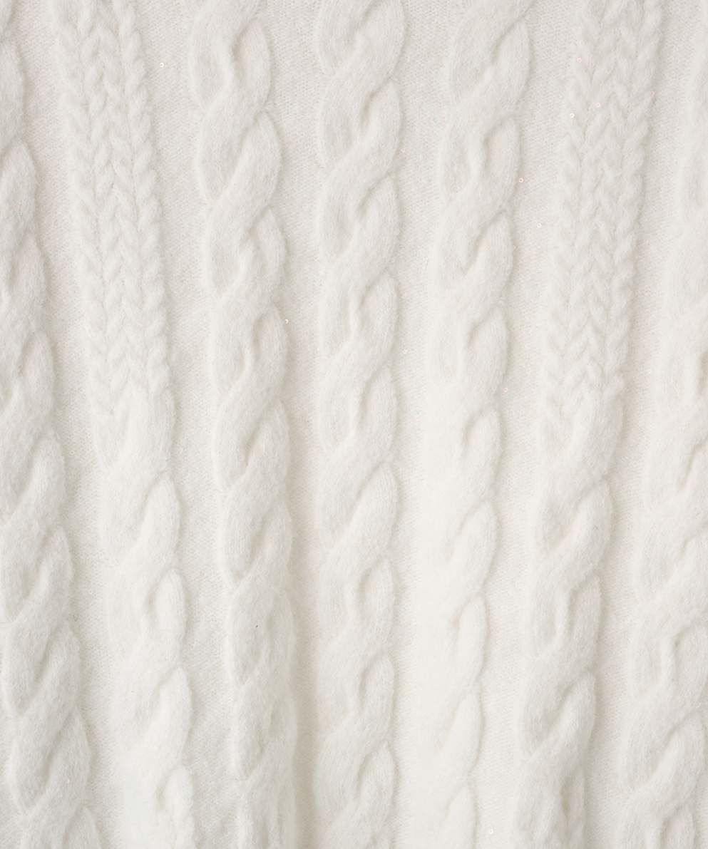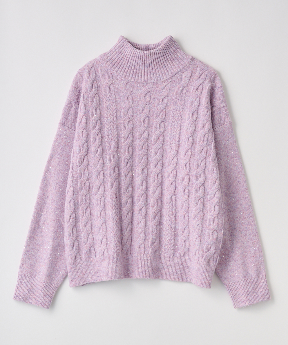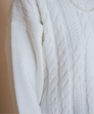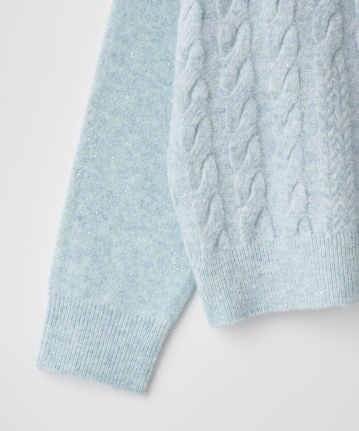 ・ふんわり柔らかなケーブル編みに、さりげなく輝くスパンコールを散りばめ、大人の女性にぴったりの華やぎをプラスしました。