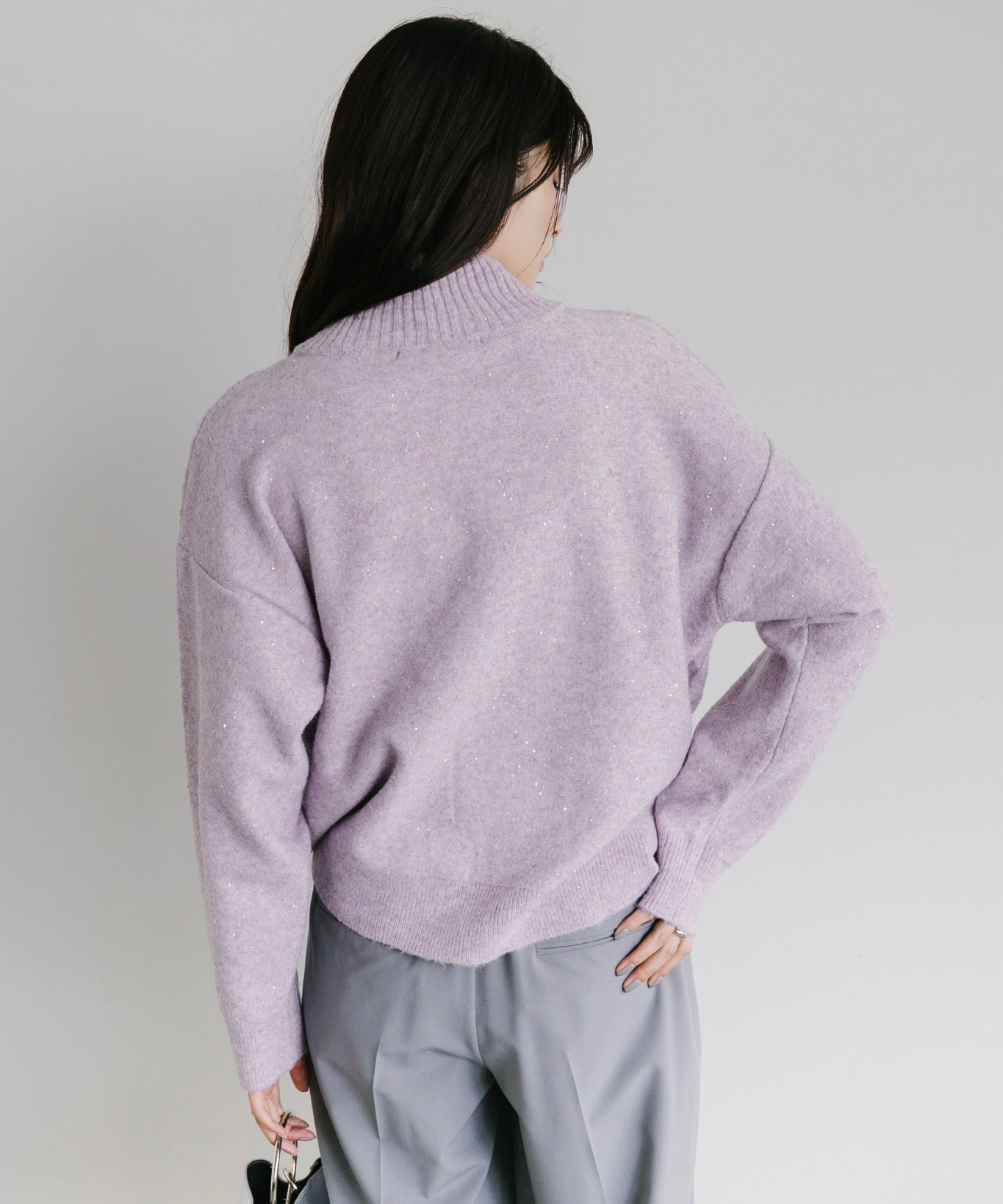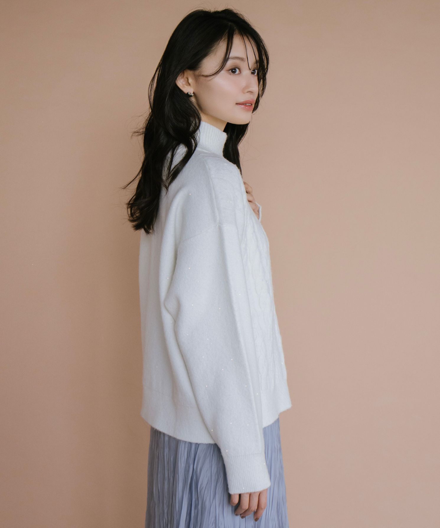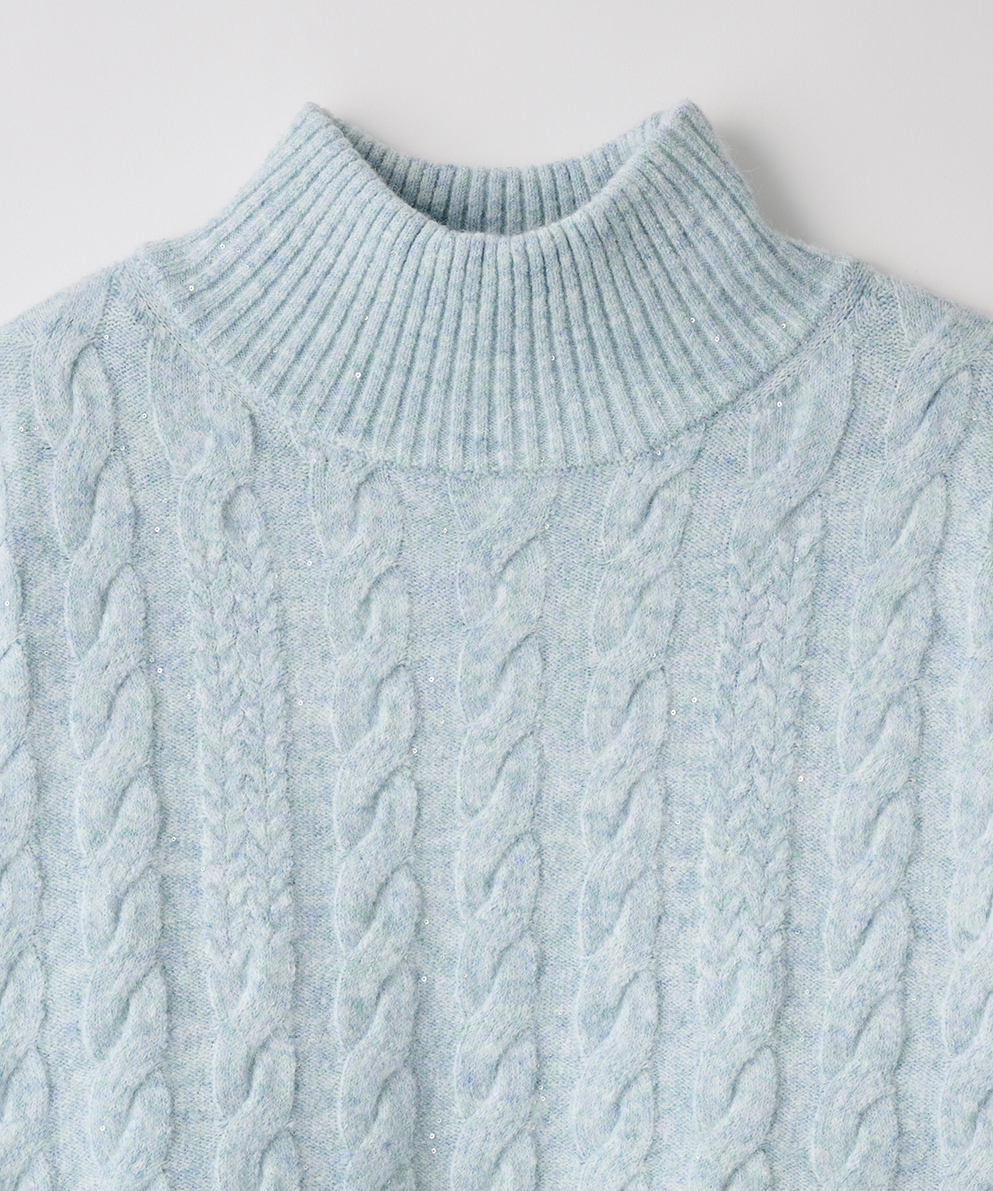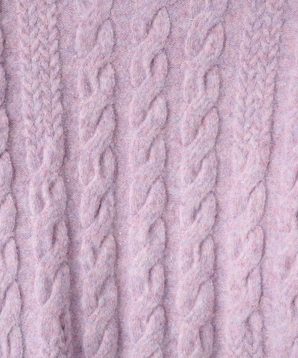 ・ふんわり柔らかなケーブル編みに、さりげなく輝くスパンコールを散りばめ、大人の女性にぴったりの華やぎをプラスしました。