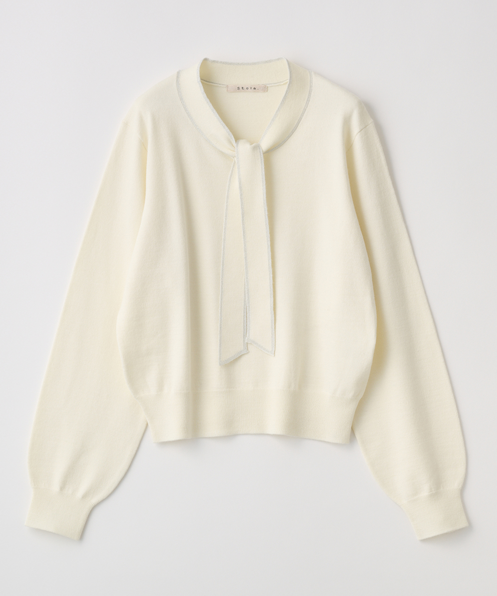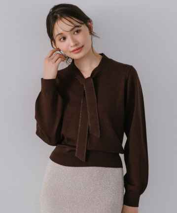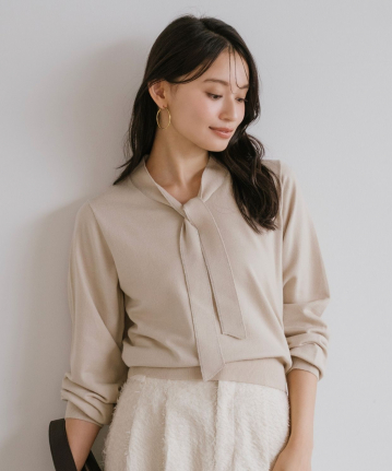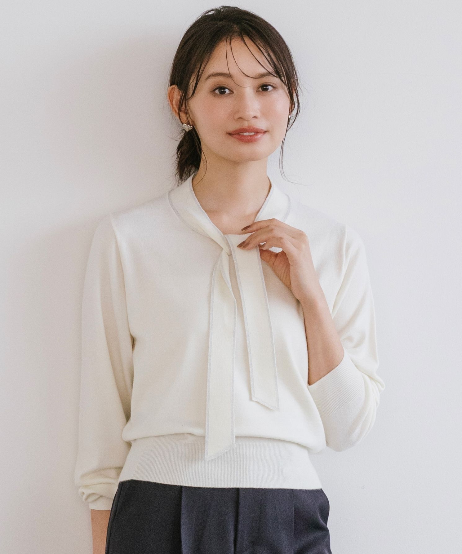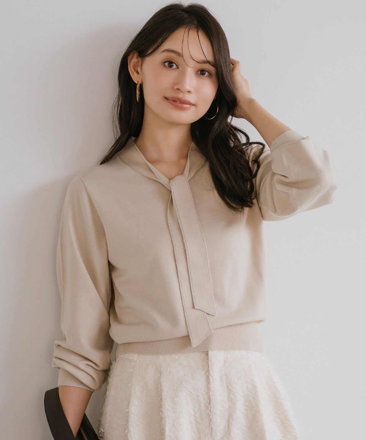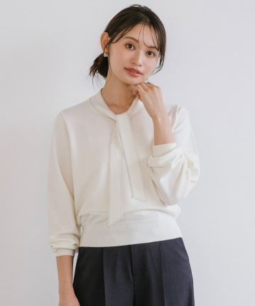 ・柔らかなニット素材にクラシカルなボウタイをあしらったデザインのニットプルオーバーです。
