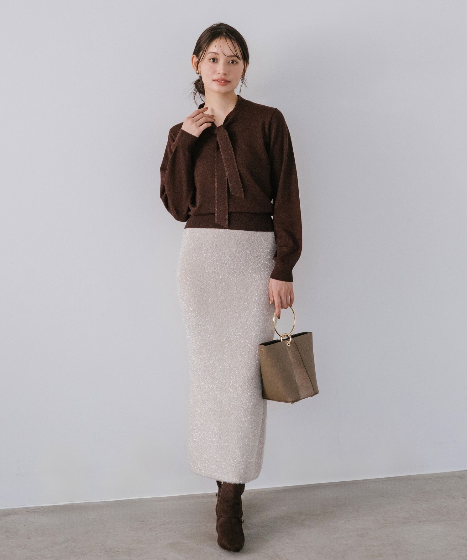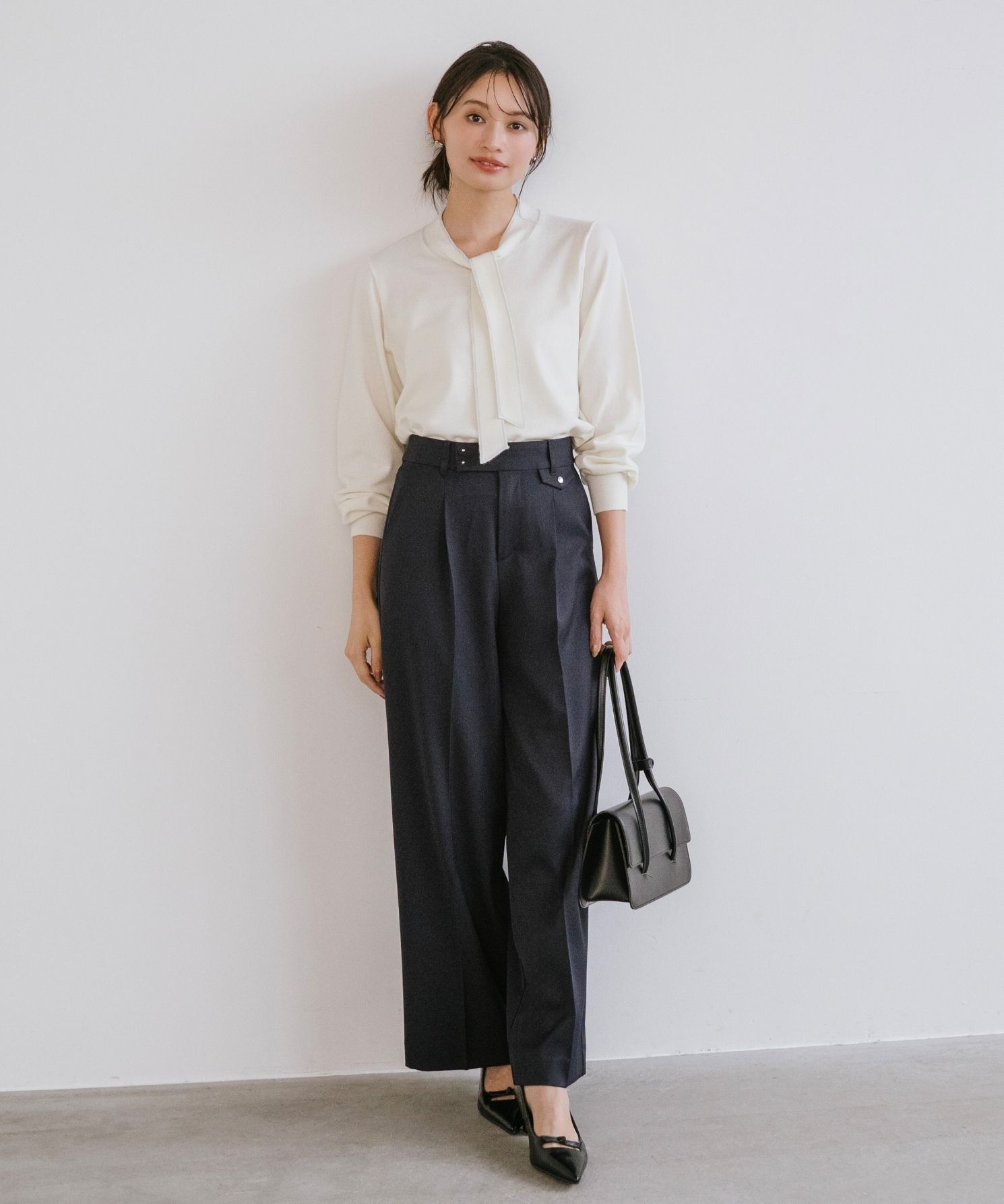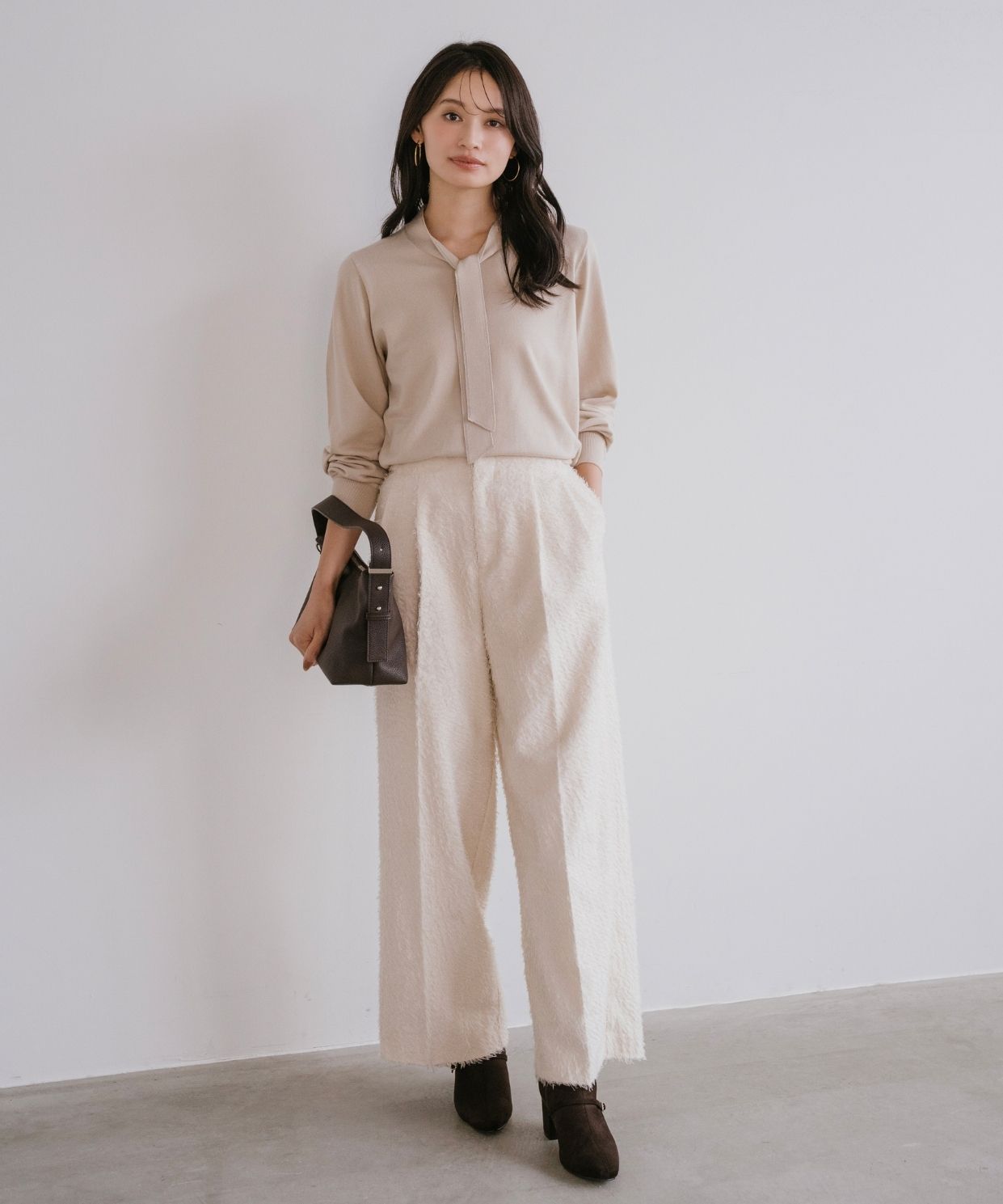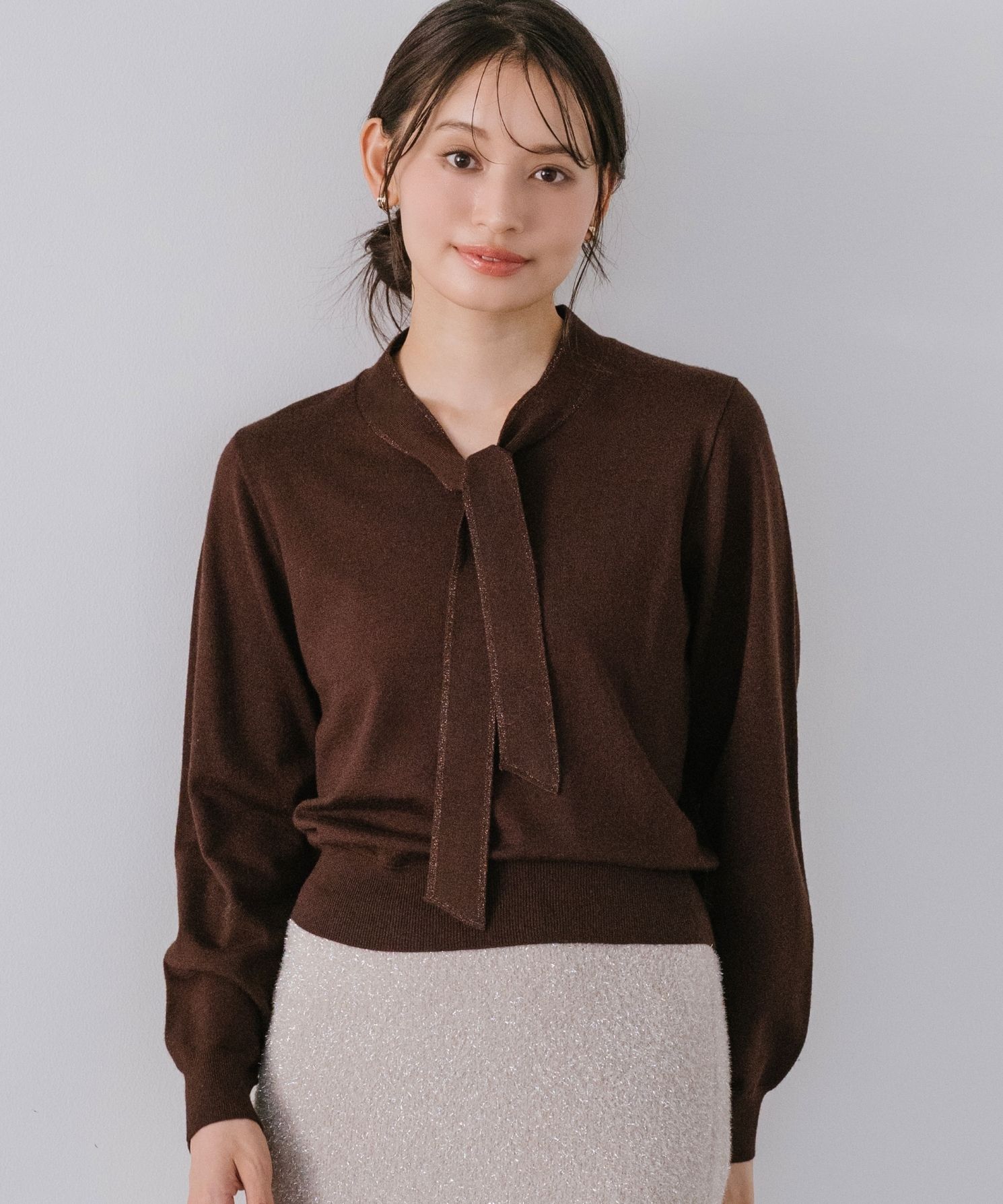 ・柔らかなニット素材にクラシカルなボウタイをあしらったデザインのニットプルオーバーです。