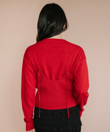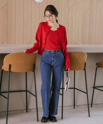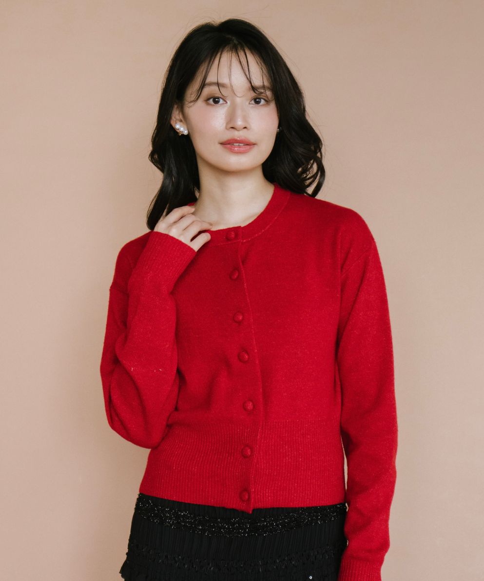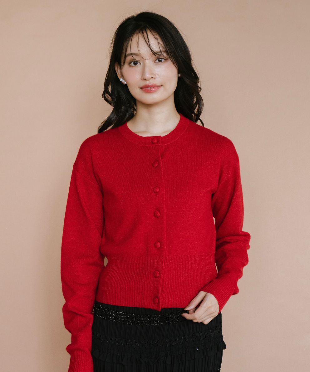 【着用感】:カーディガン、キャミソール共にコンパクトなシルエットです。キャミソールはやや短め丈ですが、調節可能なデザインのためインナーとしてもビスチェとしても着用しやすいです。