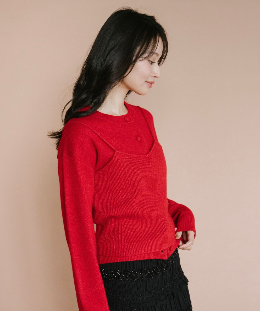 【着用感】:アンサンブルで着ても、ビスチェ風で着てもすっきり見える。