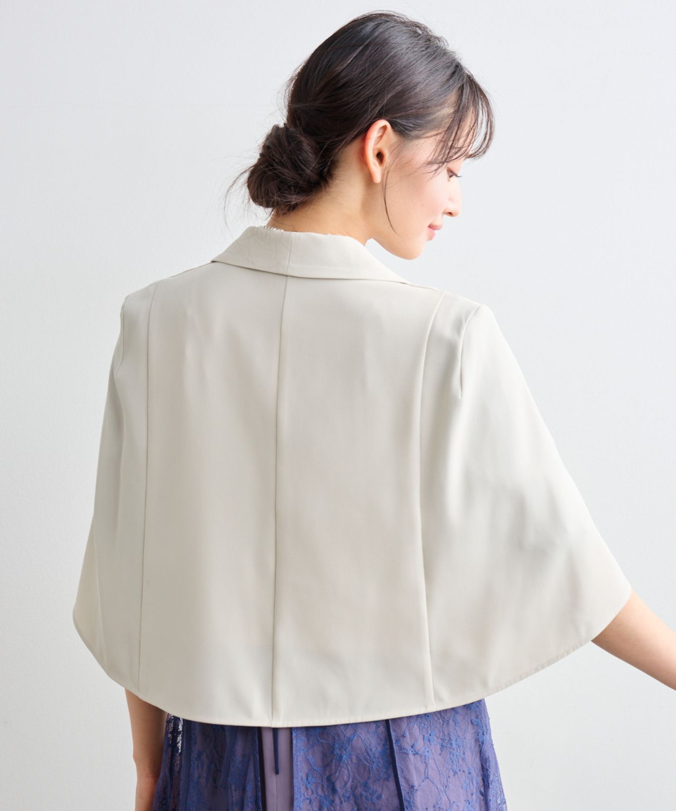 ・袖はスリットのデザインになっていて、前から後ろにかけて長くなるように作っており、ケープのような着こなしになるよう作りました。