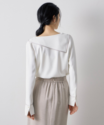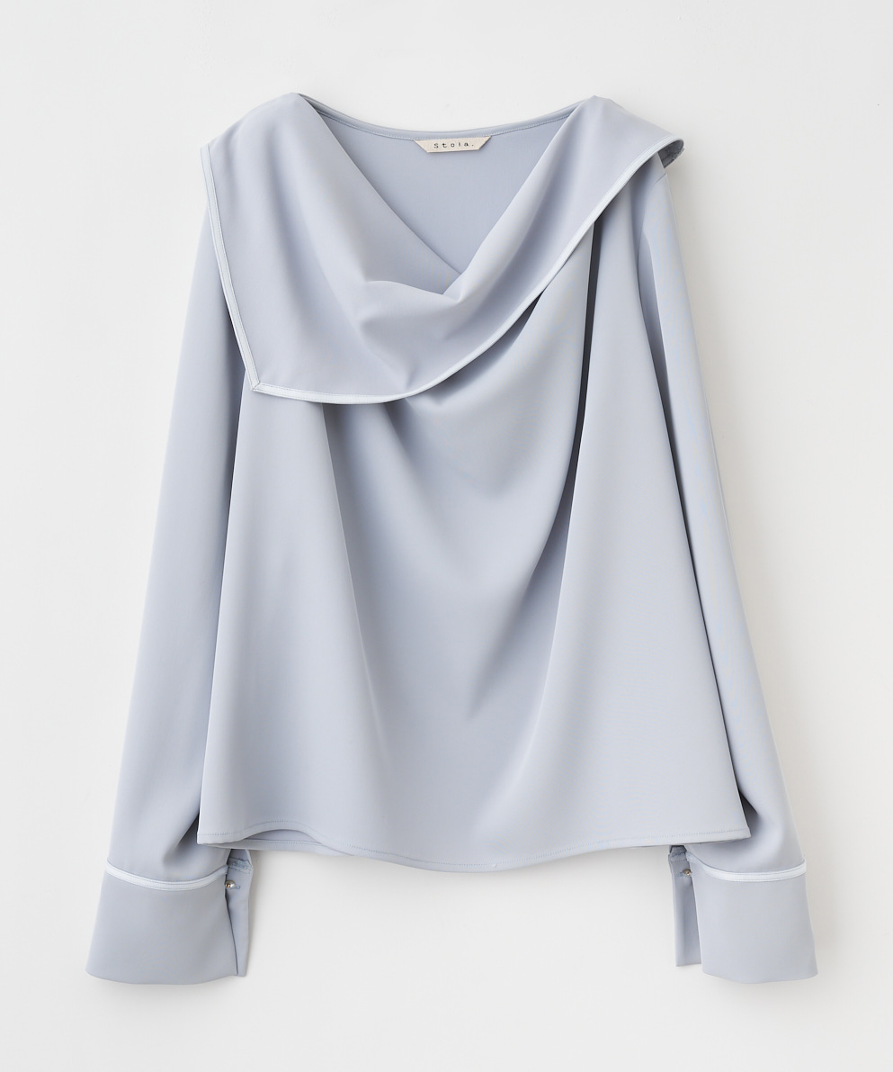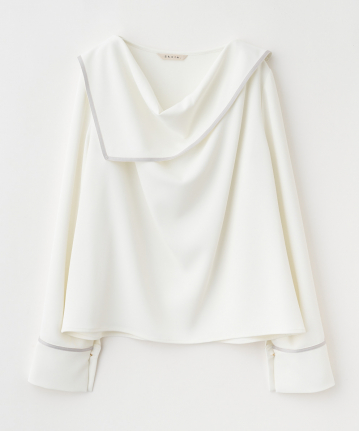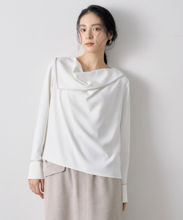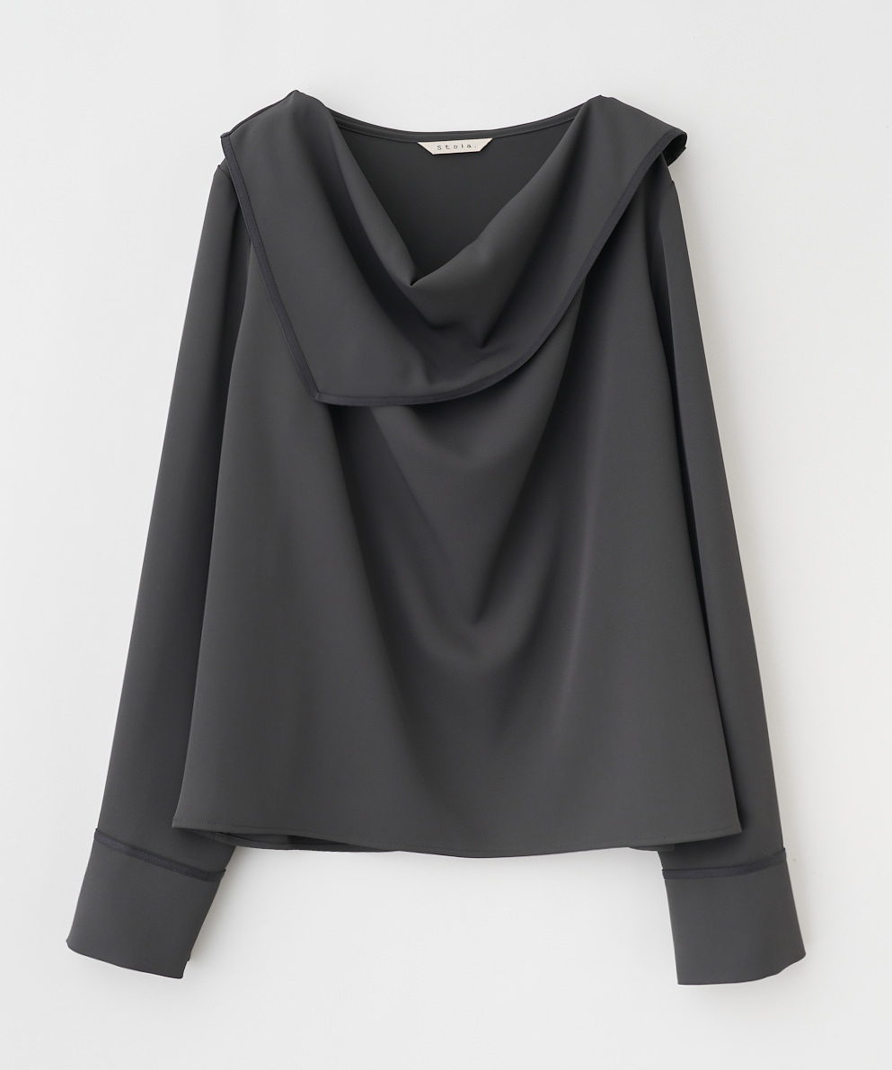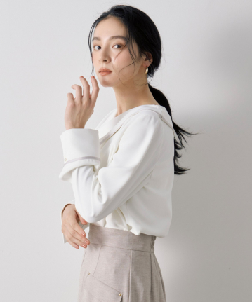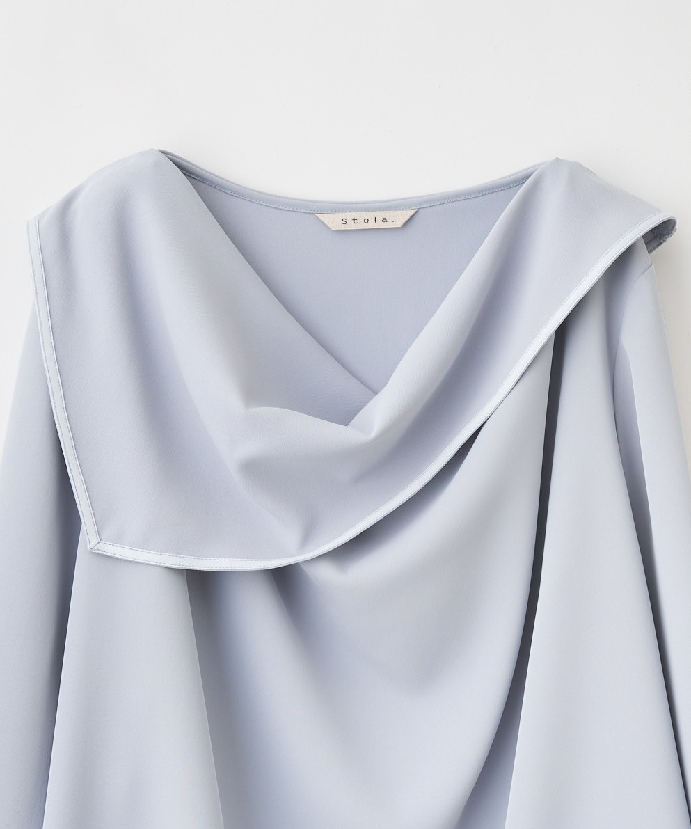 ・パウダータッチでドレープ性に富んだ上品な合繊素材で、顔周りを華やかに見せてくれます。