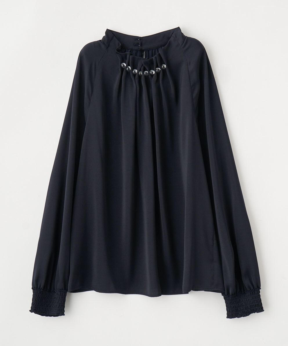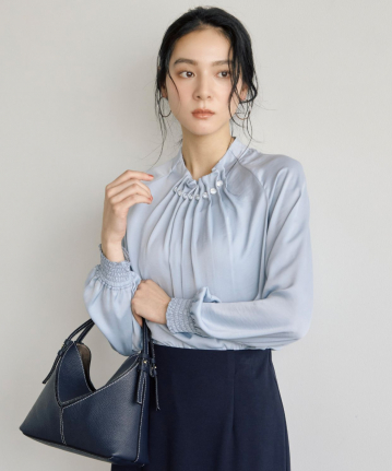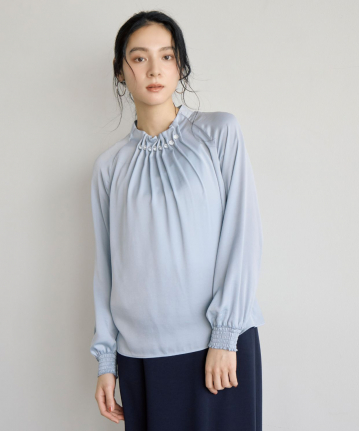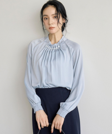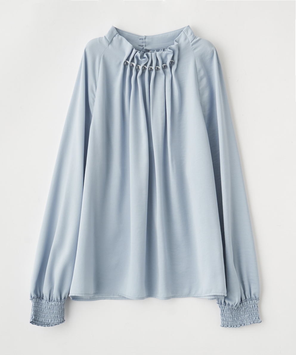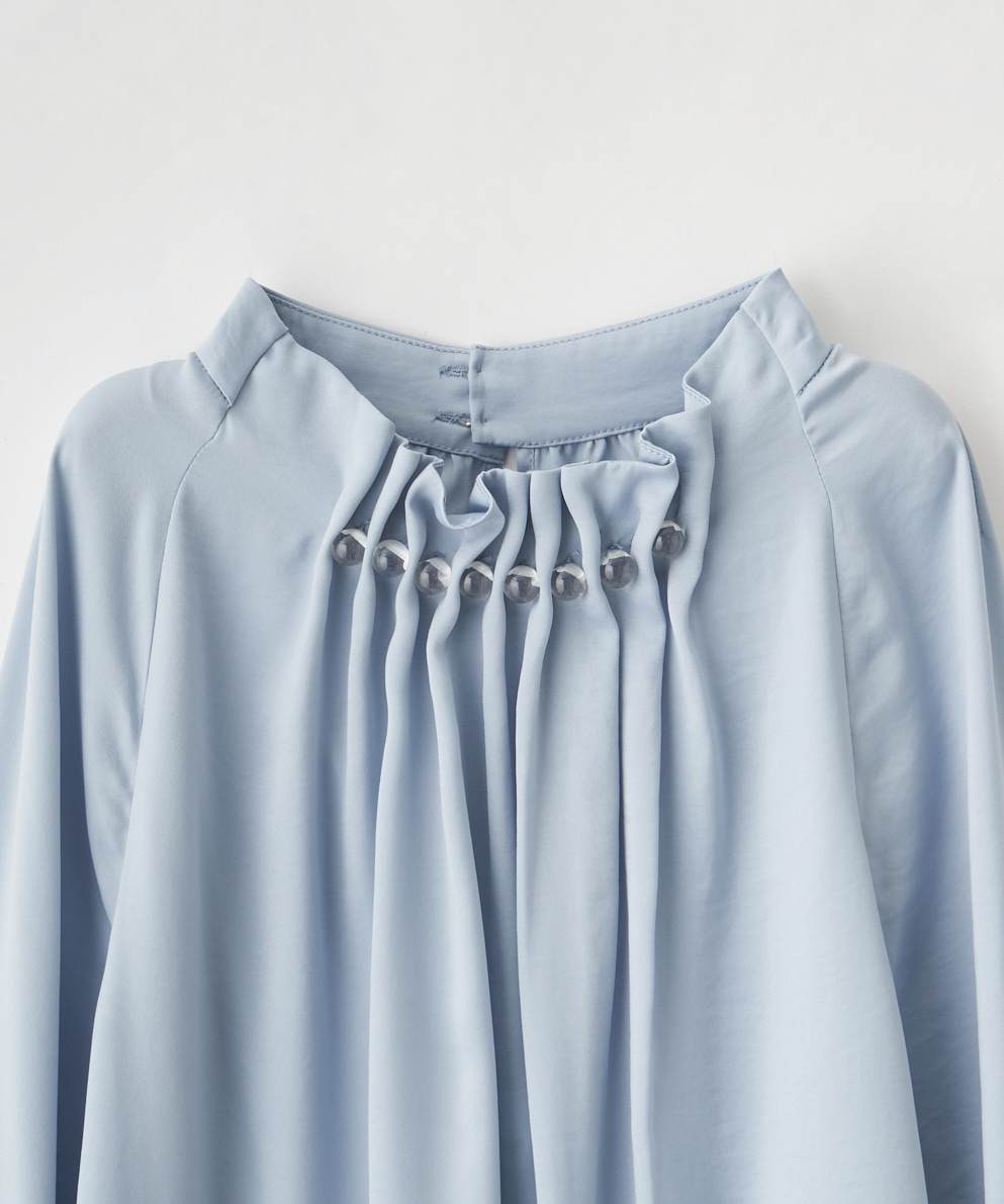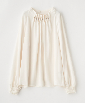 クリア釦付きタック衿ブラウス