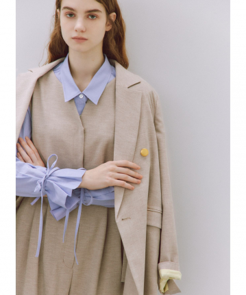 【おすすめスタイリング】:ボタンを1〜2個開けてインナーを見せると、抜け感のあるすっきりとした着こなしに仕上がります。