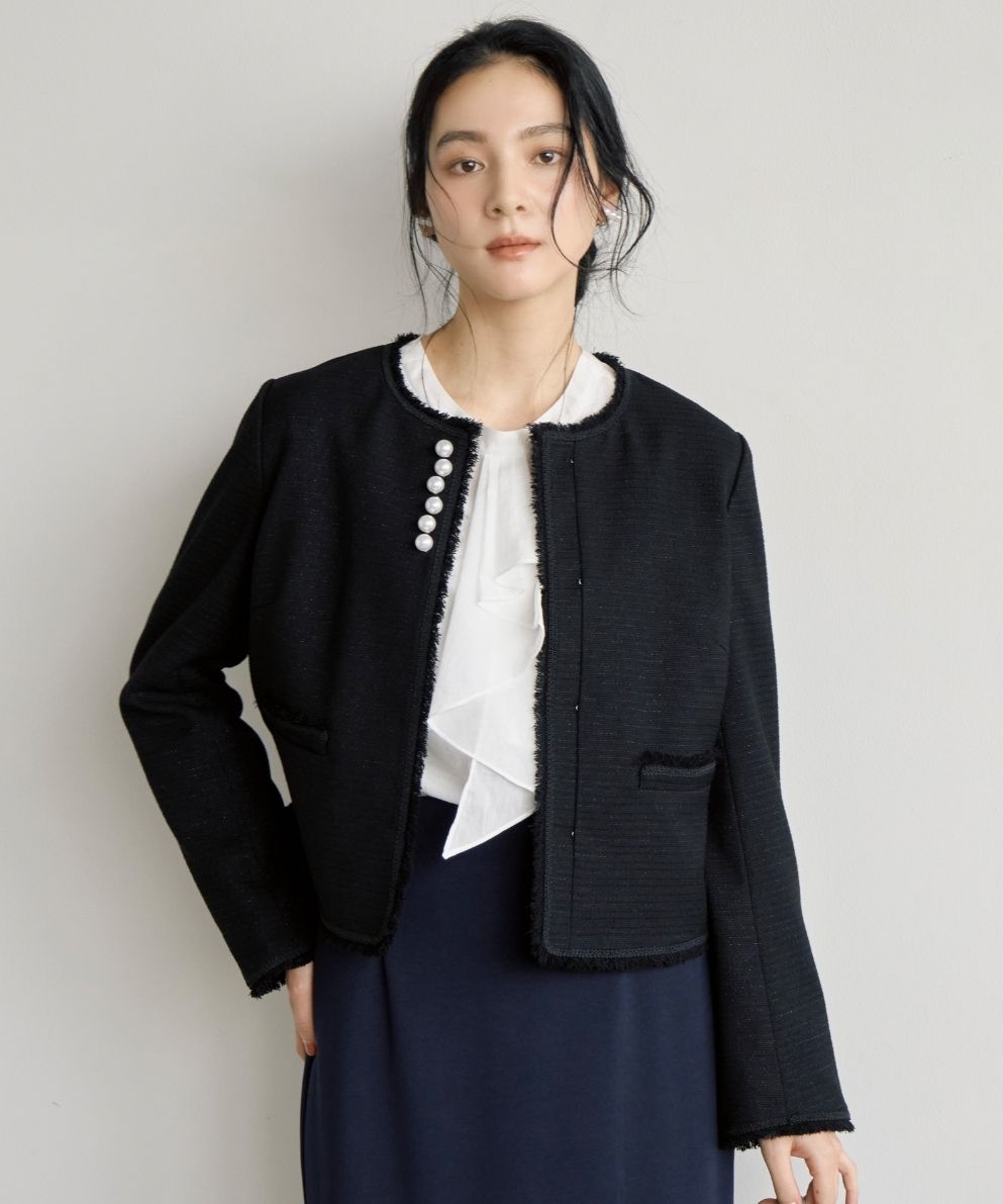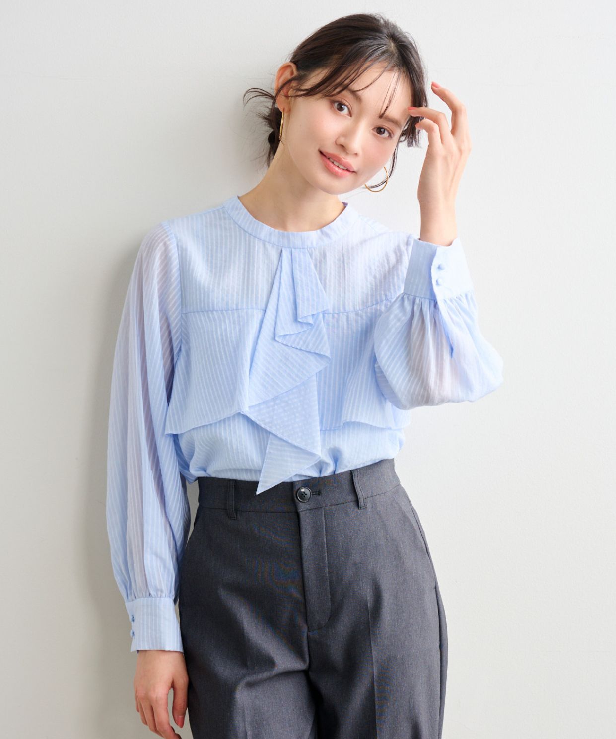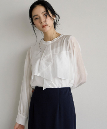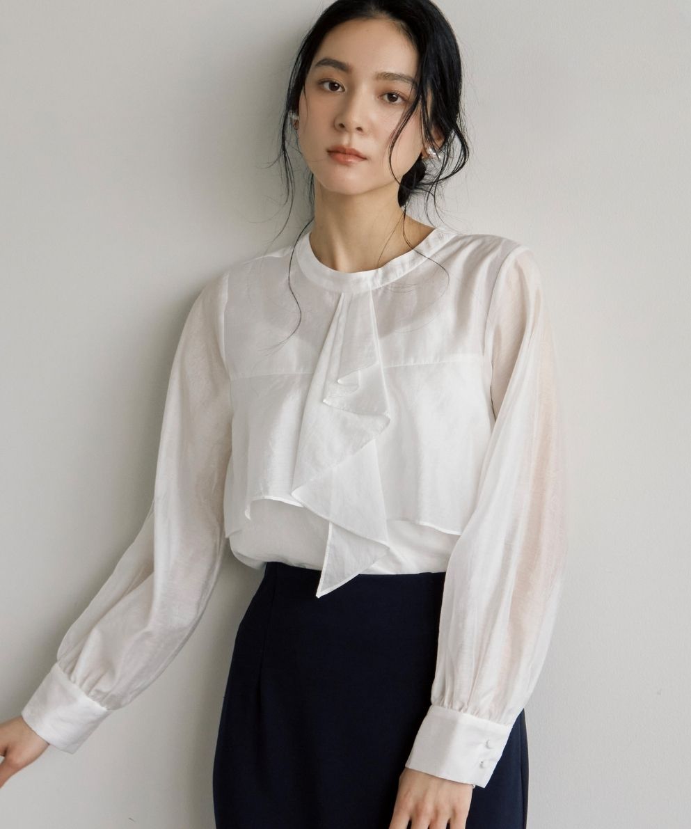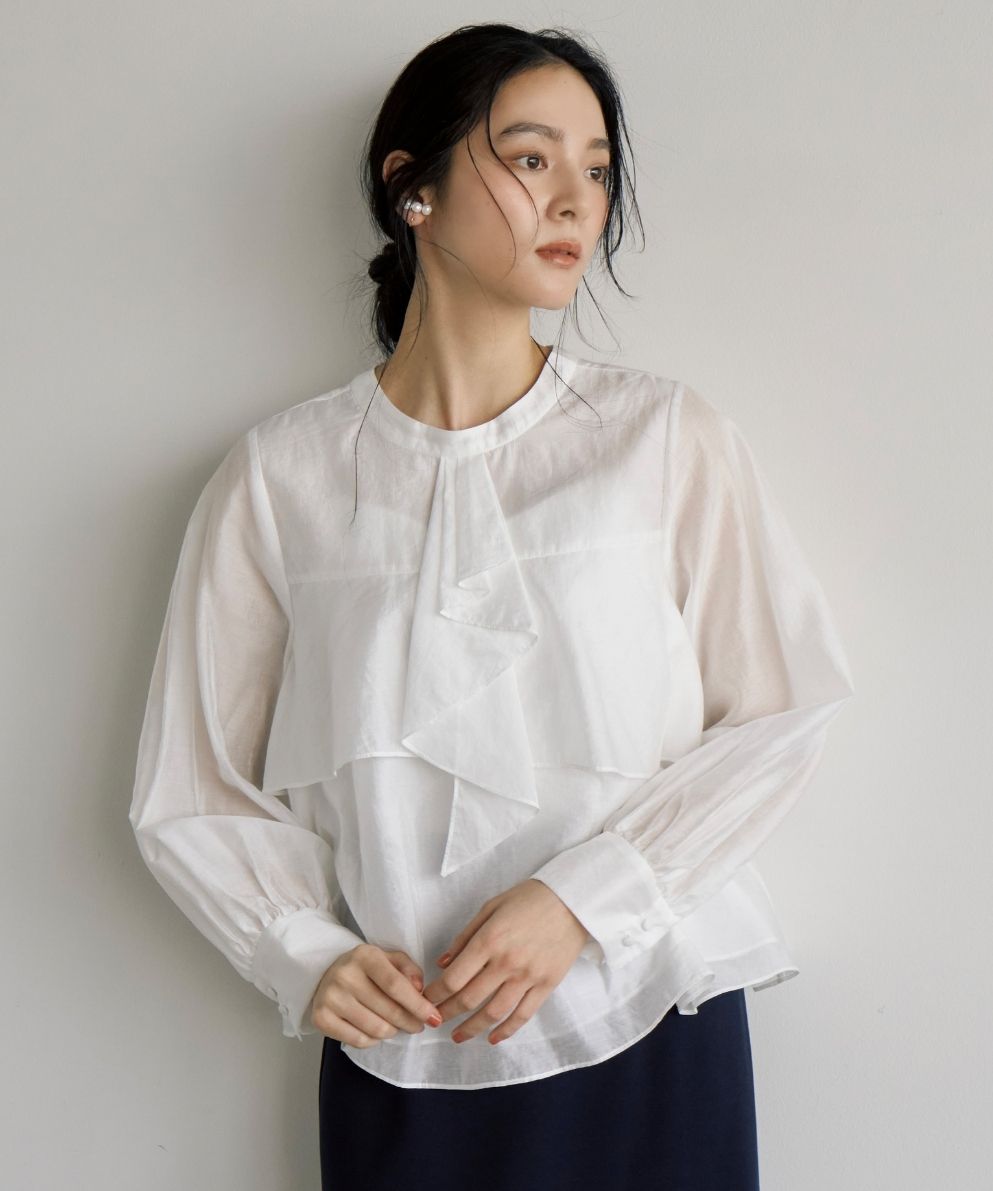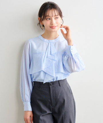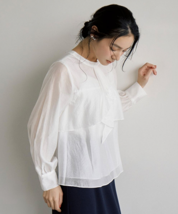 ・ジャケットのインナーとしても、胸元のフリルがアクセントとなり、重宝する1着です。