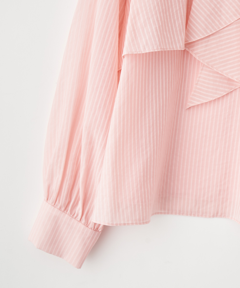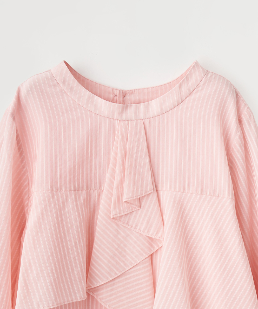 ・胸元は生地を何層にも重ねたようなボリュームのあるフリルデザインになっており、シンプルなボトムスに合わせるだけで華やぎのあるコーディネートが完成します。