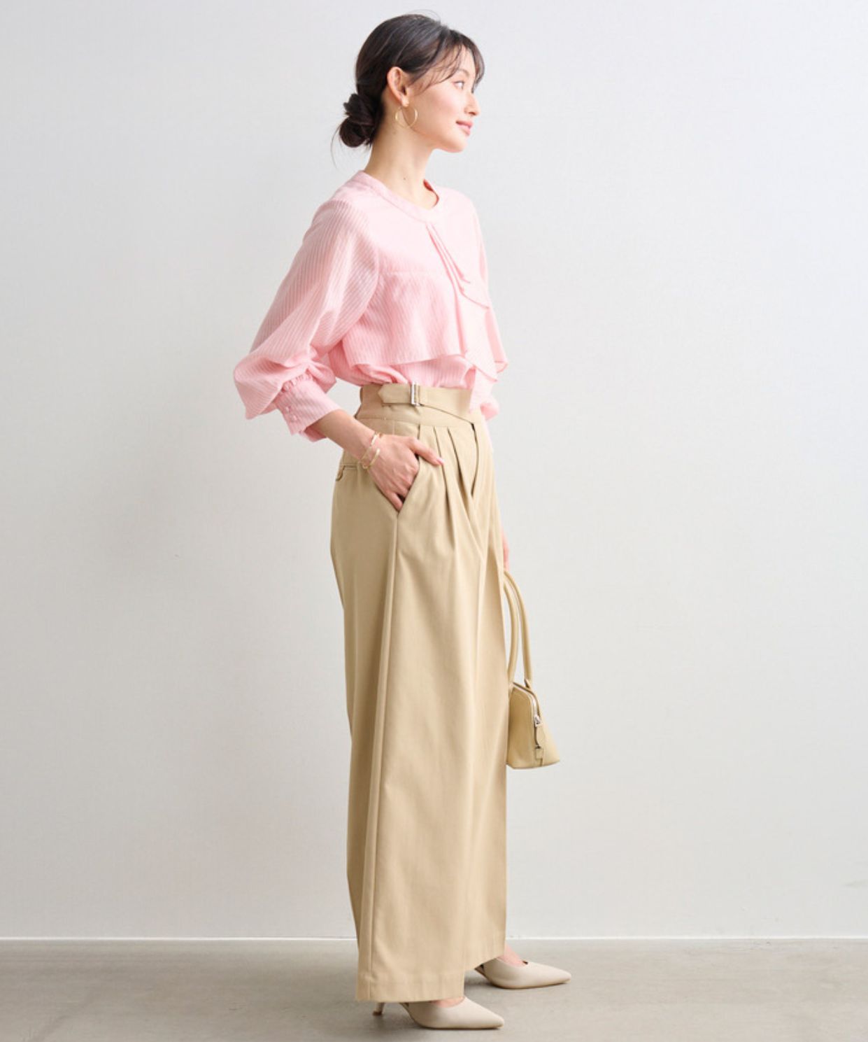 【おすすめのスタイリング】:ベーシックなパンツと合わせたきれいめコーデ。 -