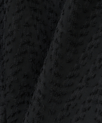 ・ミント、モカベージュはさらっとしたタッチで上品な透け感の合繊素材です。ブラック系は幾何柄のカットジャカード素材です。