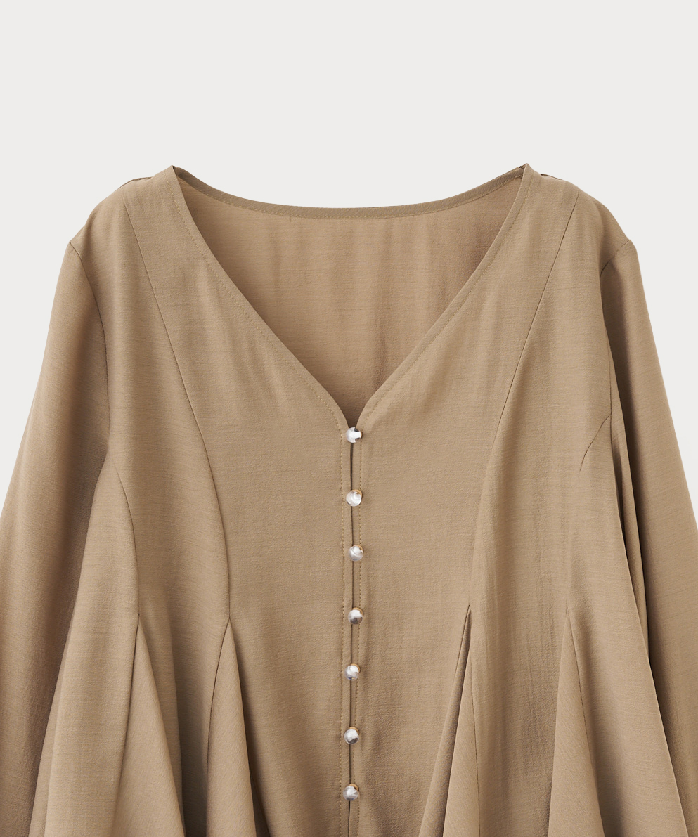 ・ウエストから入ったマチデザインが目を惹く、女性らしいVネックブラウスです。