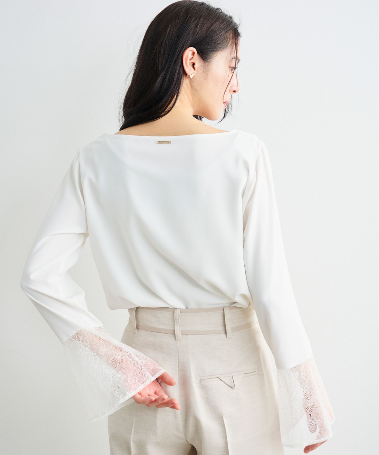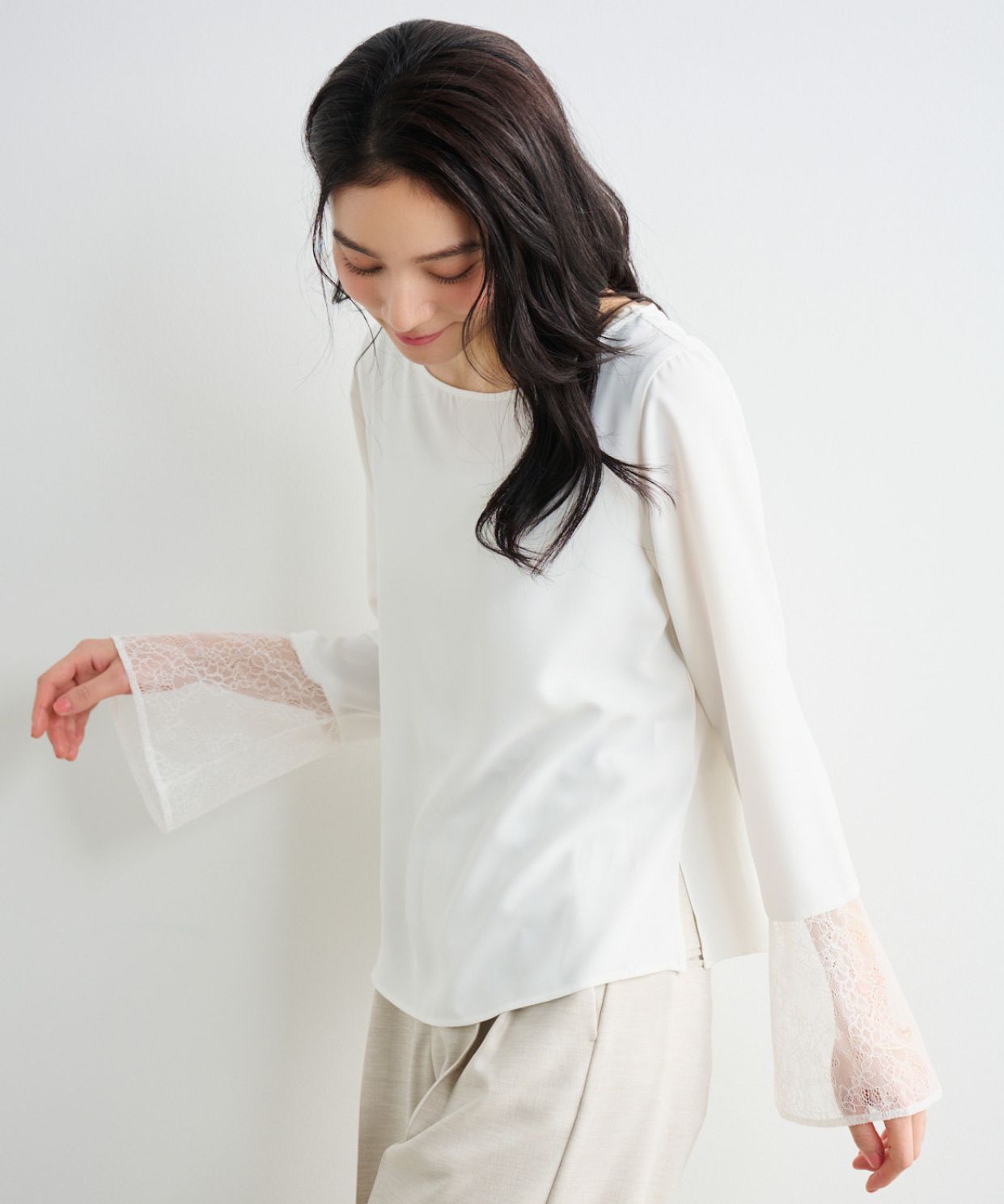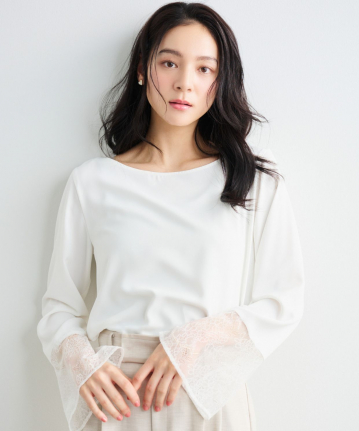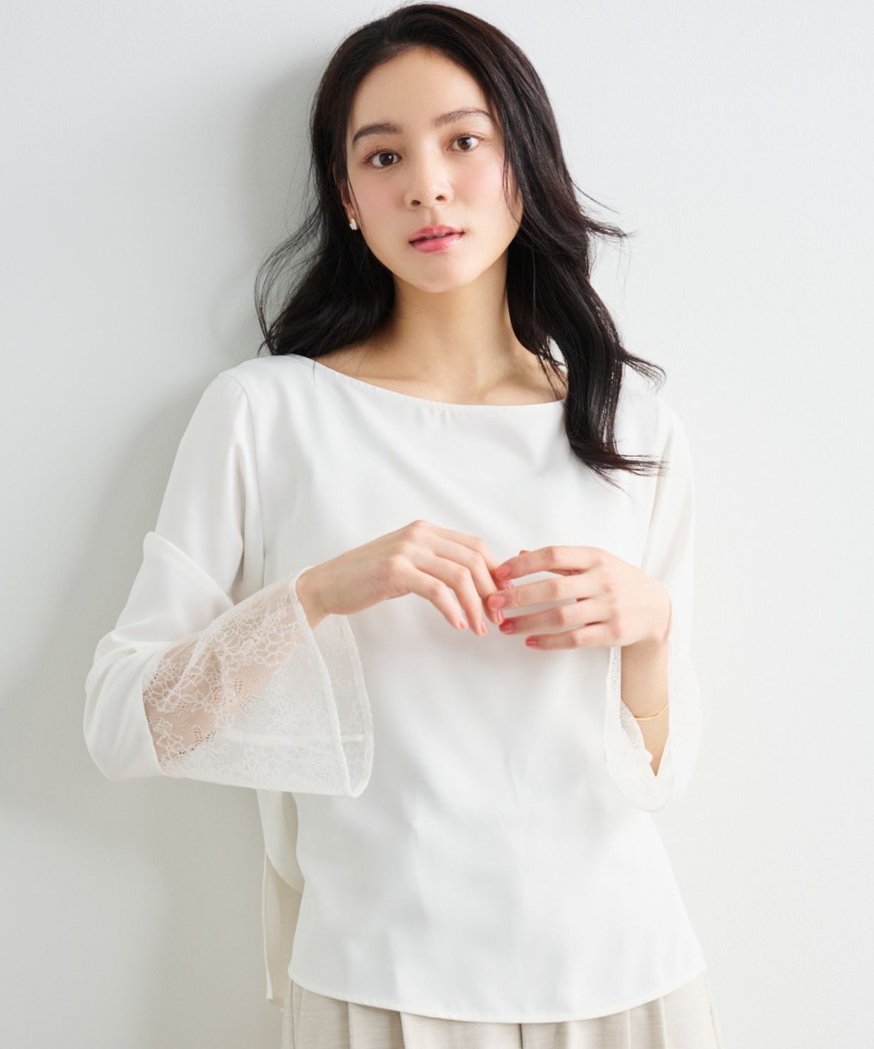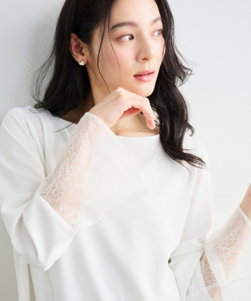 【サイズ感】:普段38号着用で程よくゆとりを持って着られる。袖の長さは、レース部分が手の甲に少しかかるくらい。