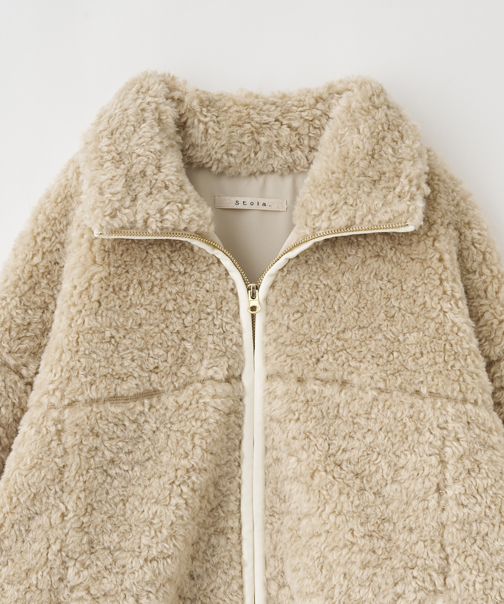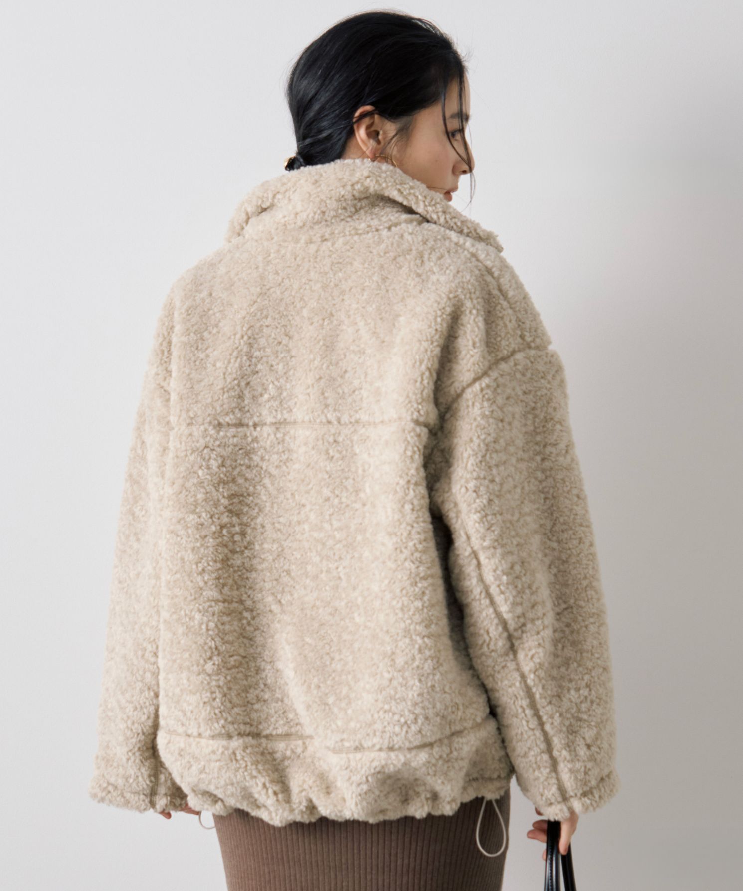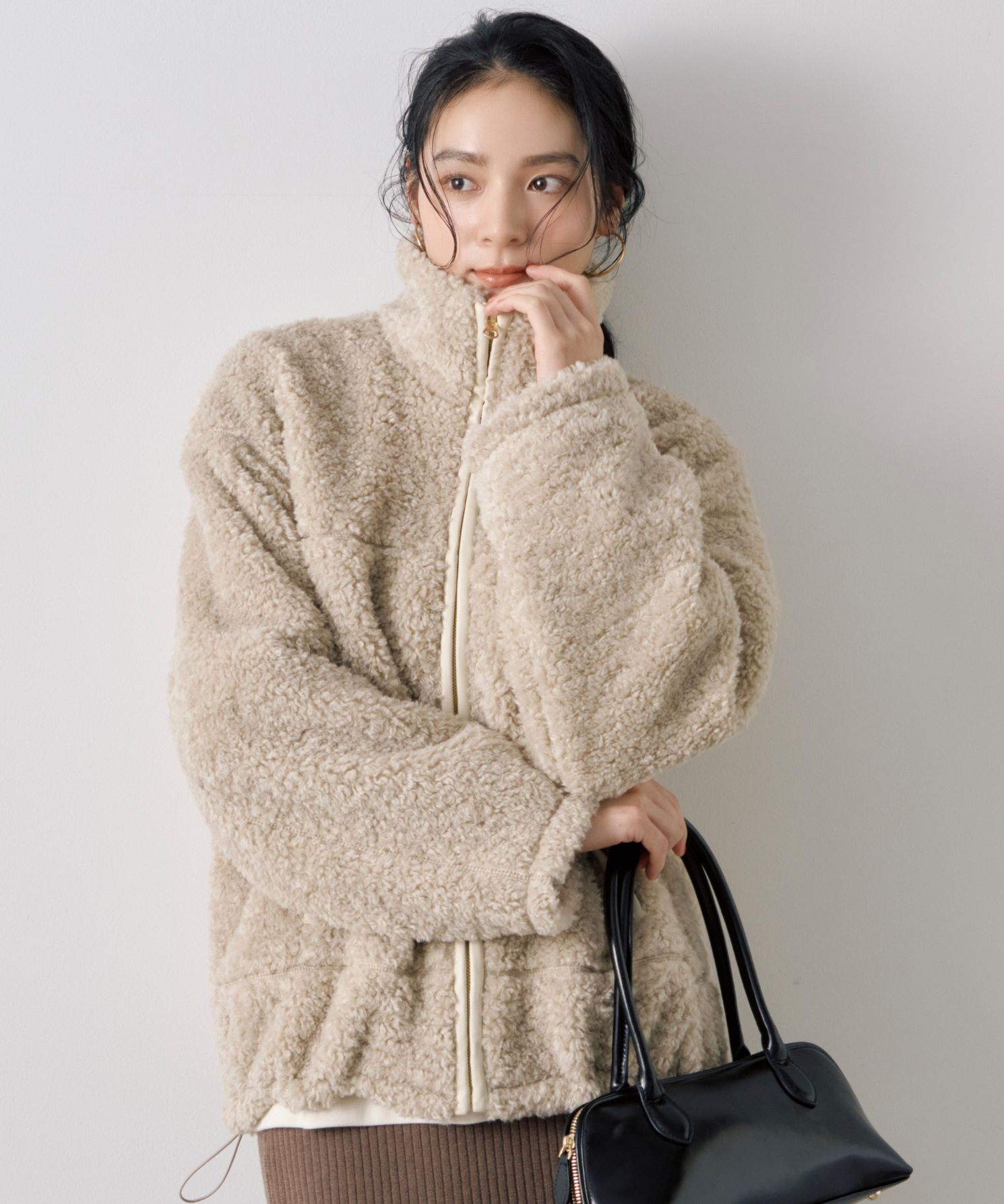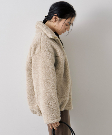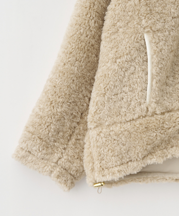 ・もこもことしたボリューム感が特長のボア素材です。程良く厚みのある生地感と、柔らかい肌触りがポイントです。