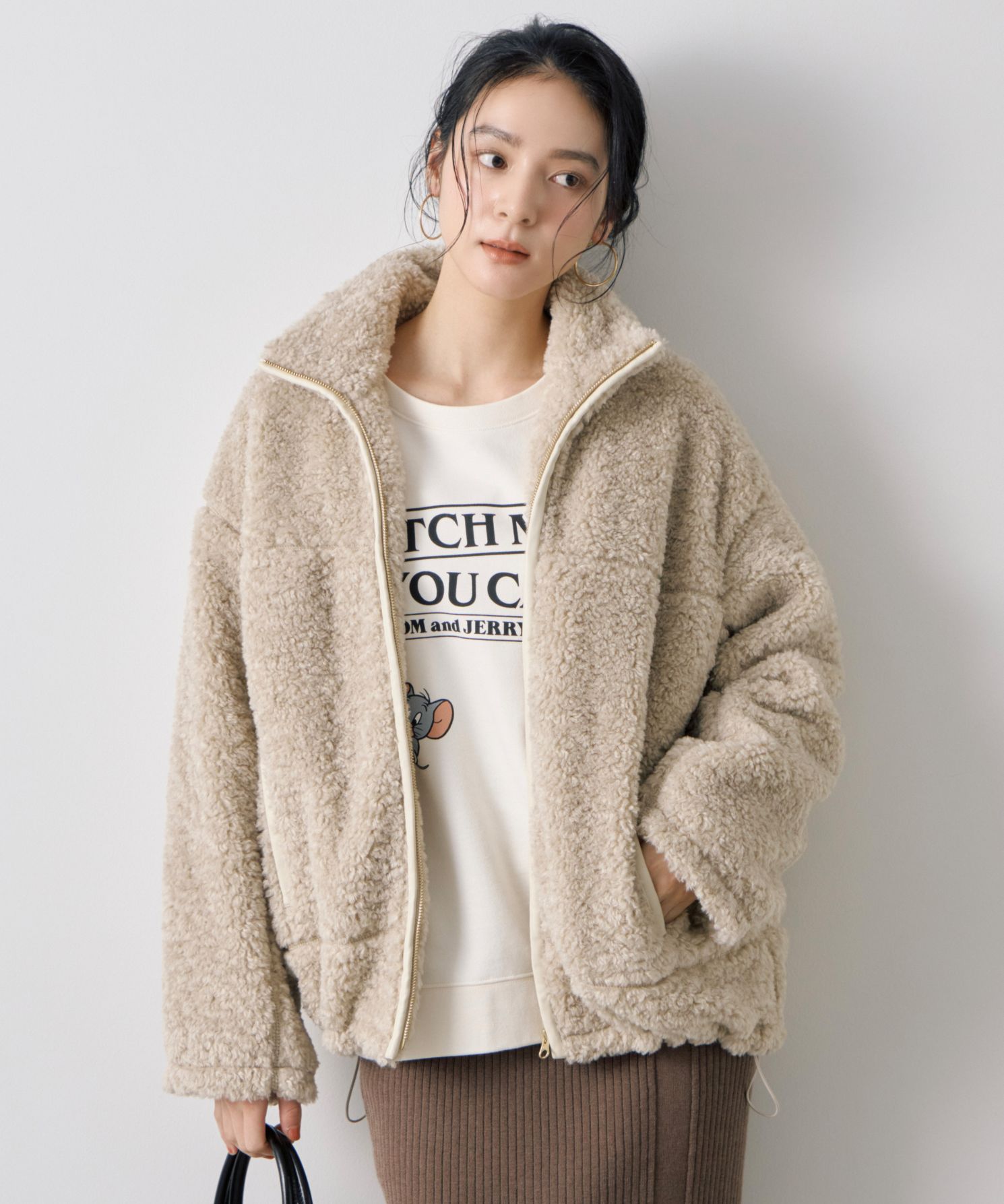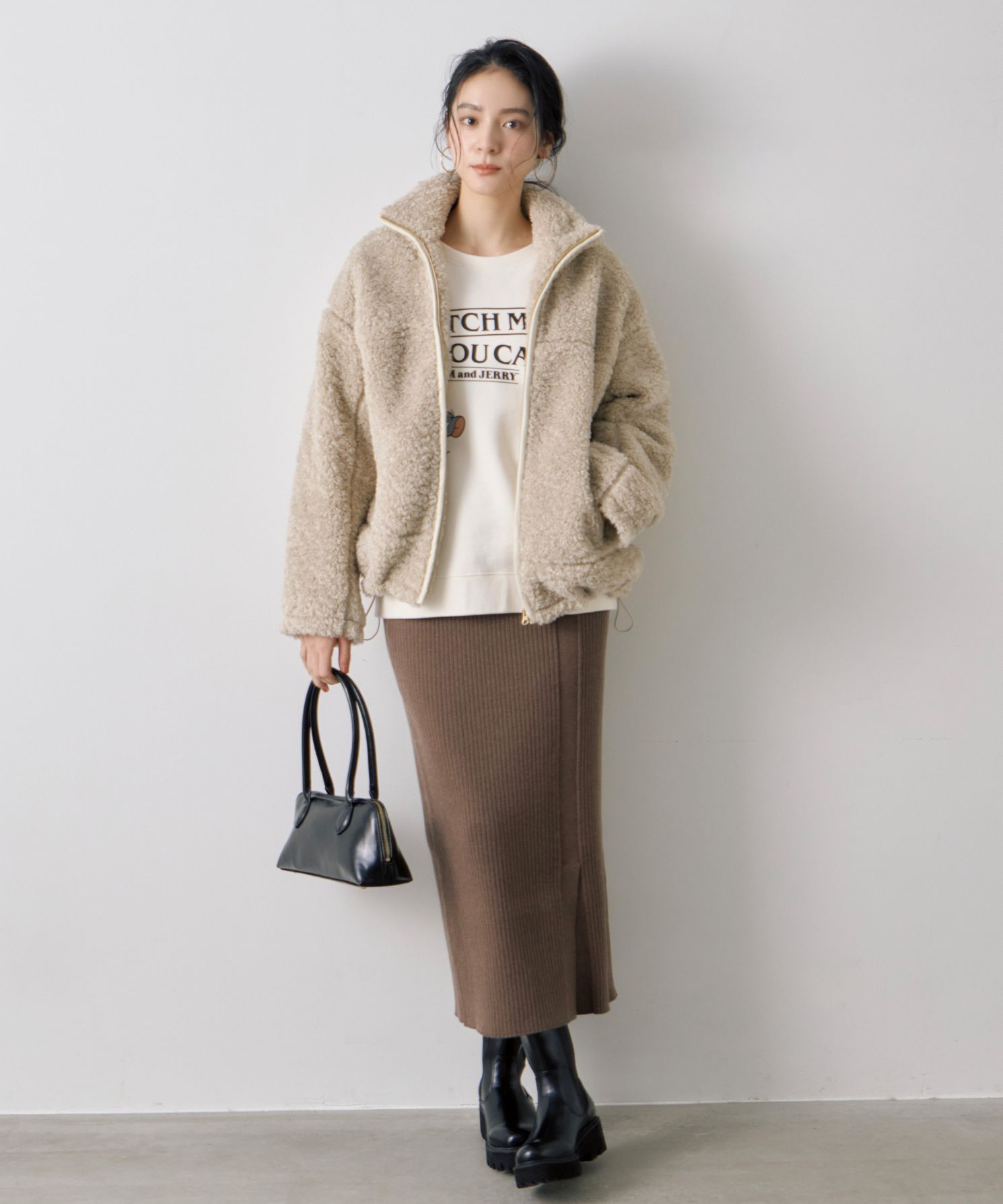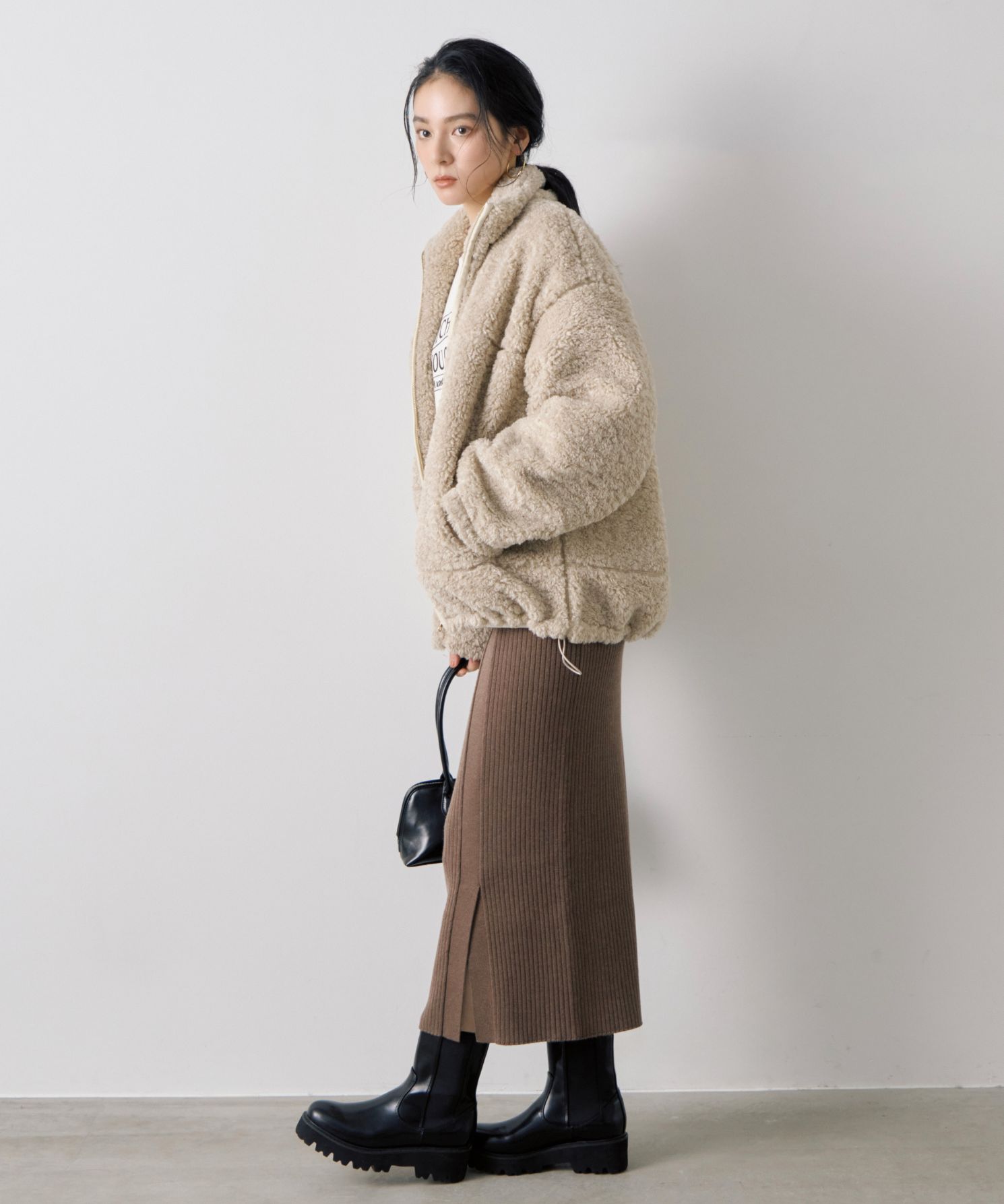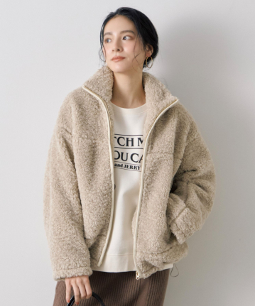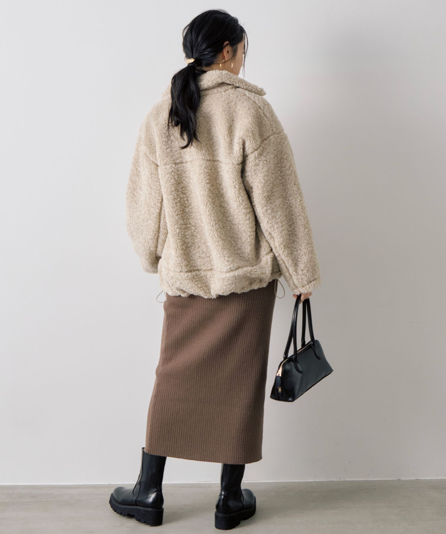 ・もこもことしたボリューム感が特長のボア素材です。程良く厚みのある生地感と、柔らかい肌触りがポイントです。