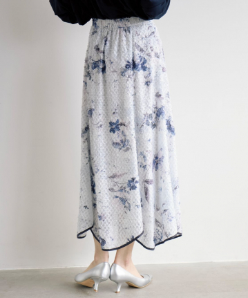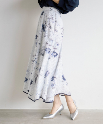・ヒップ下から裾に向かって大胆に広がる華やかなフレアシルエットになっていて、歩くたびにしなやかに揺れ、女性らしい優雅さを演出します。