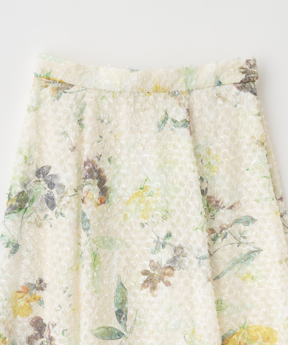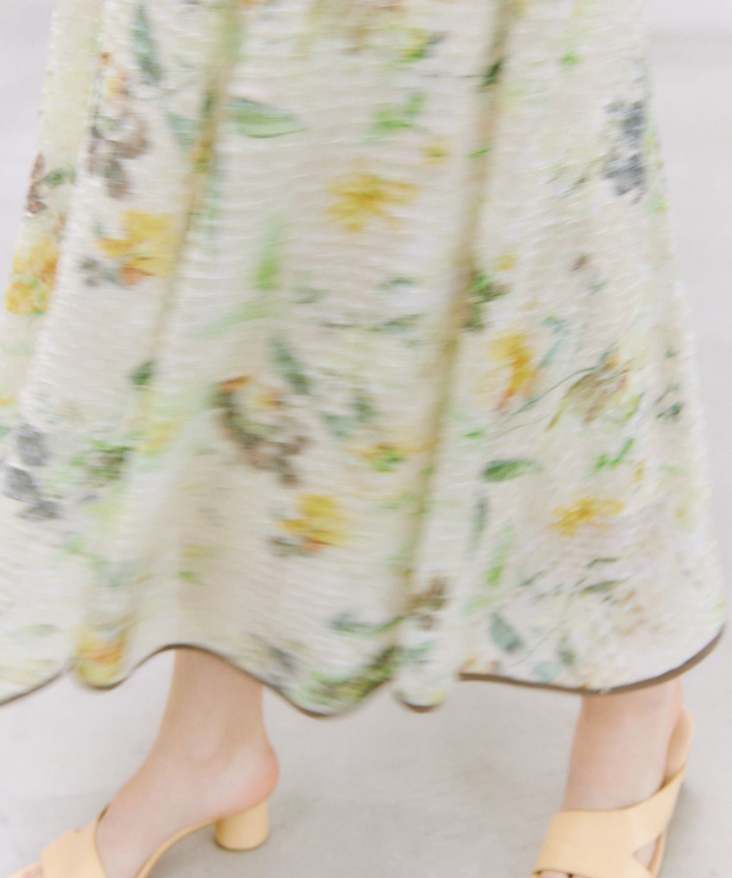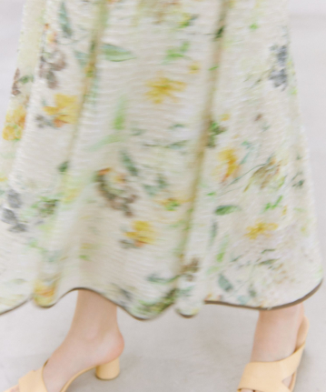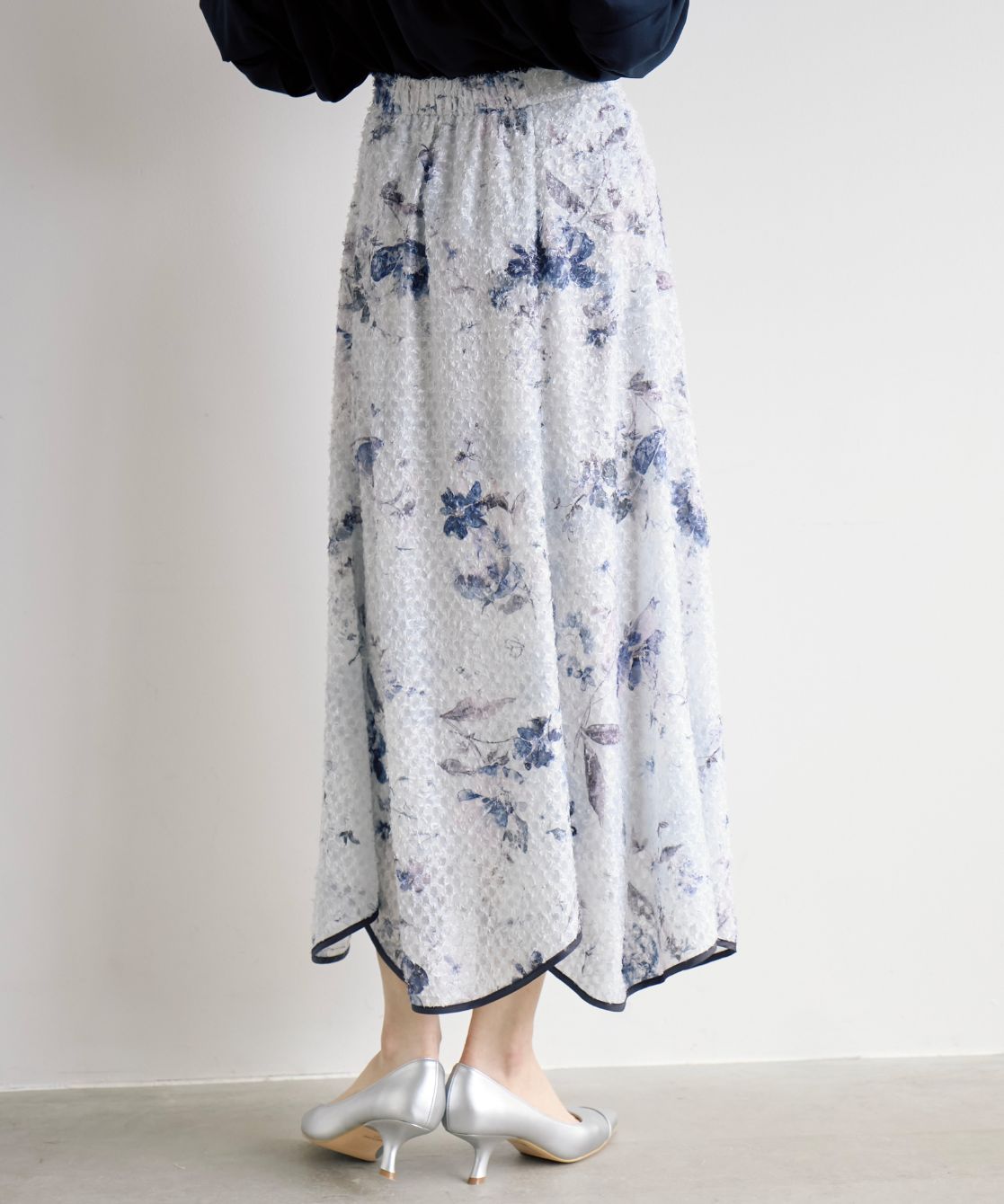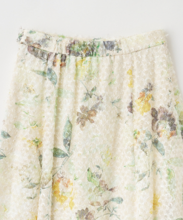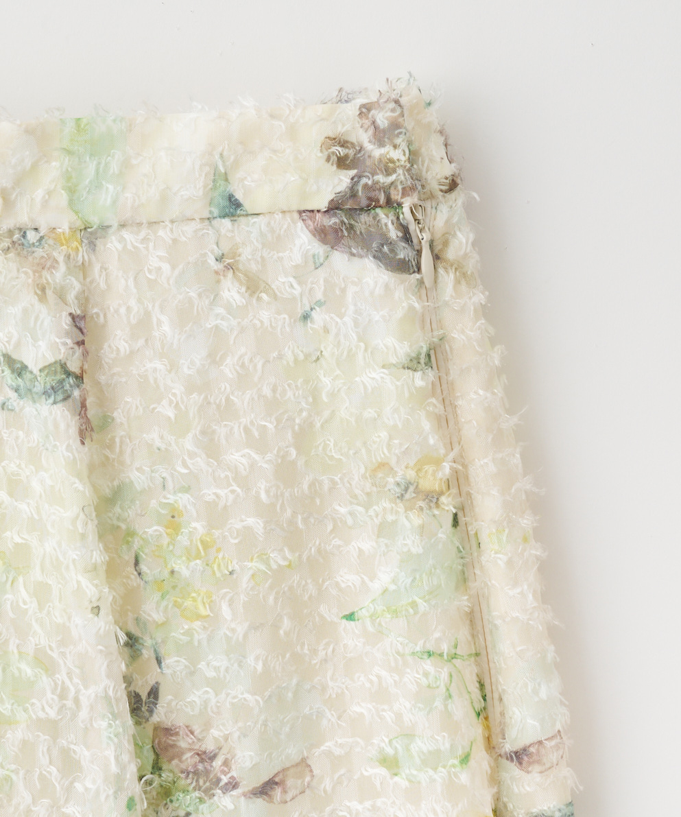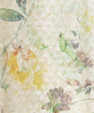 【素材感】:カットジャカードのふわふわ感と花柄プリントで華やか。