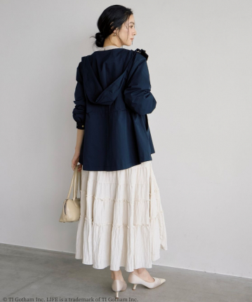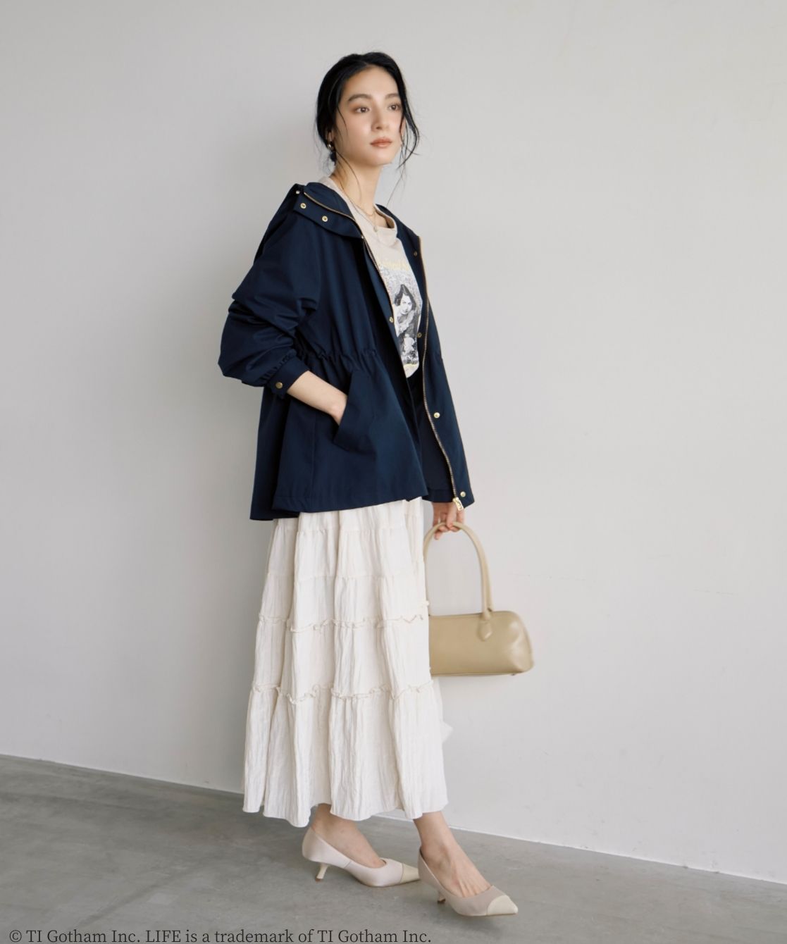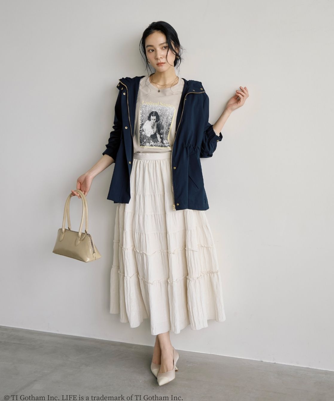【おすすめスタイリング】:ボリュームあるスカートのためスッキリシルエットのトップスと合わせるコーデがおすすめ♪ -