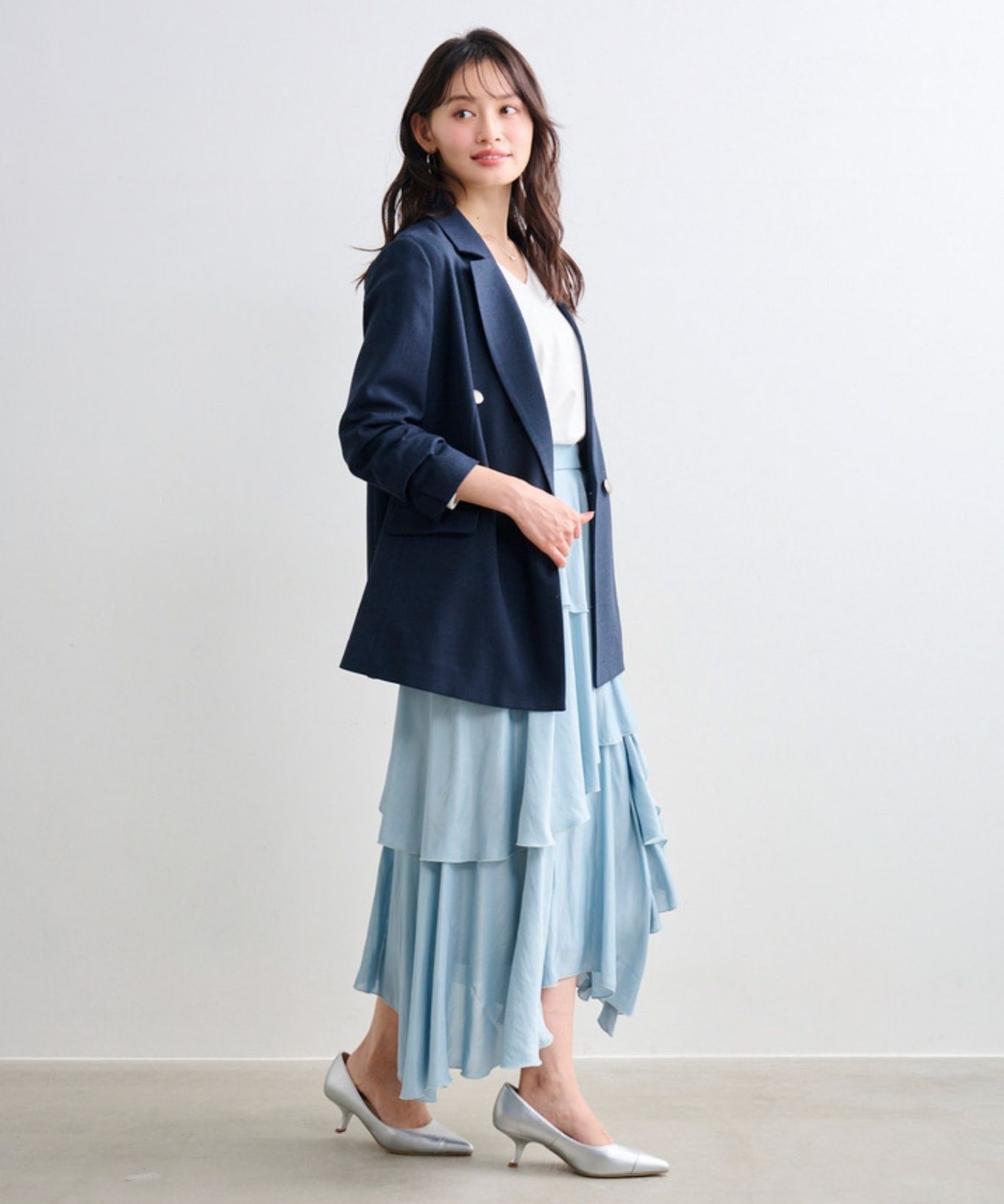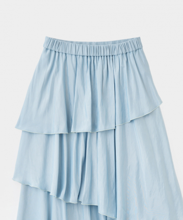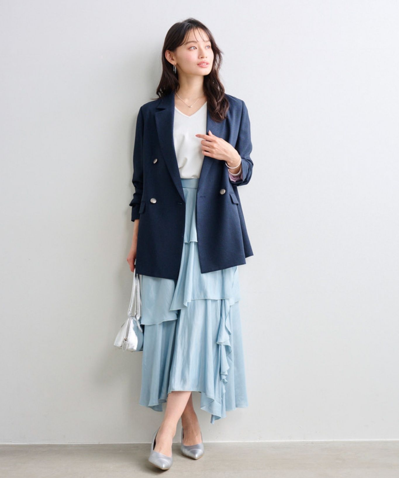 ・ほんのりと光沢のある爽やかなブルーと、とろみのある軽やかな素材が、重くなりがちなボトムスに女性らしい抜け感とエレガントなムードをプラスします。