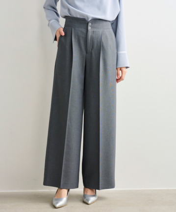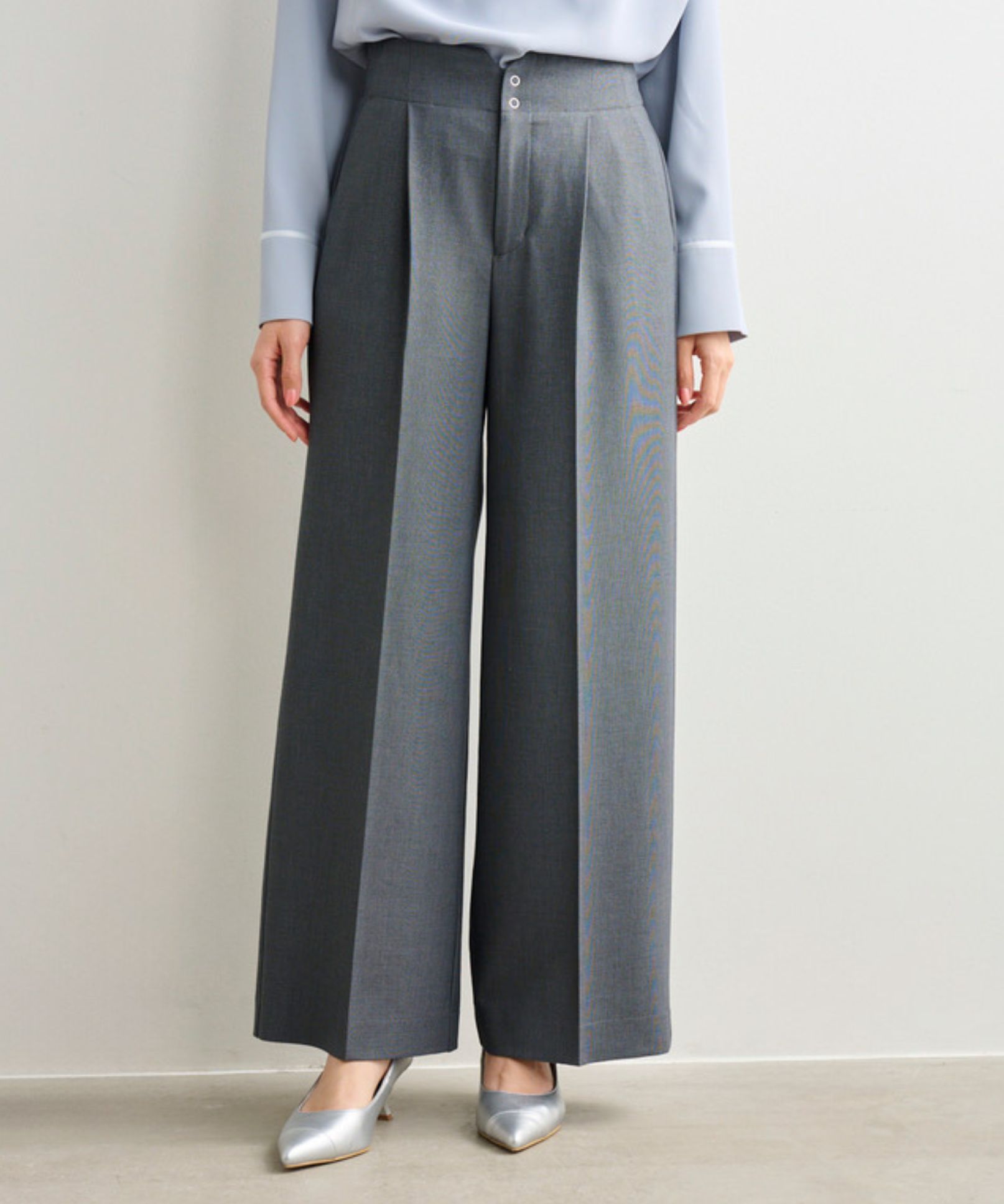 【着用感】:柔らかく穿き心地が良い。ハイウエストと前端のカッティングで、腰位置が高く、スタイルアップして見えます。