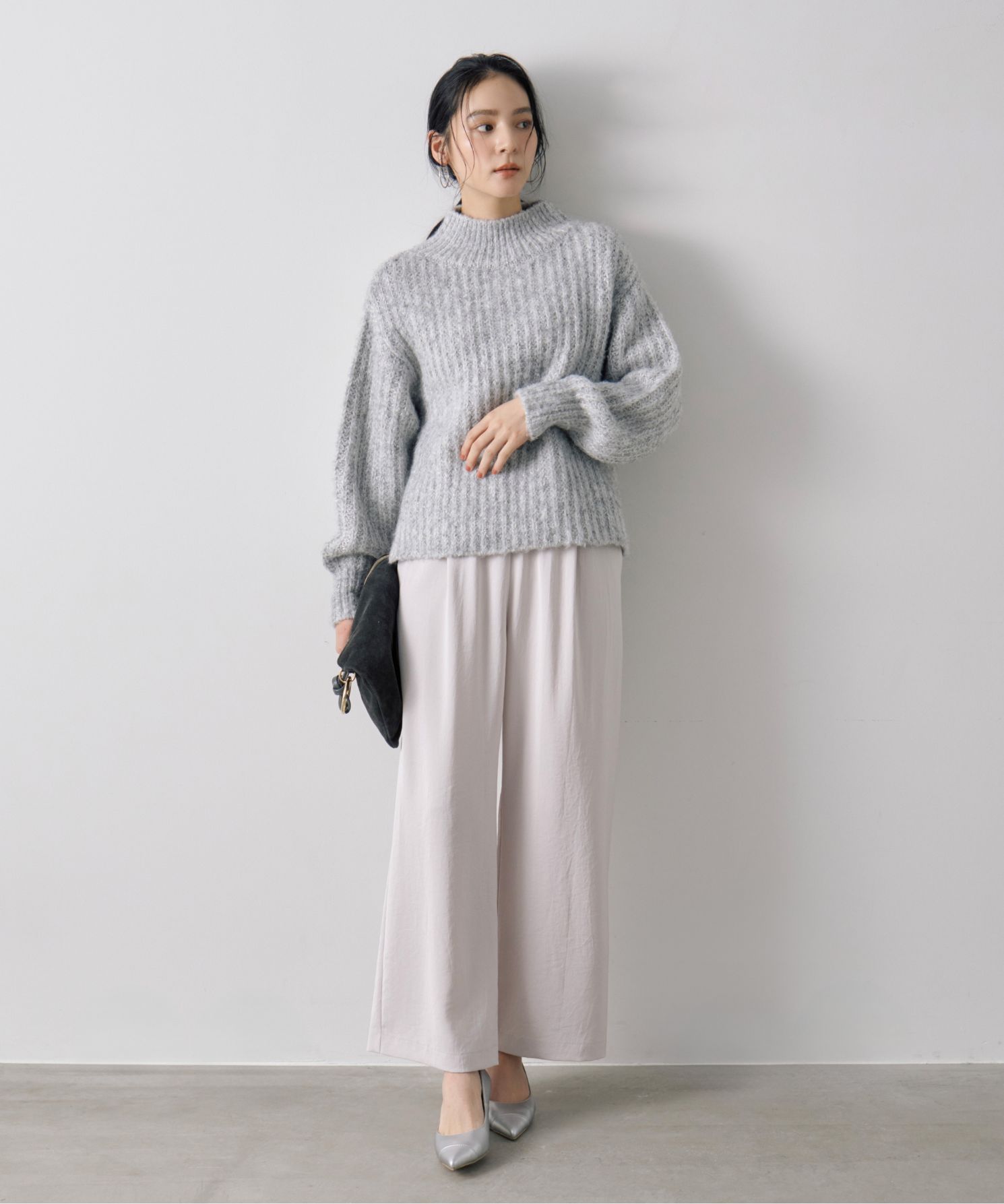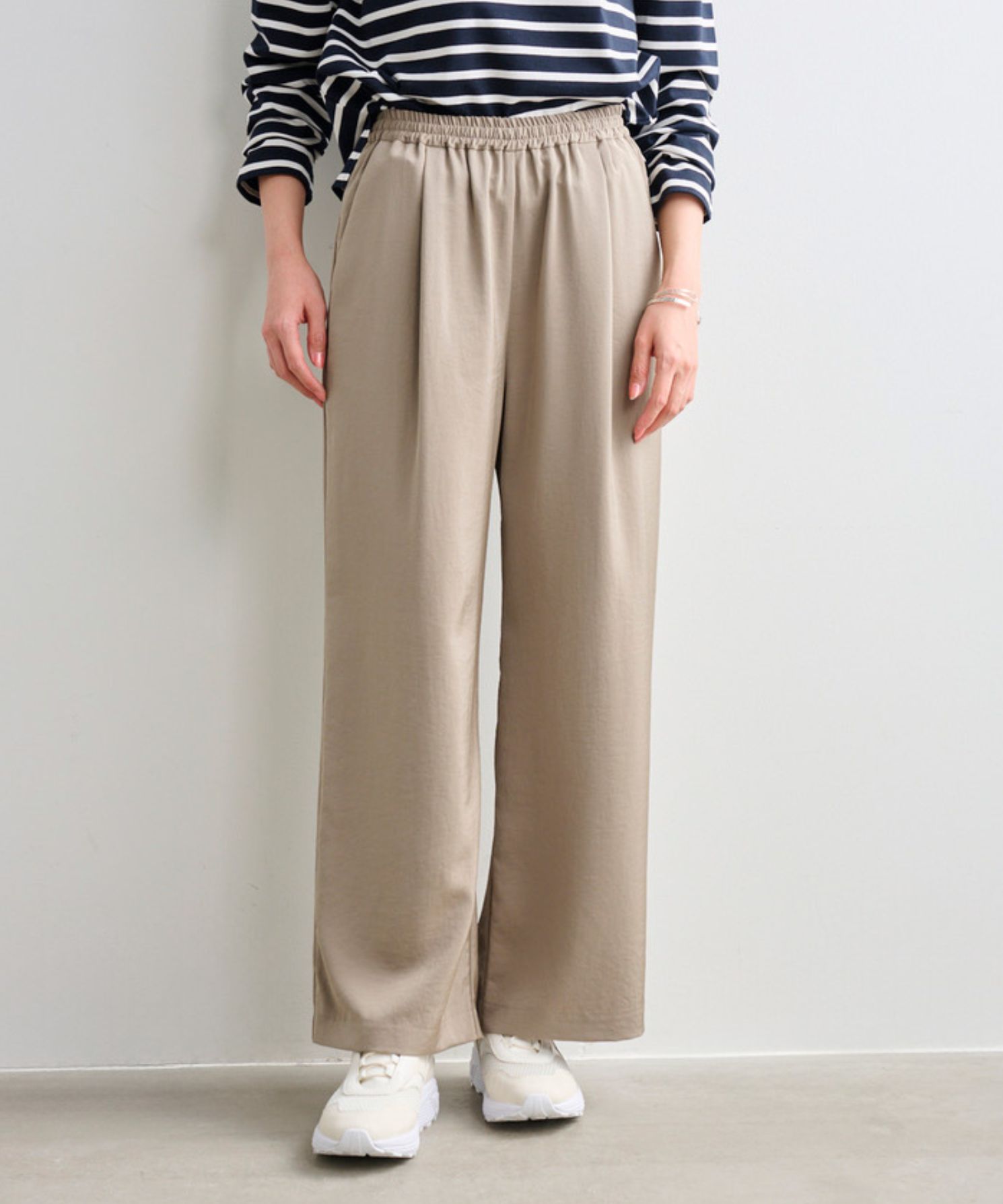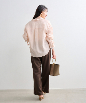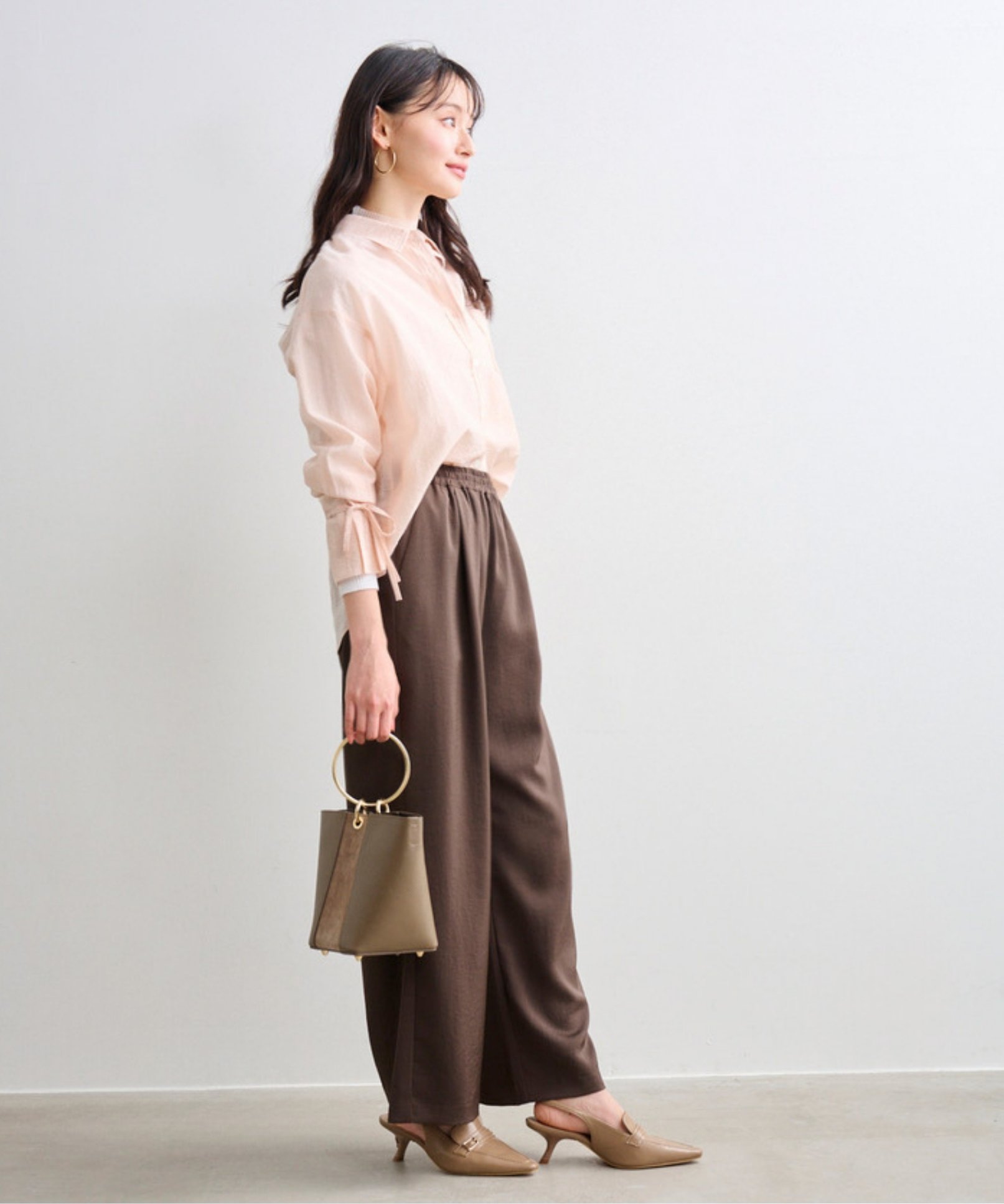 ゆったりしたパンツなので、あえてキレイめトップス合わせがおすすめ。