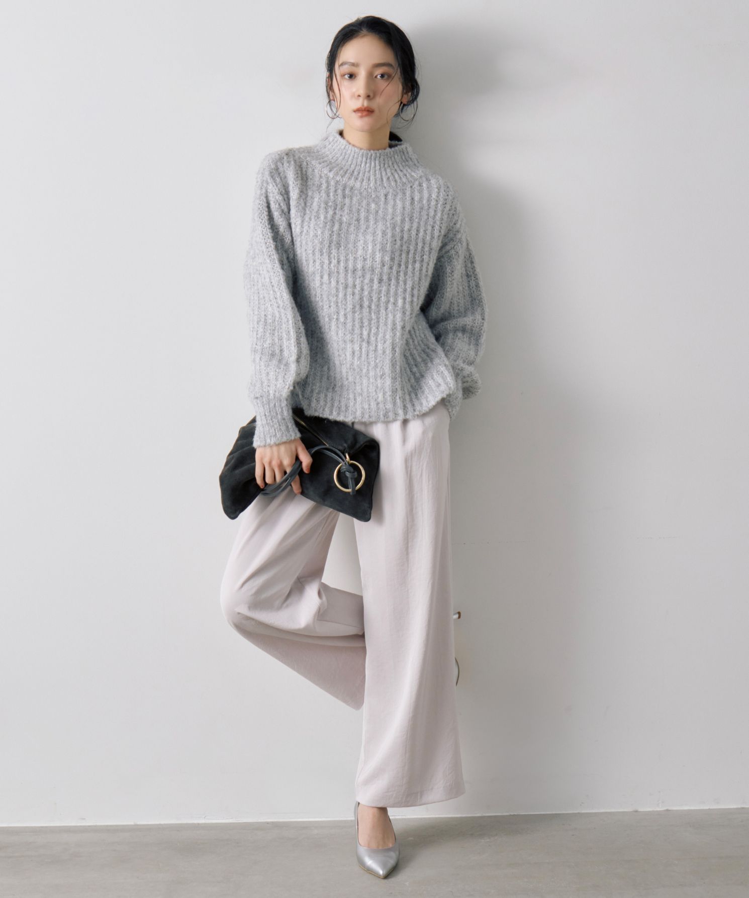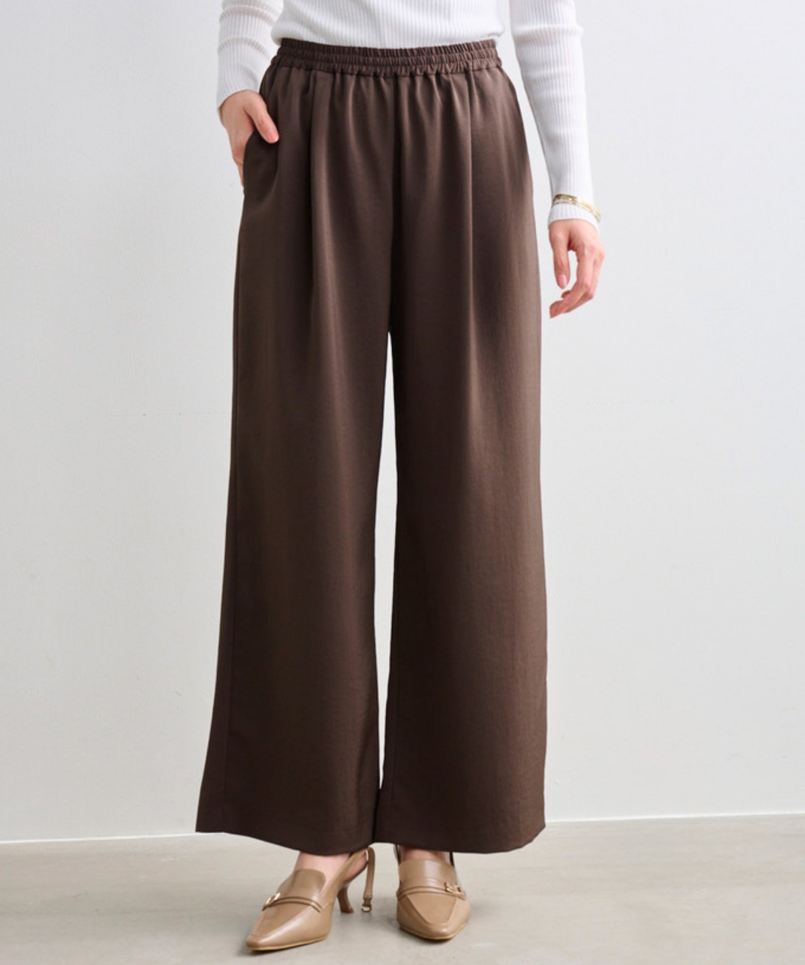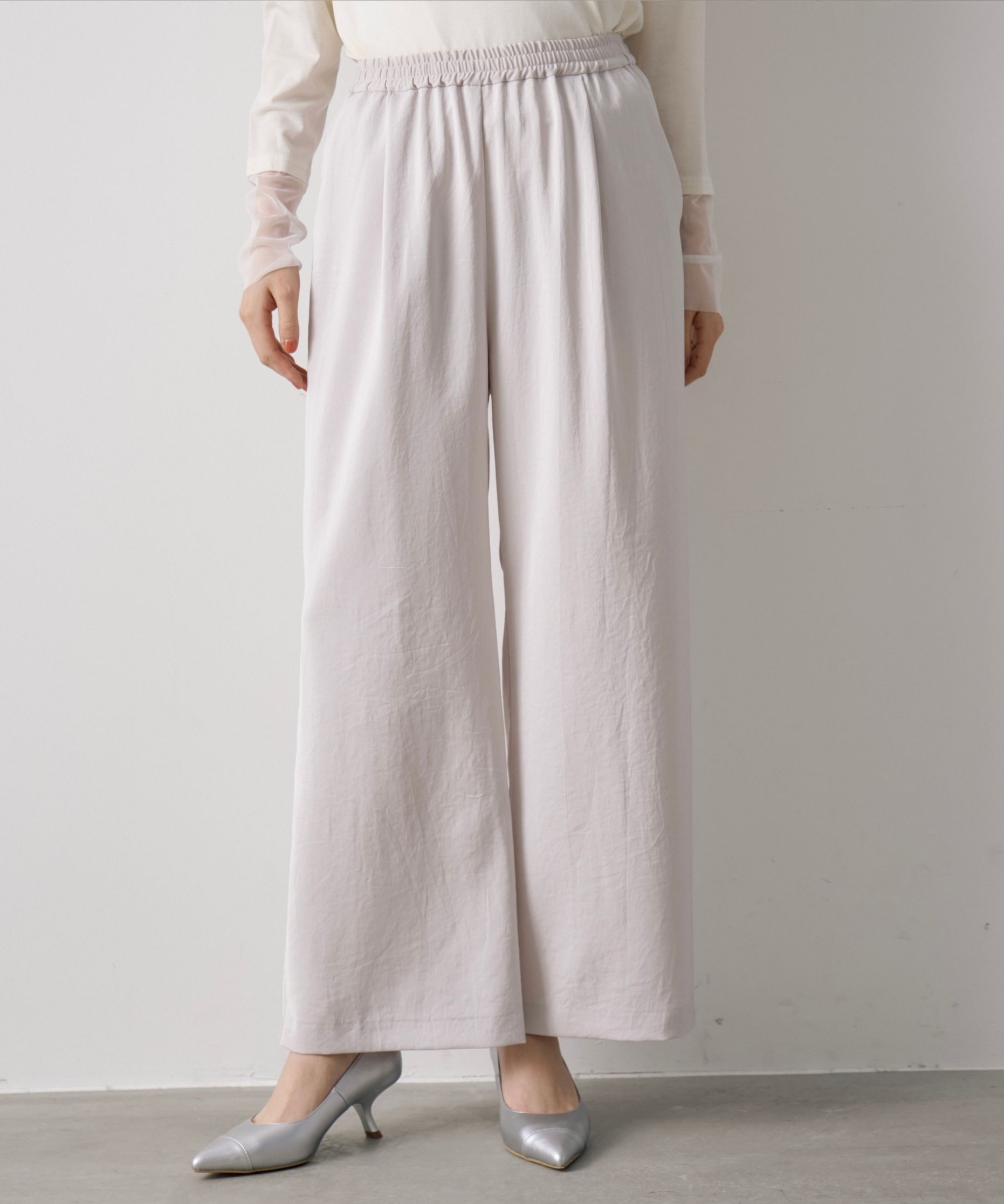 ゆったりしたパンツなので、あえてキレイめトップス合わせがおすすめ。