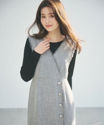 【おすすめスタイリング】:タートルニットや、ボウタイブラウスを合わせて華やかに。 -