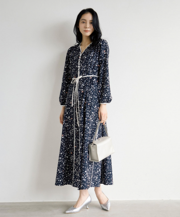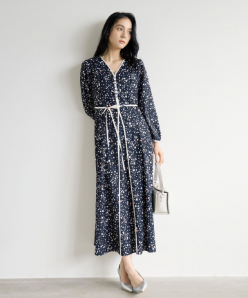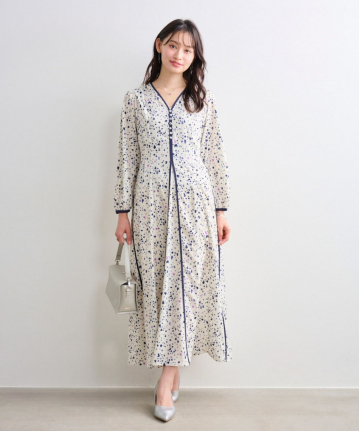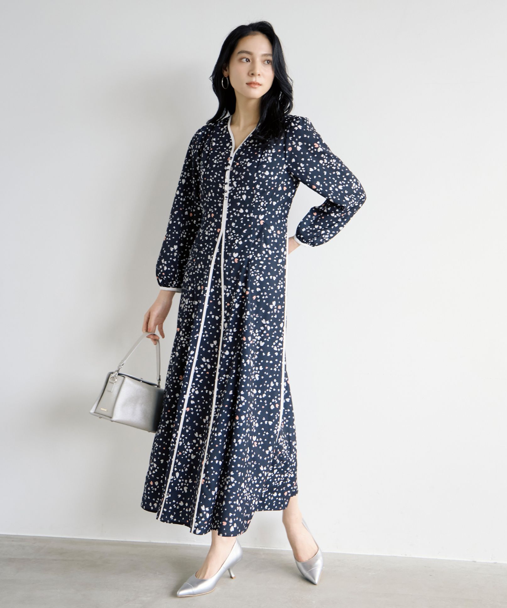 ・ふわっと広がるフレアシルエットと細部のパイピングデザインが、大人の甘さと上品さを両立させ、1枚で華やかなスタイルが完成するワンピースです。