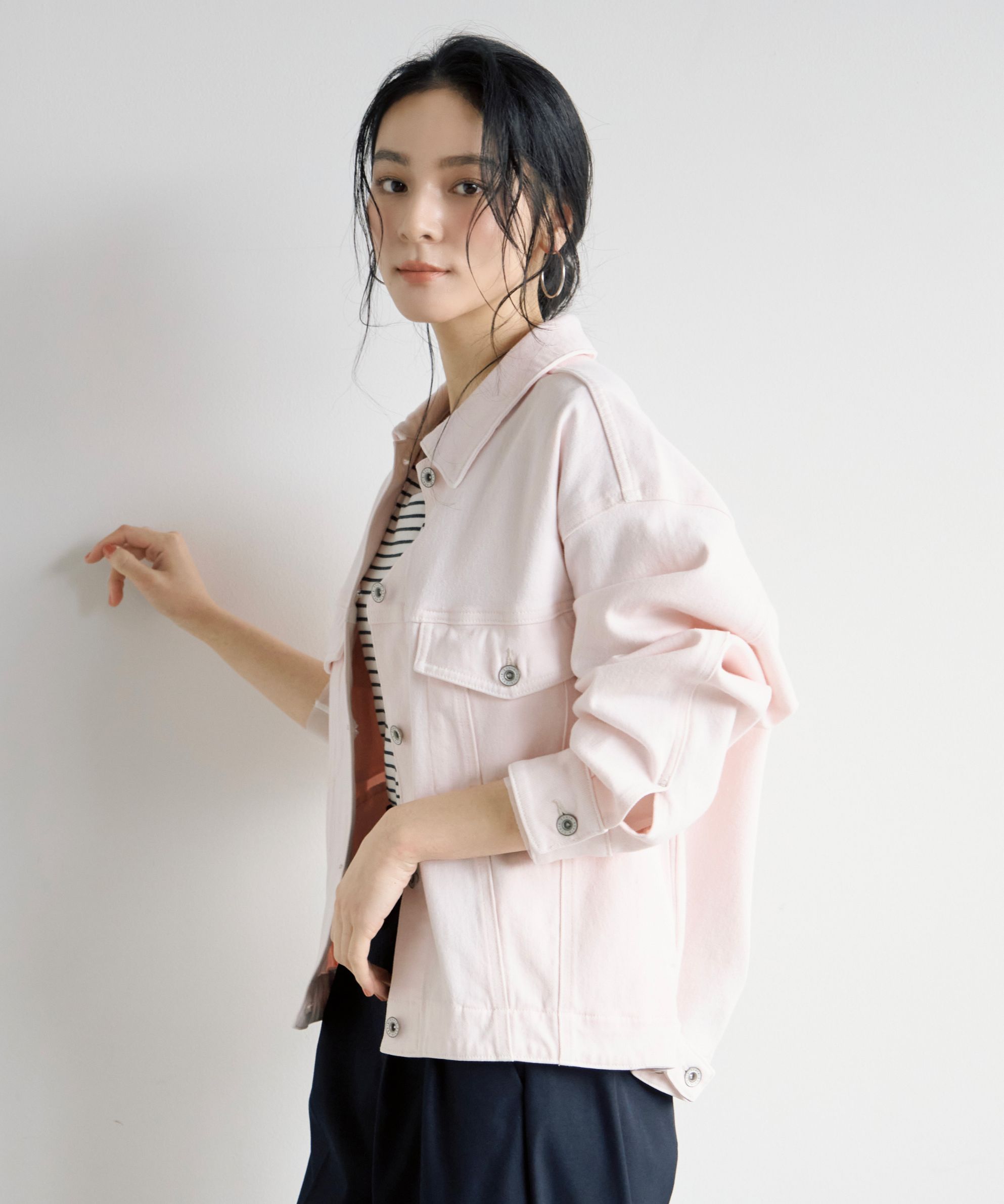 ・1番色のピンクは、春らしい淡いトーンでスタイリングのアクセントに。2,3番色にはピンクの配色ステッチを効かせ、見た目にもポップで可愛らしい印象に仕上げています。