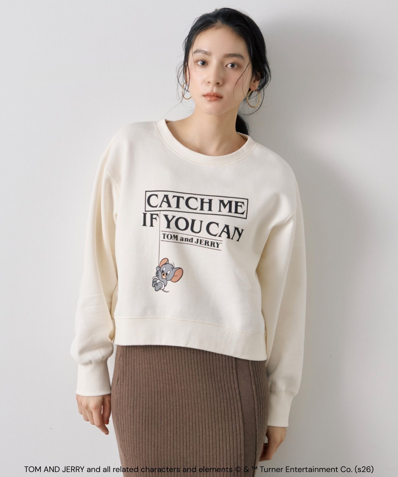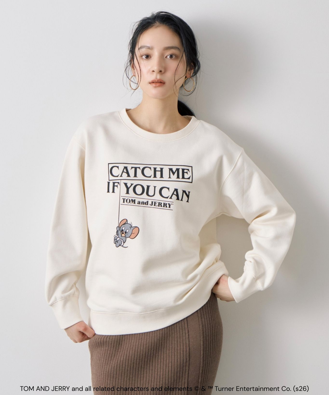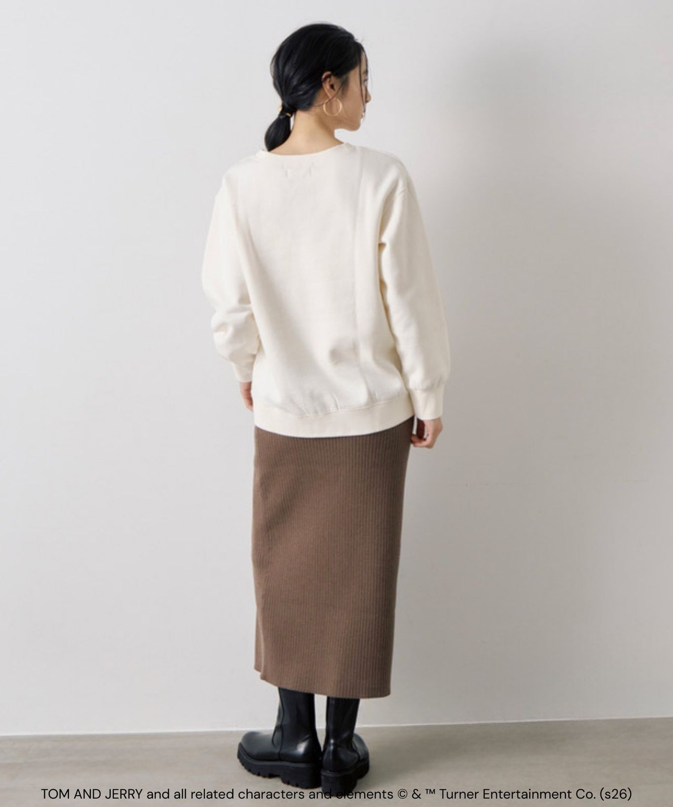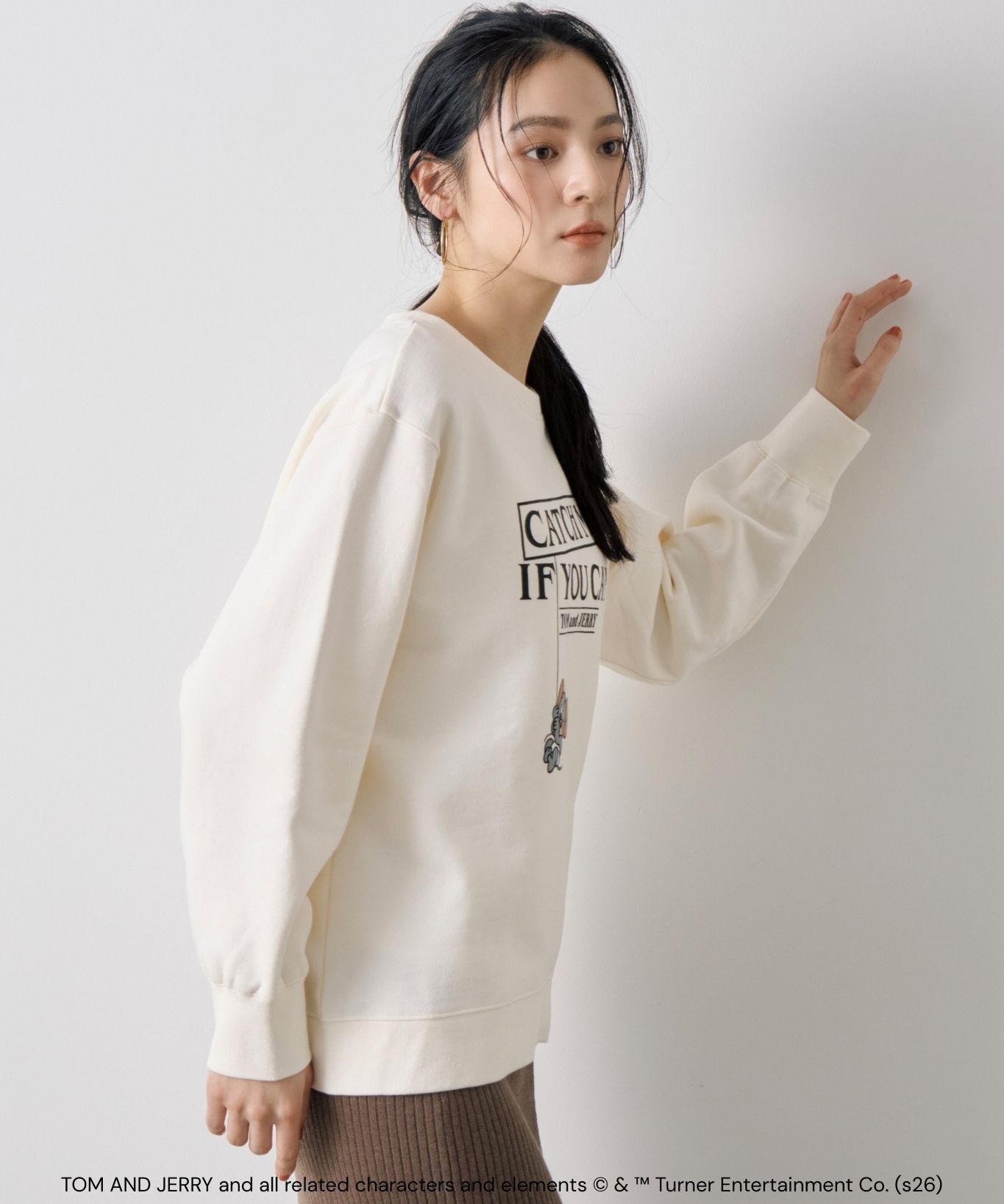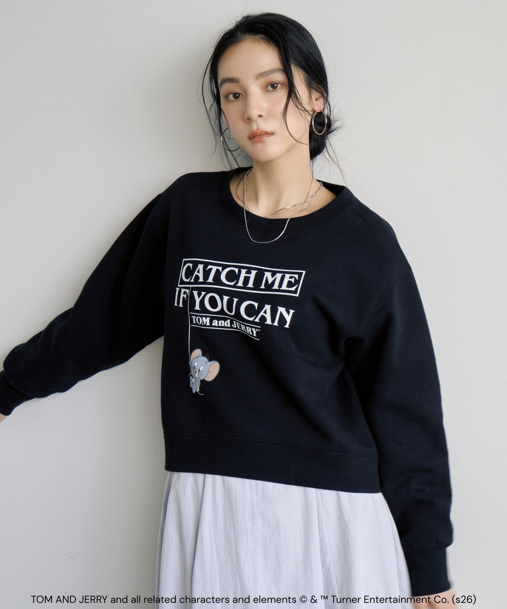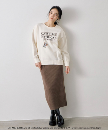 【おすすめスタイリング】:きれいめスカートと合わせた甘めカジュアルコーデ。