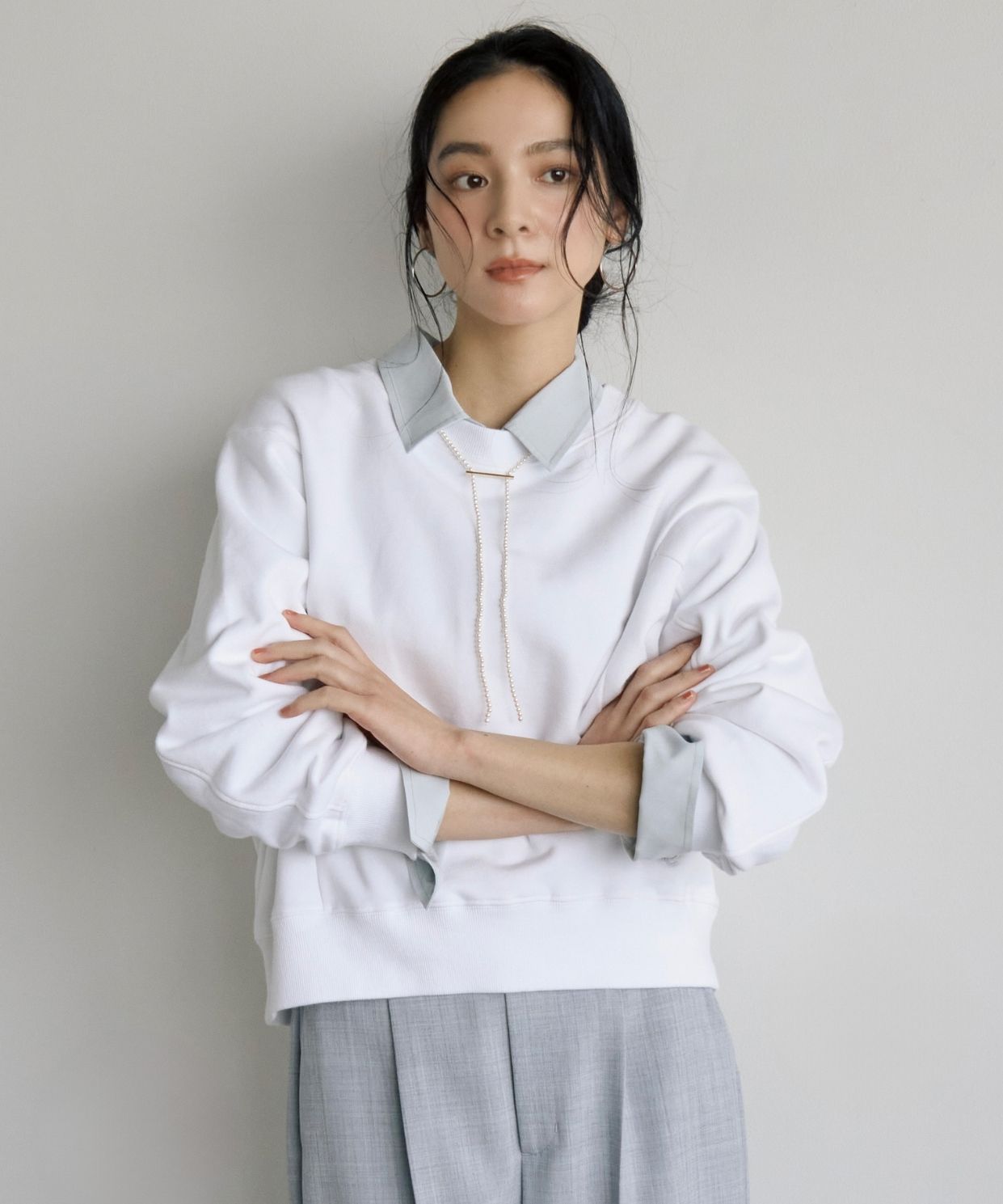 【着用感】:身幅や袖にゆとりがあるのでレイヤードしてもごわつきがない。
