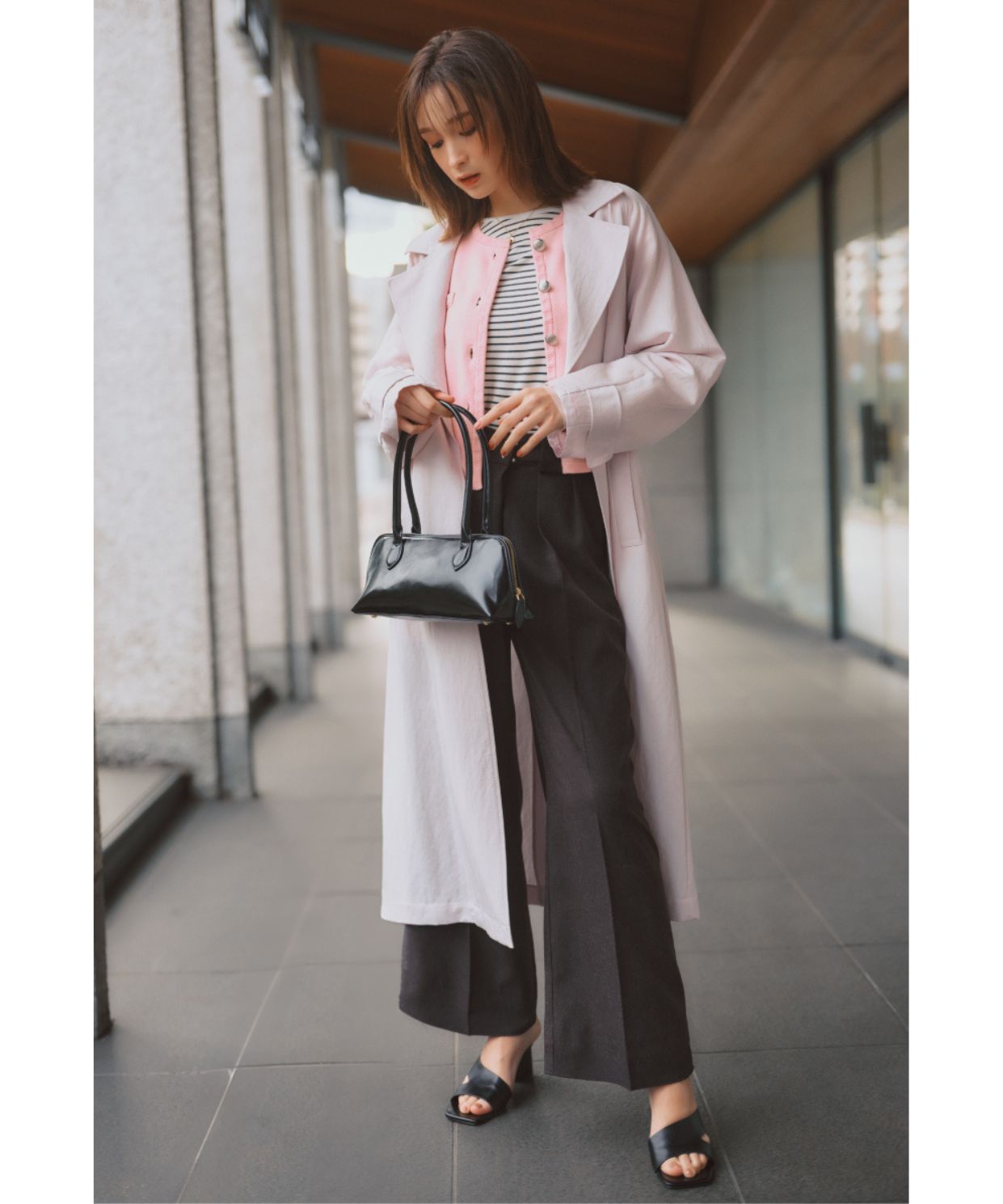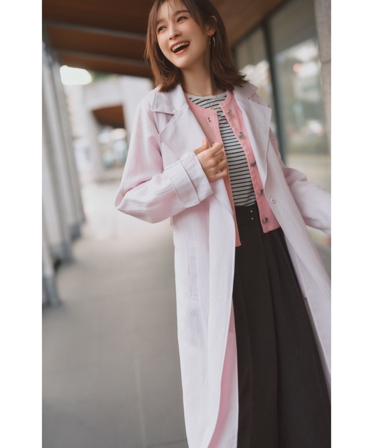 【着用感】:ビックシルエットではないため、小柄さんでもキレイに着用できる