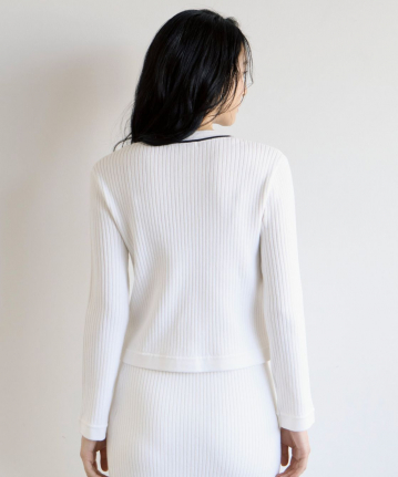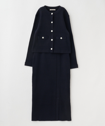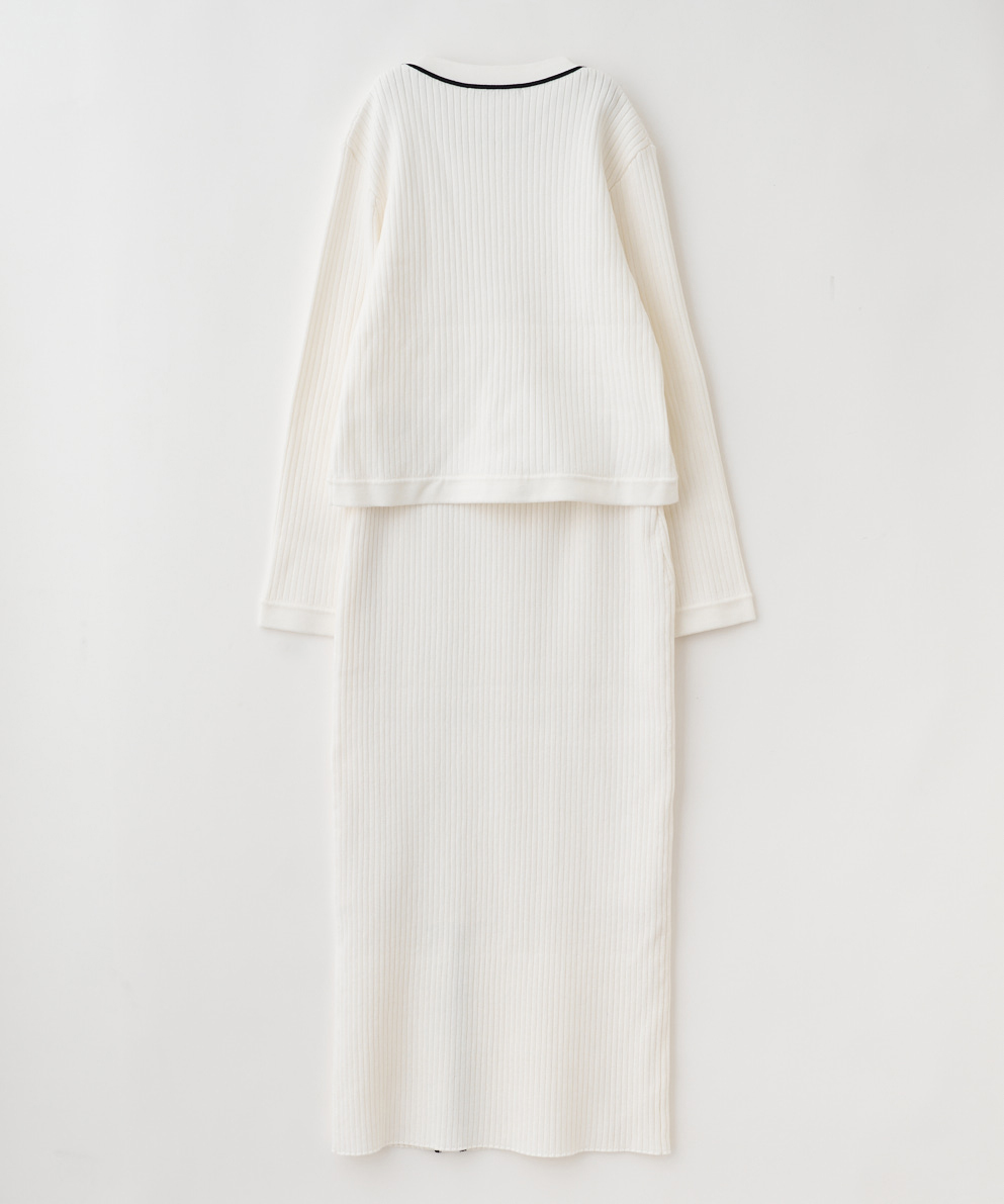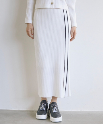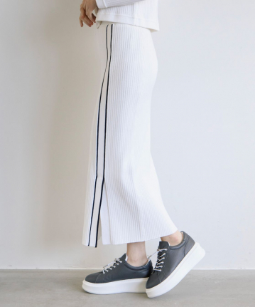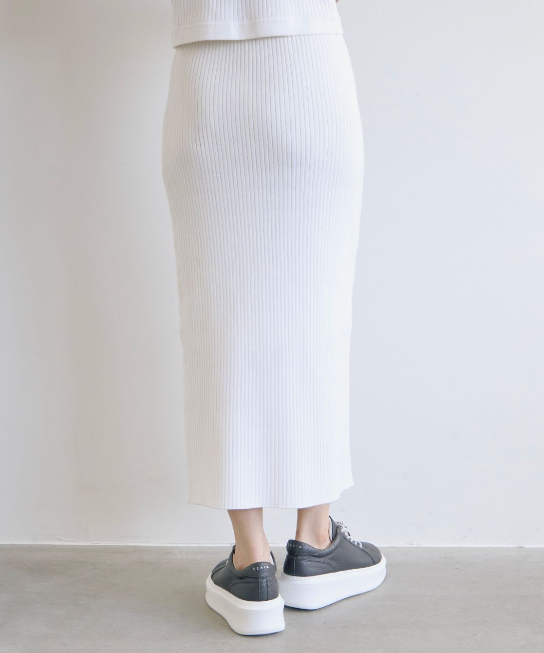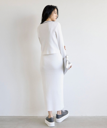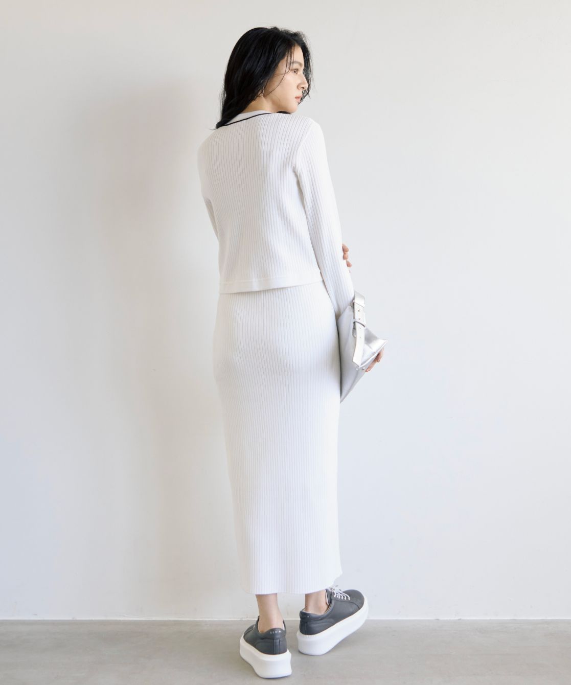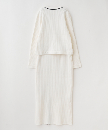 ・トップス、スカートともに細やかなリブ編みを使用。程良い厚みと伸縮性で、身体に優しくフィットし、ストレスフリーな着心地です。