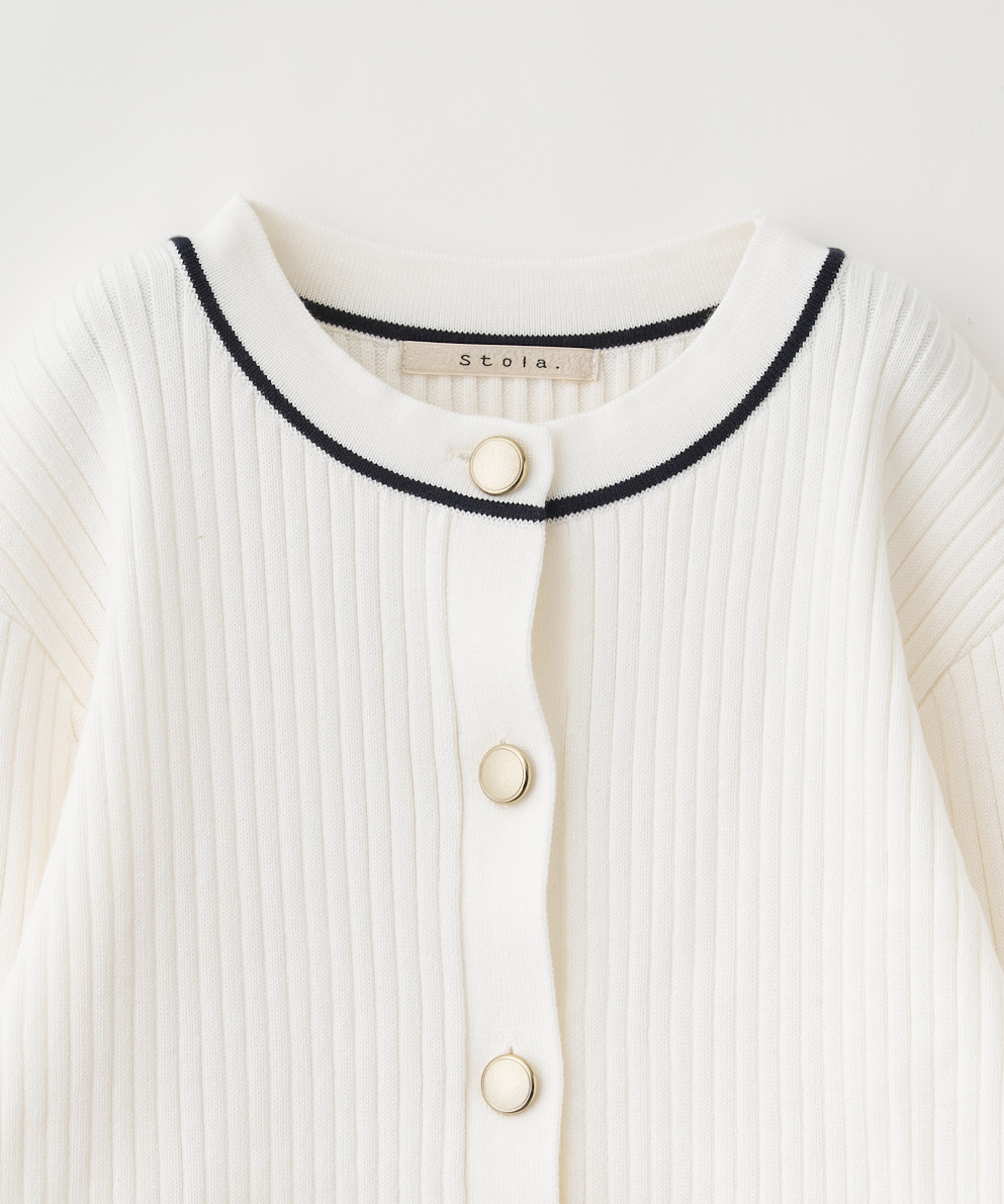 ・オフのみ、衿ぐりとスカートの前立て部分に配色ラインを施しポイントにしています。