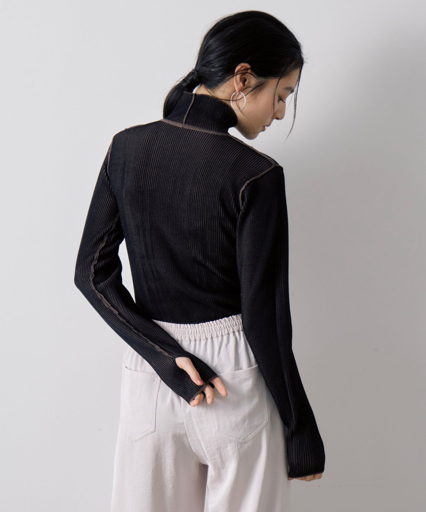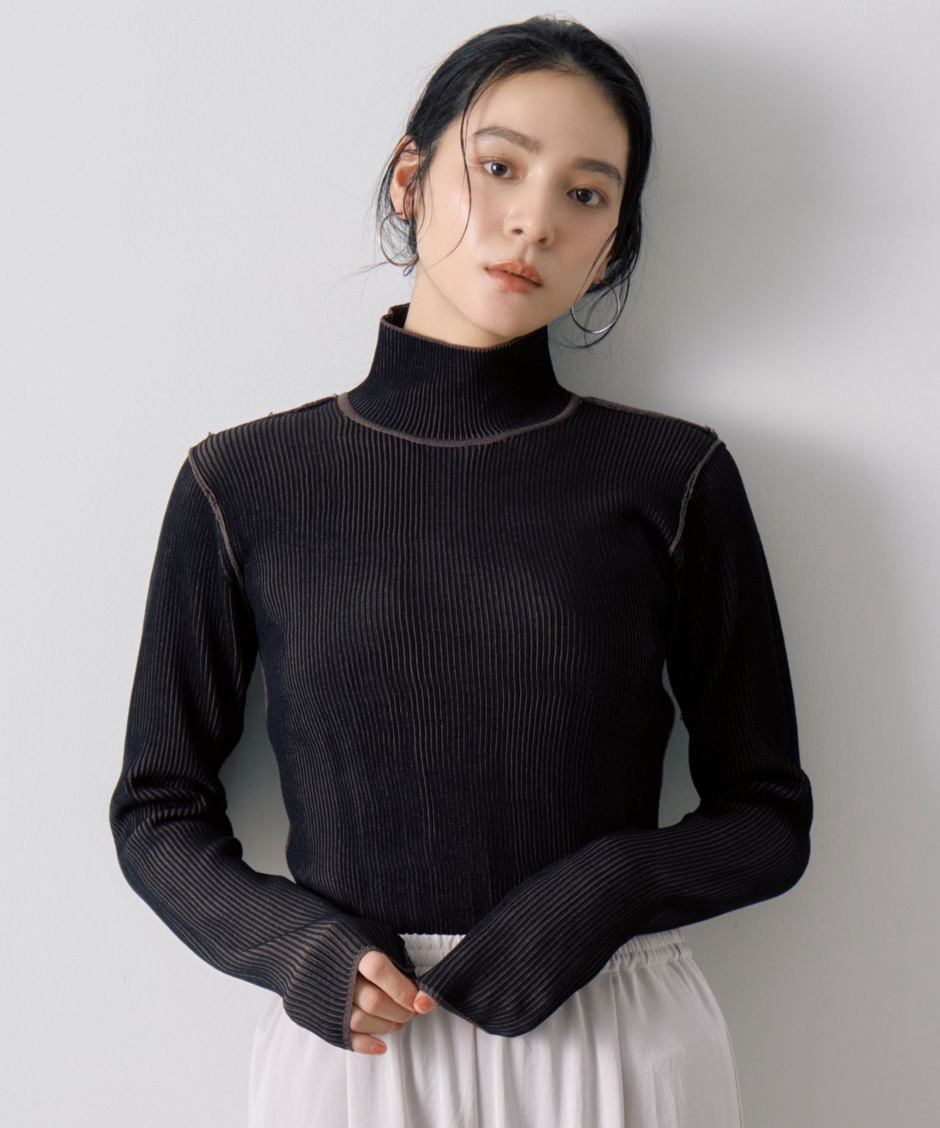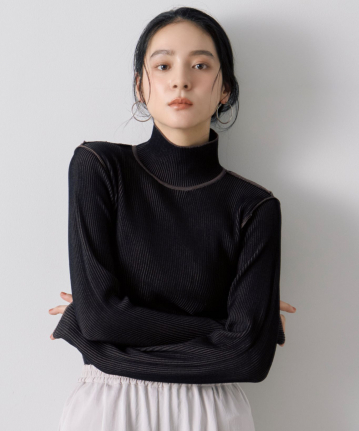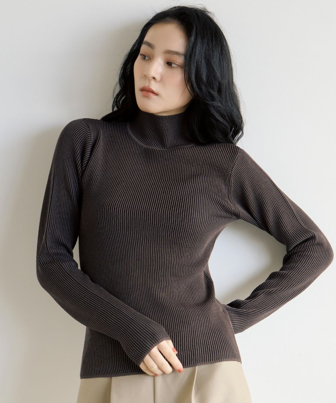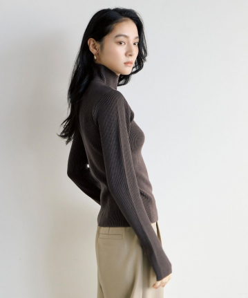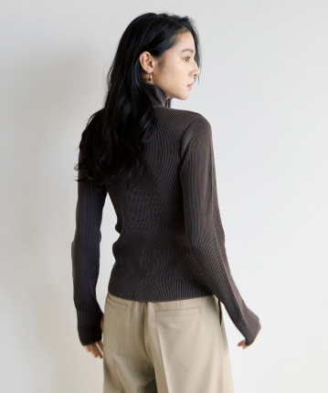 ・細やかなリブ編みが縦のラインを強調し、すっきりとした印象に仕上げます。