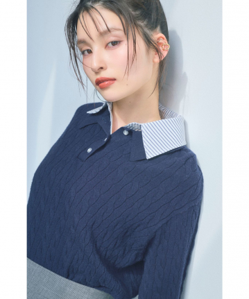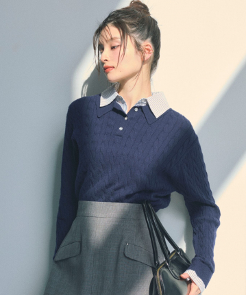 【着用感】:身幅にややゆとりがあるが、ケーブル編みなのでスッキリ見える