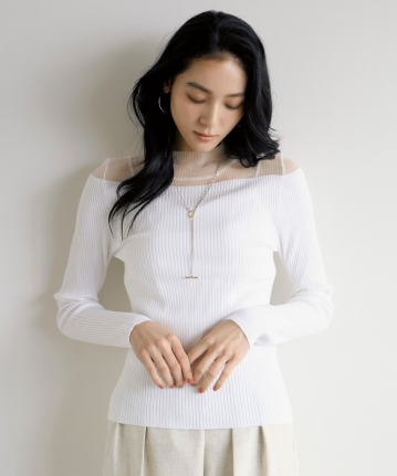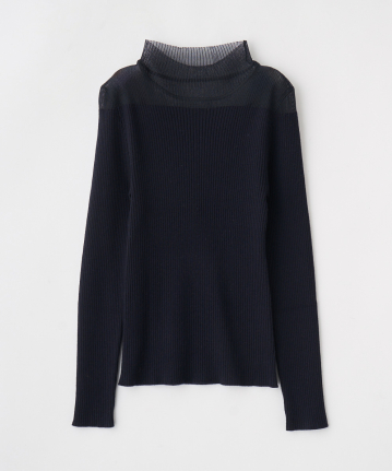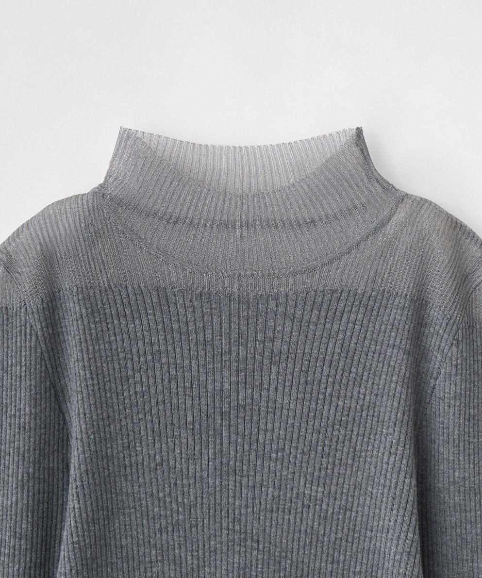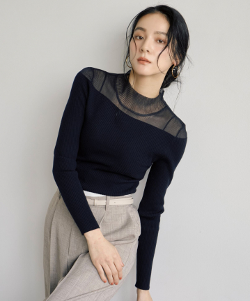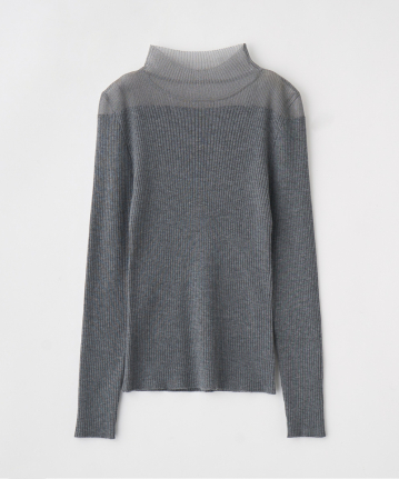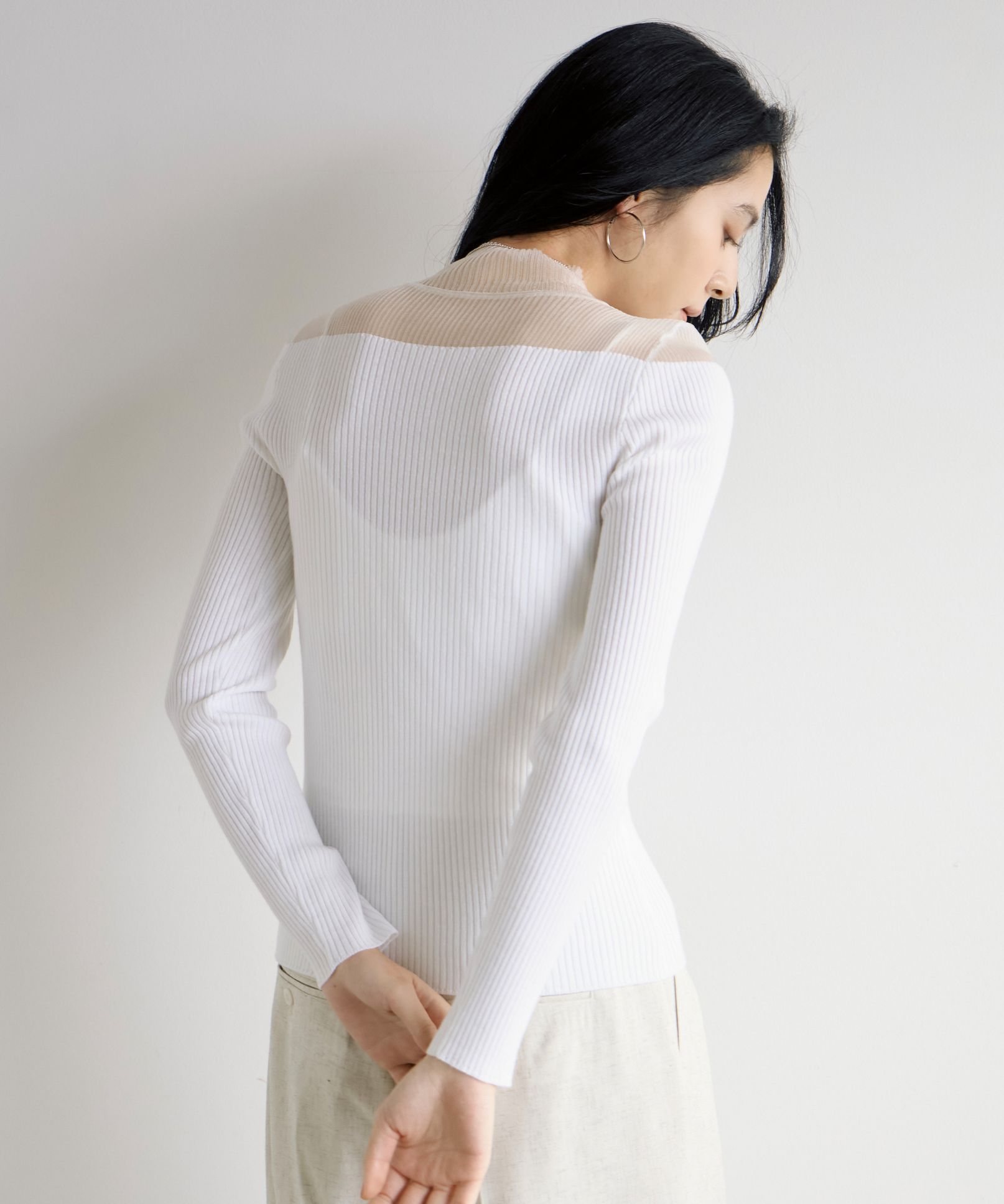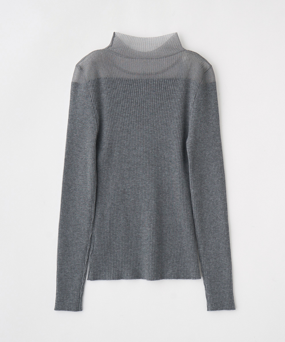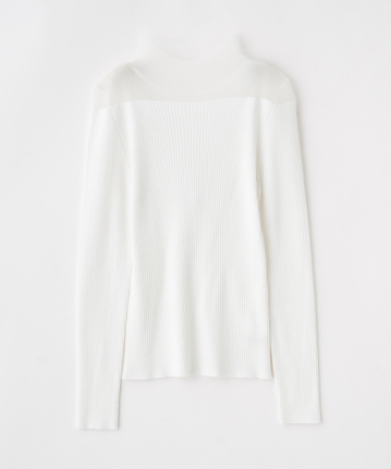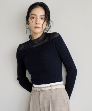 ・首元とデコルテ部分をシアー素材で切り替えた、タートルネックのリブニットプルオーバーです。