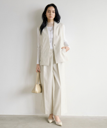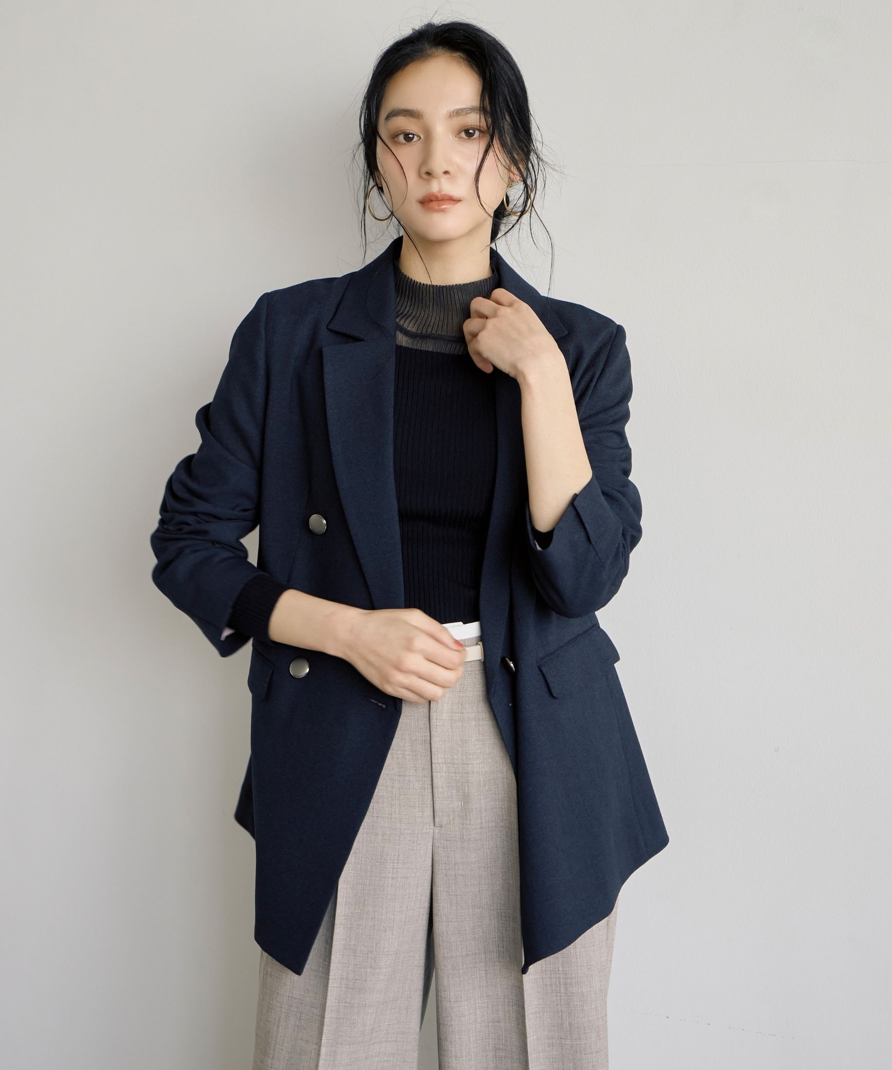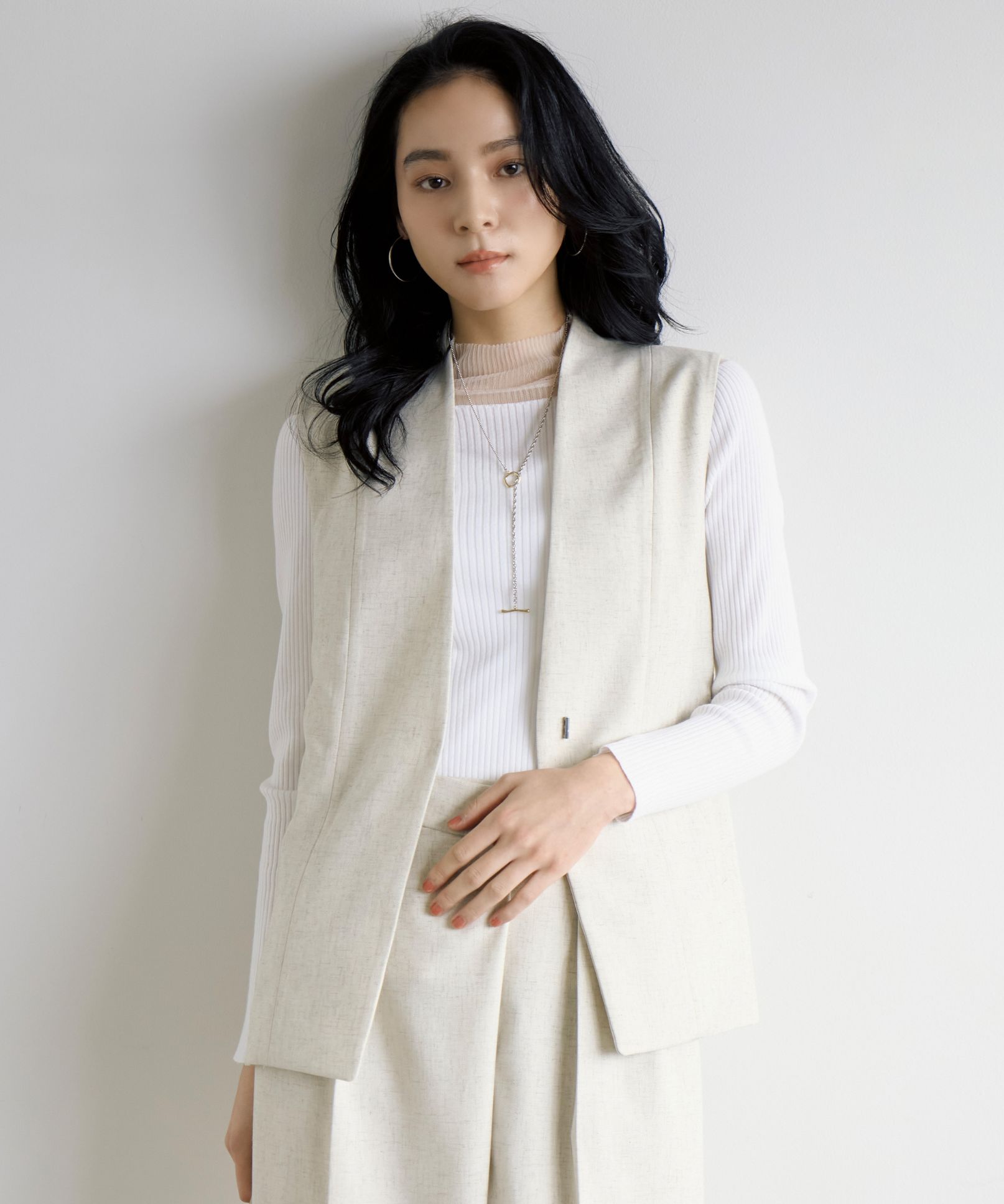 ・ジャケットやカーディガンのインナーとしても、デコルテのシアー感がアクセントになり、レイヤードスタイルを格上げします。