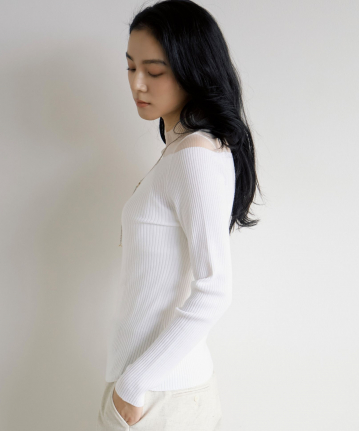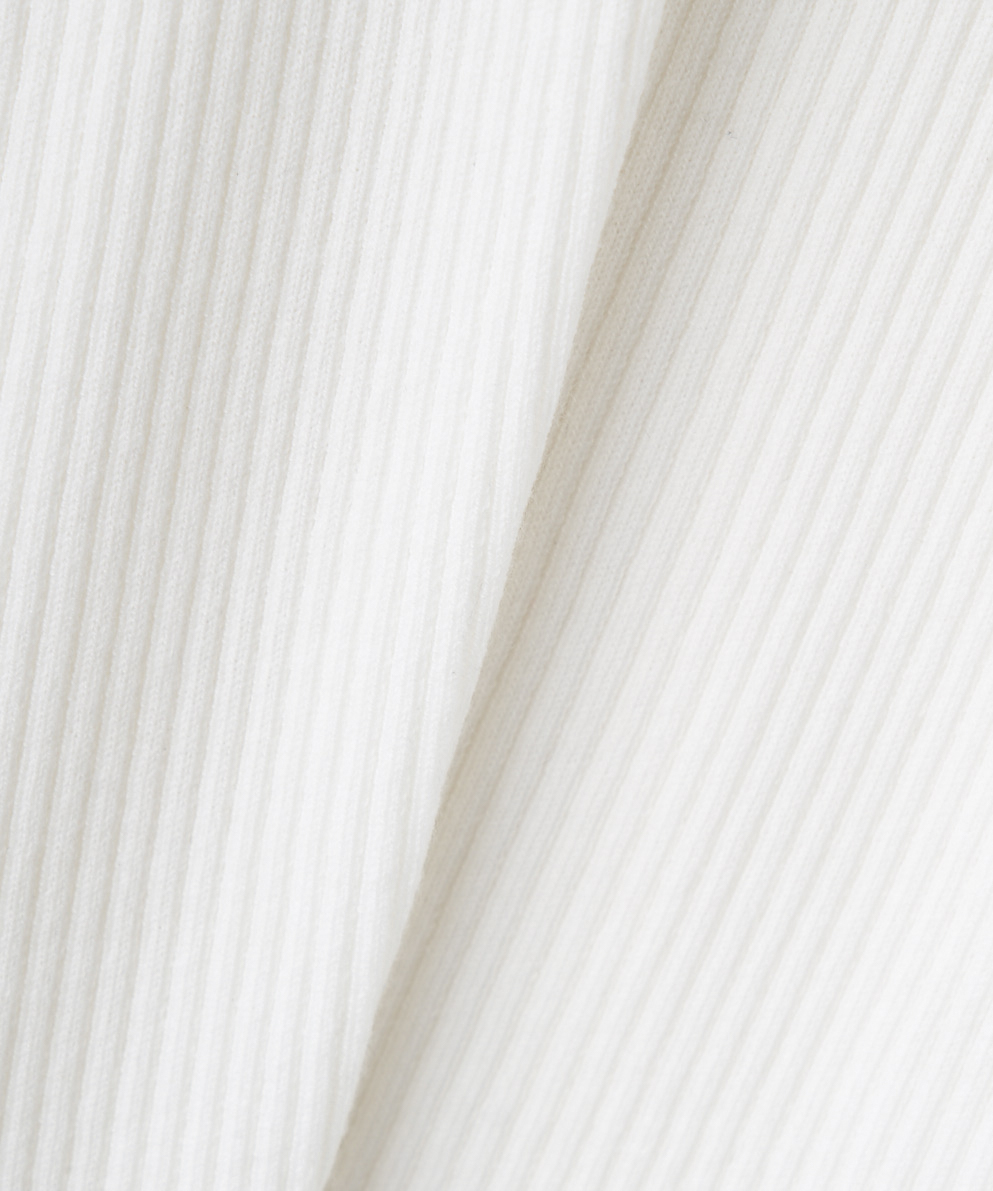 ・身頃は細やかなリブ編みで、程良くボディラインにフィットし、すっきりとした着こなしが叶います。きれいめな素材感なので、カジュアルすぎず上品な印象で着用いただけます。