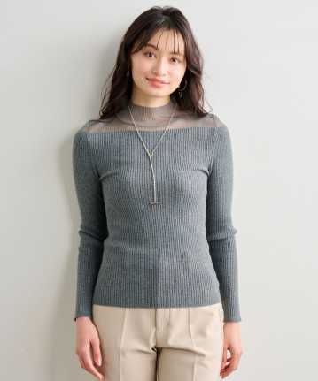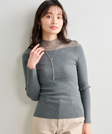 【素材感】:シアー部分は伸びないが、リブニットは柔らかく肌触りが良い。