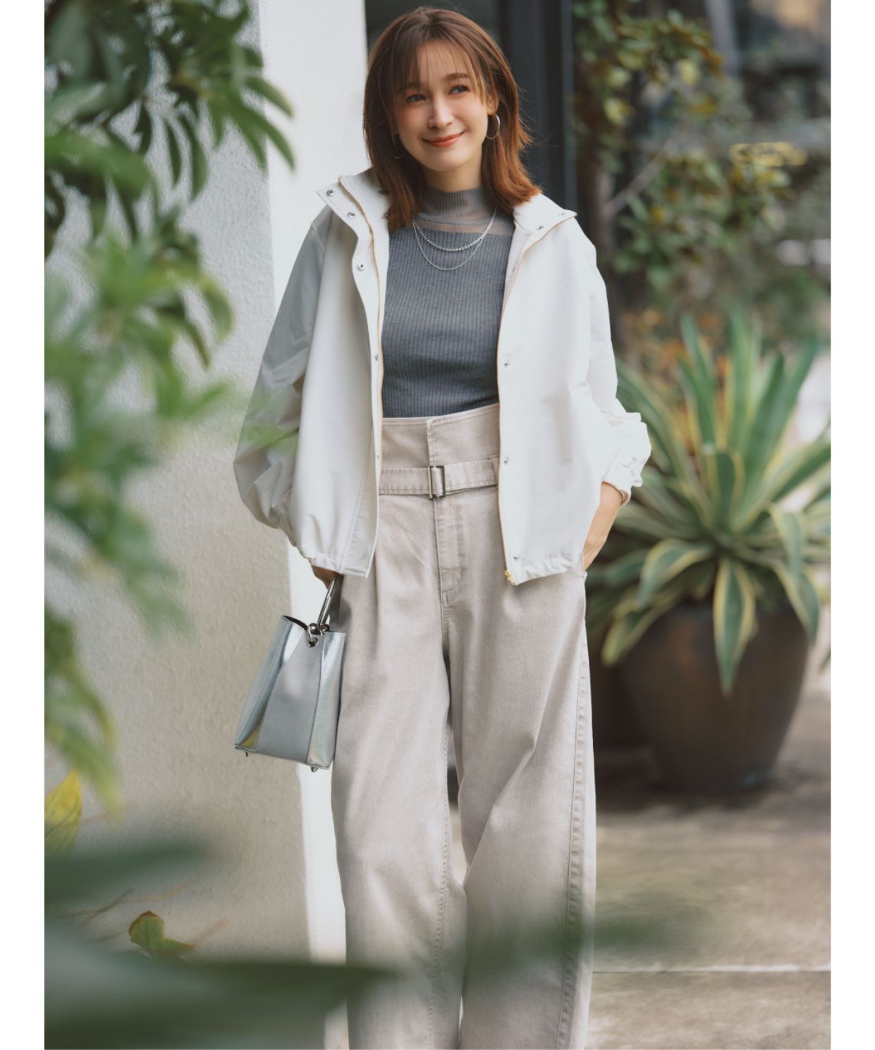 【おすすめスタイリング】: 春先は1枚で着用し、ワイドなスラックスパンツと合わせたキレイめコーデがおすすめです!