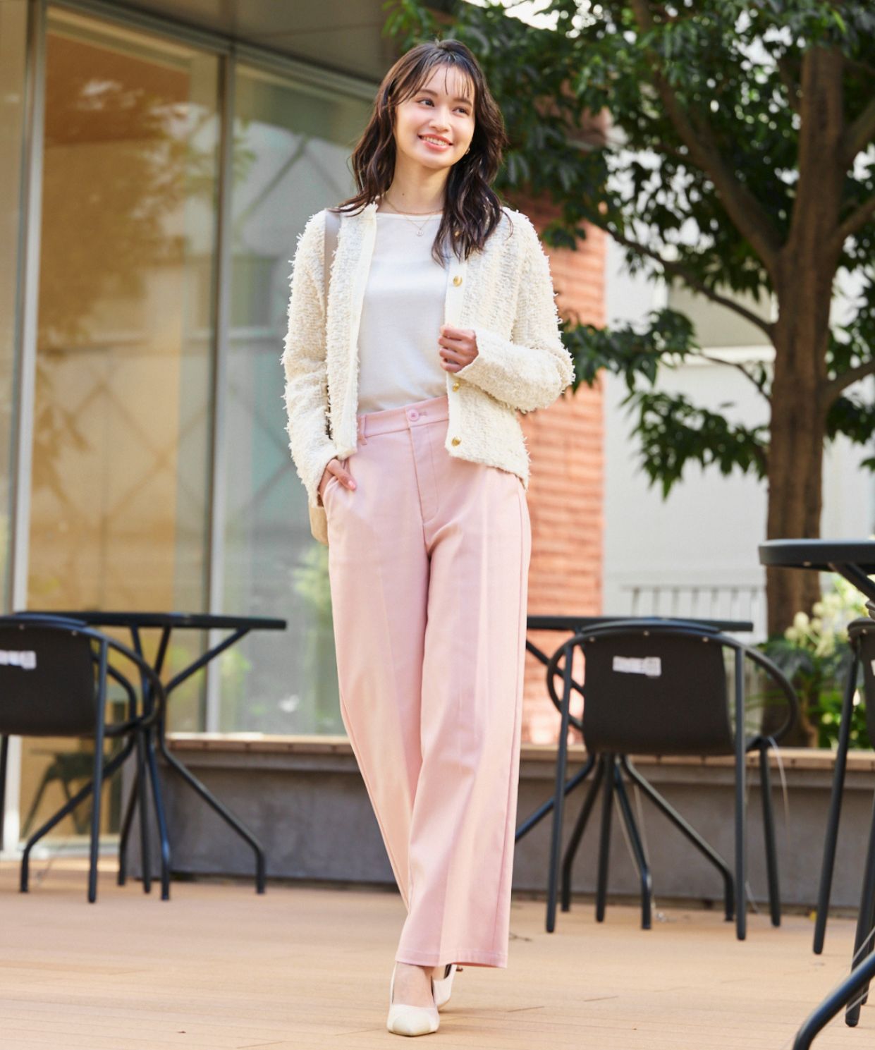 【おすすめスタイリング】:ジャケットのインナーとして。ヘルシーに見えます⭐︎