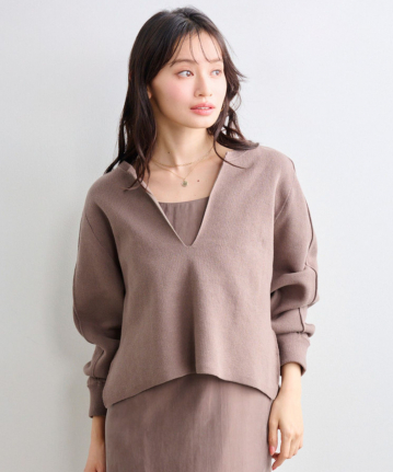 スリットネックニットプルオーバー