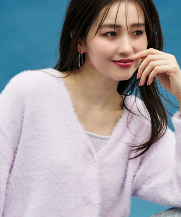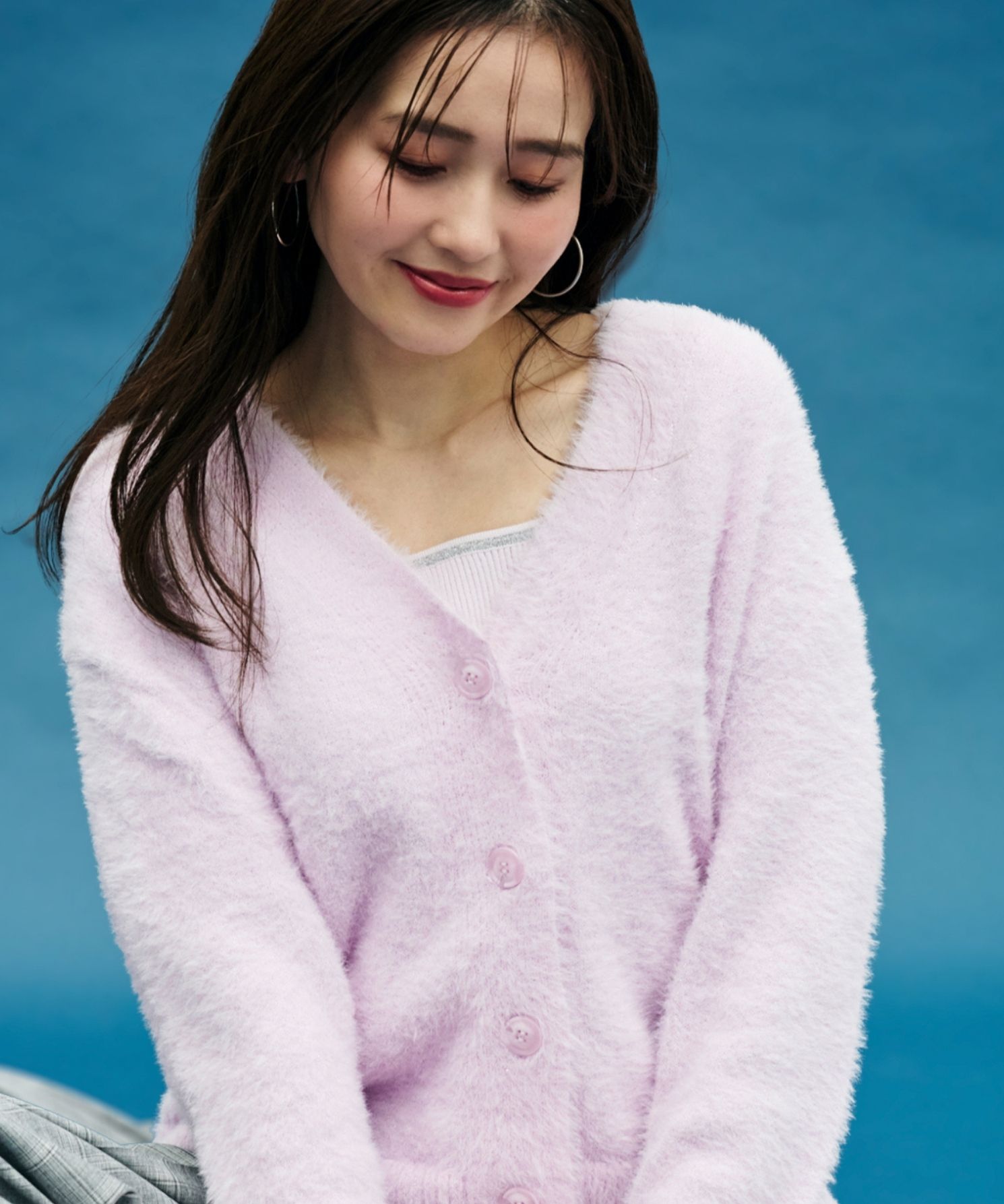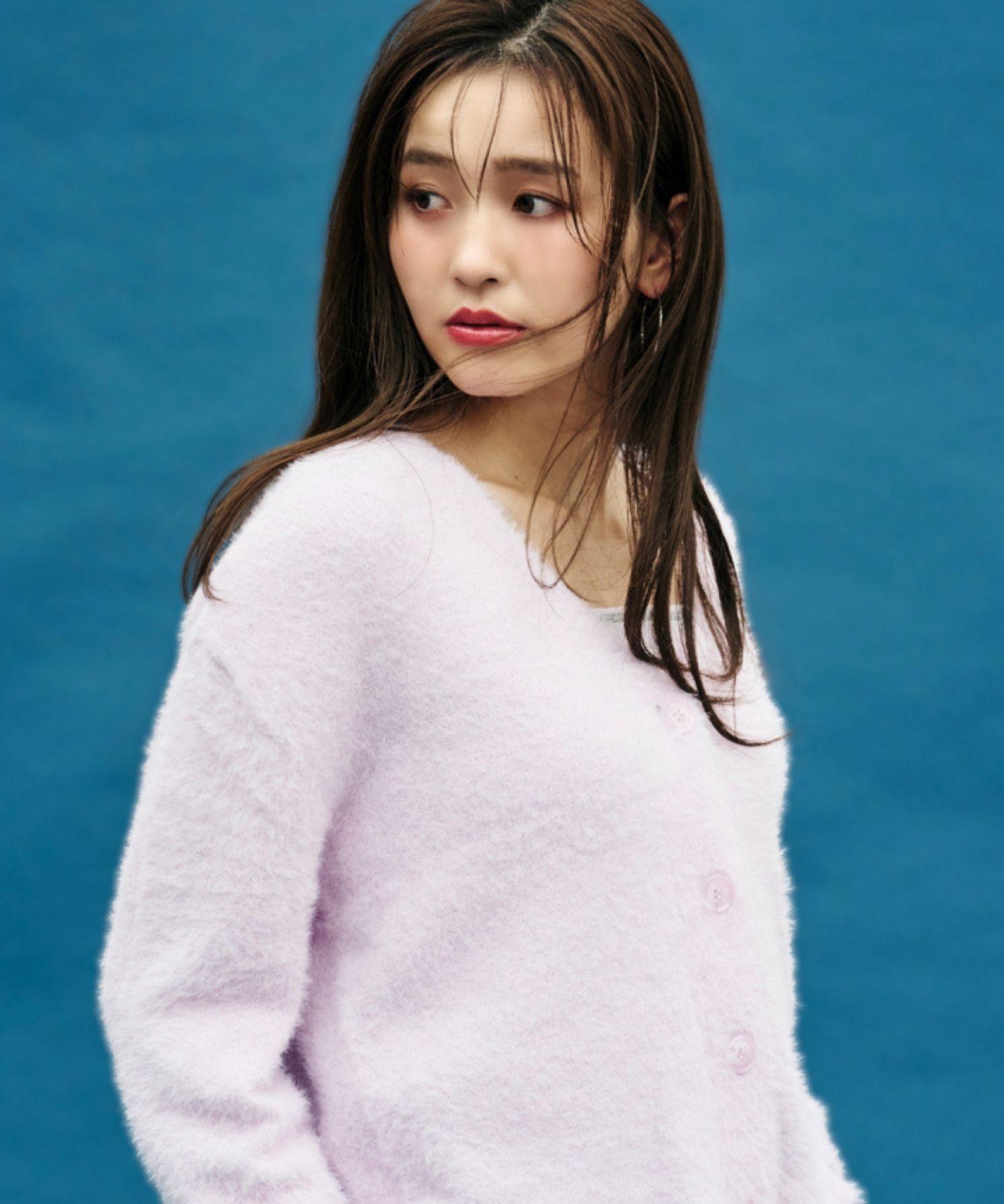【素材感】:カーディガンはふわふわ素材で着心地良い