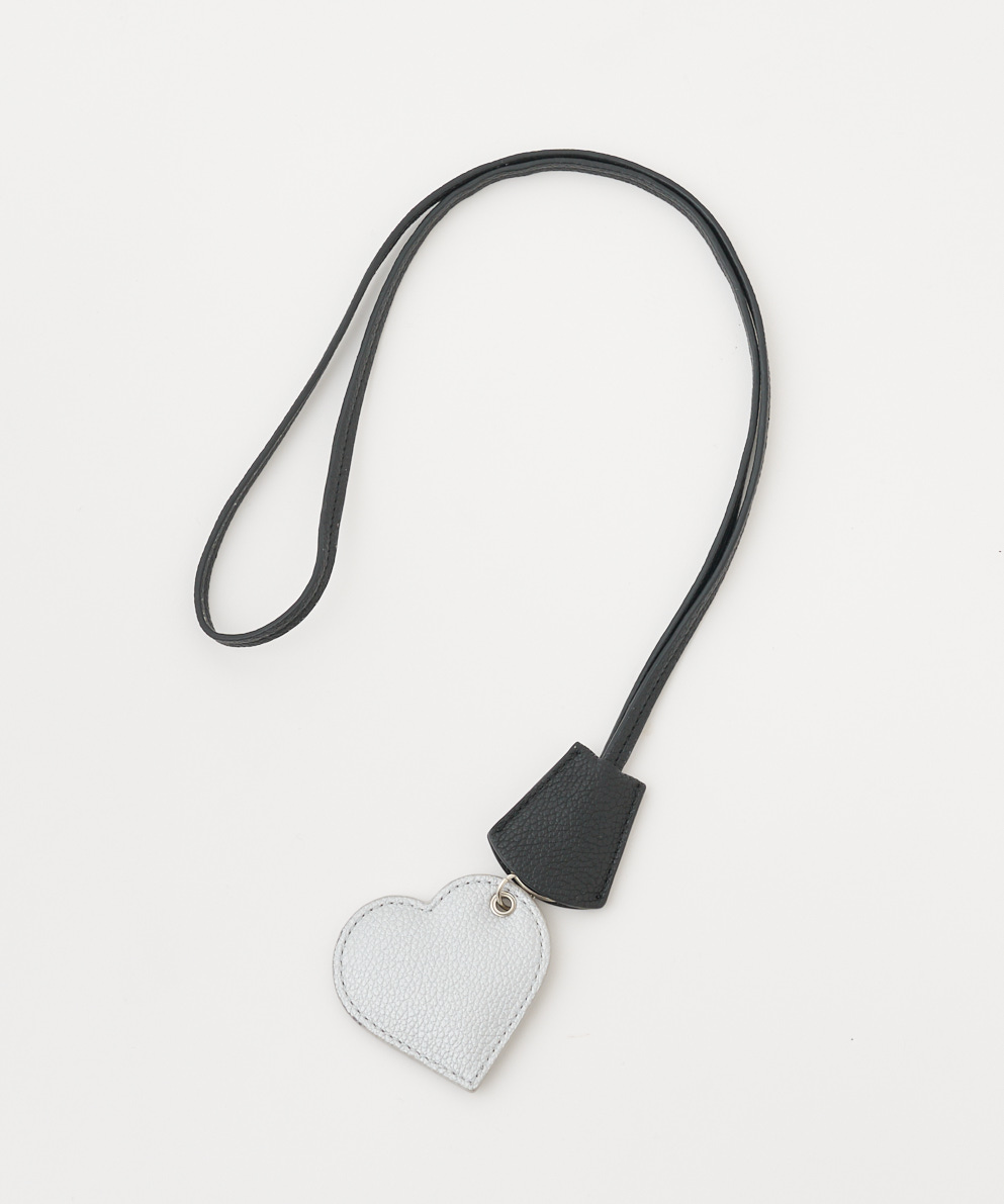 ・コードの先端には丸みを帯びた大きなハート型のチャームとキーリングが付属しています。鍵やIDカード、ミニポーチなど、様々なものを吊り下げてお使い頂けます。