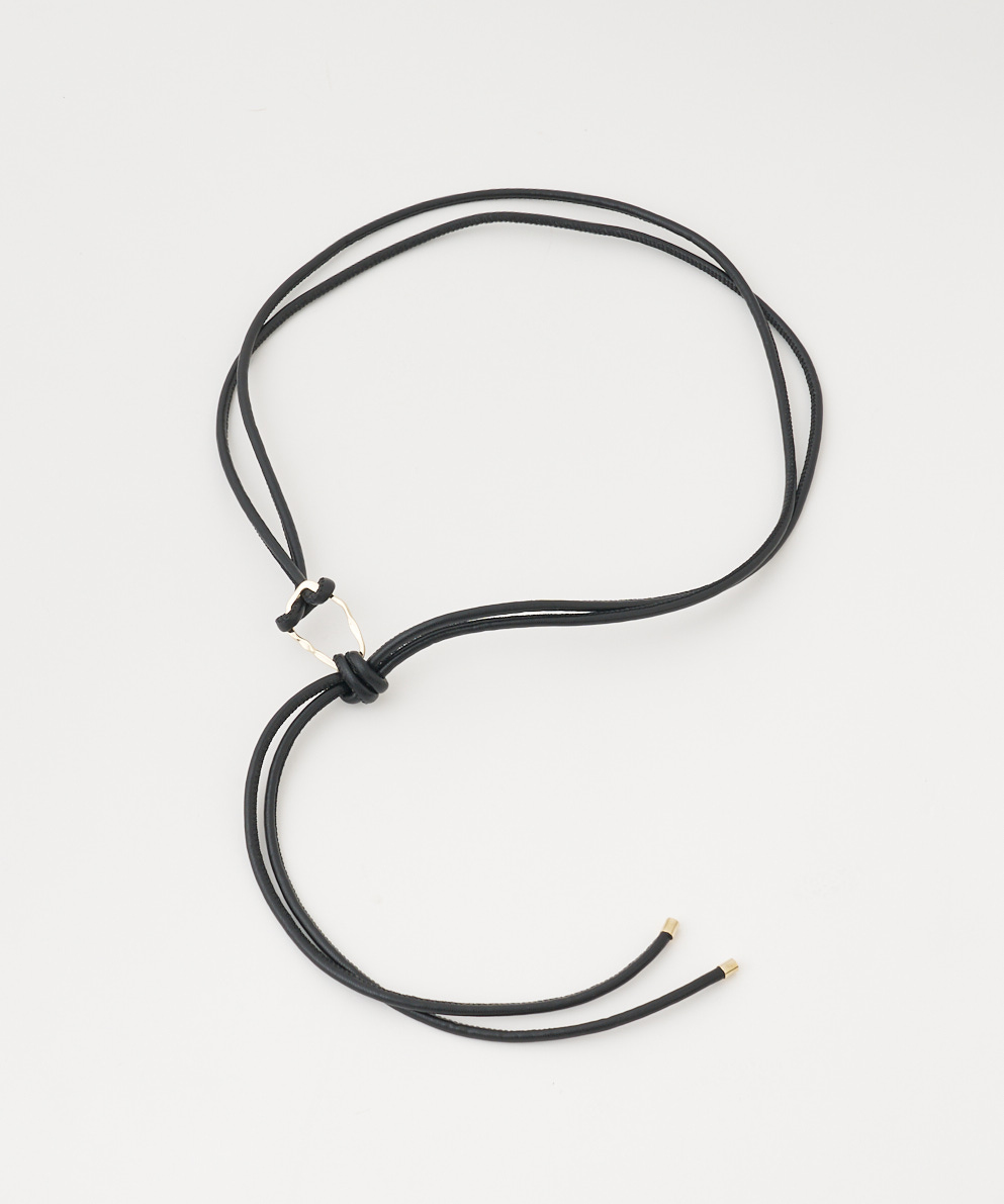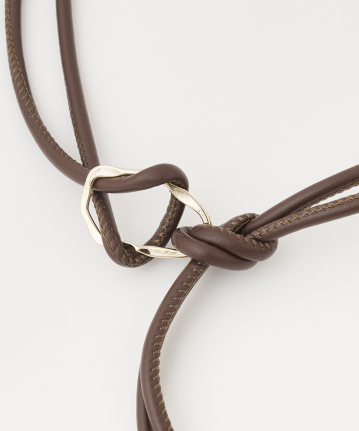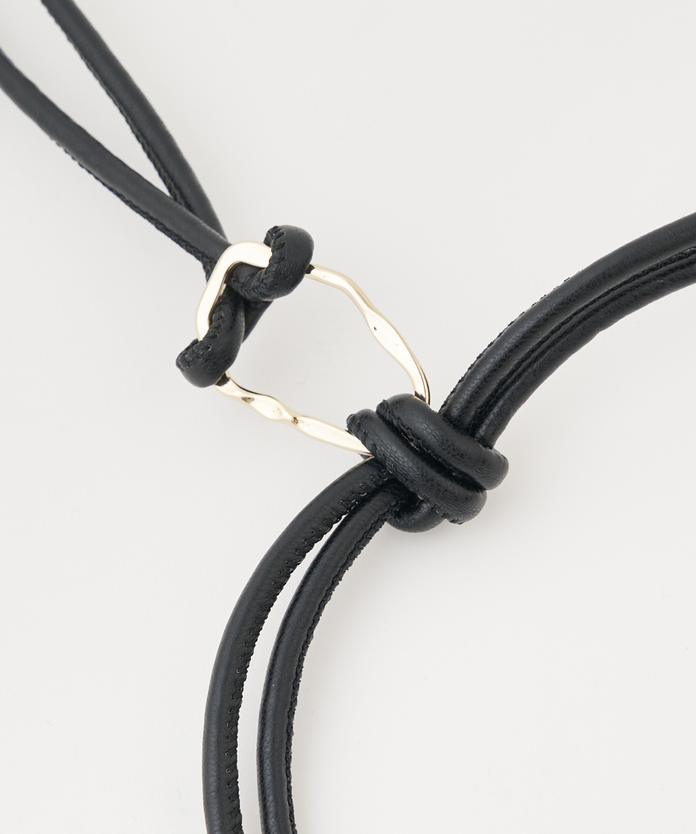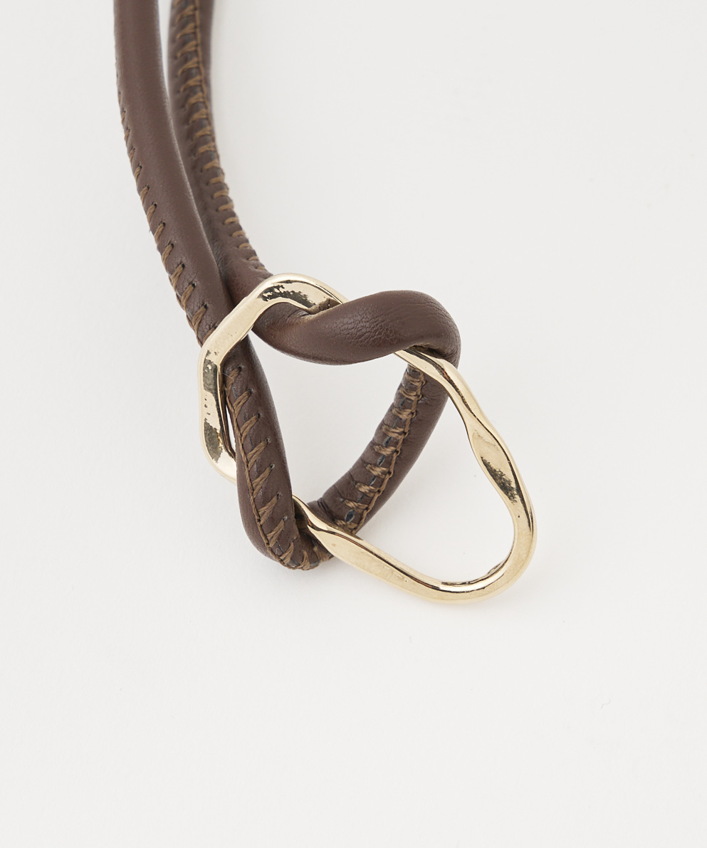・波打つような変形バックルとレザー調の丸紐を組み合わせた鮮度のあるベルトです。